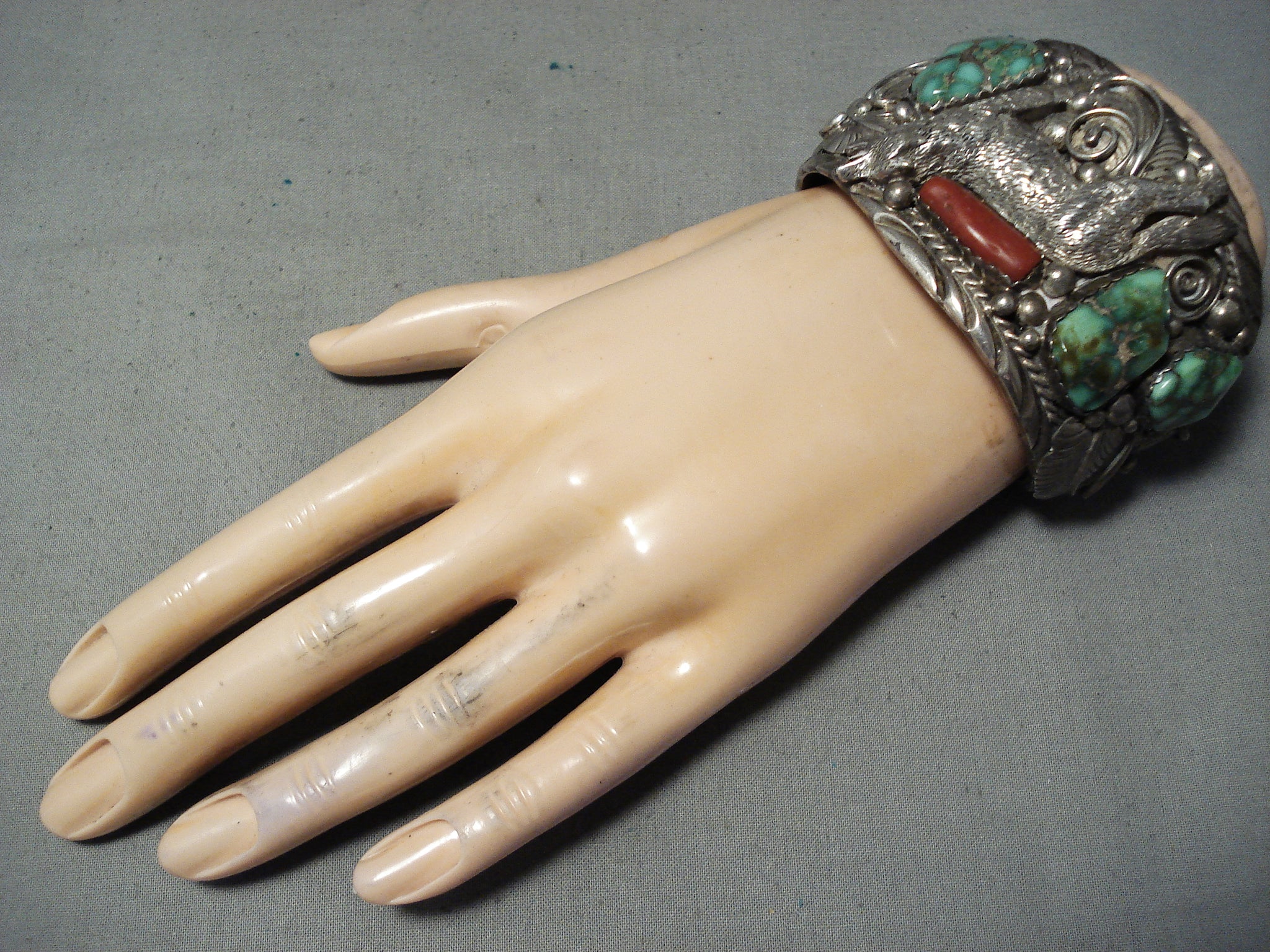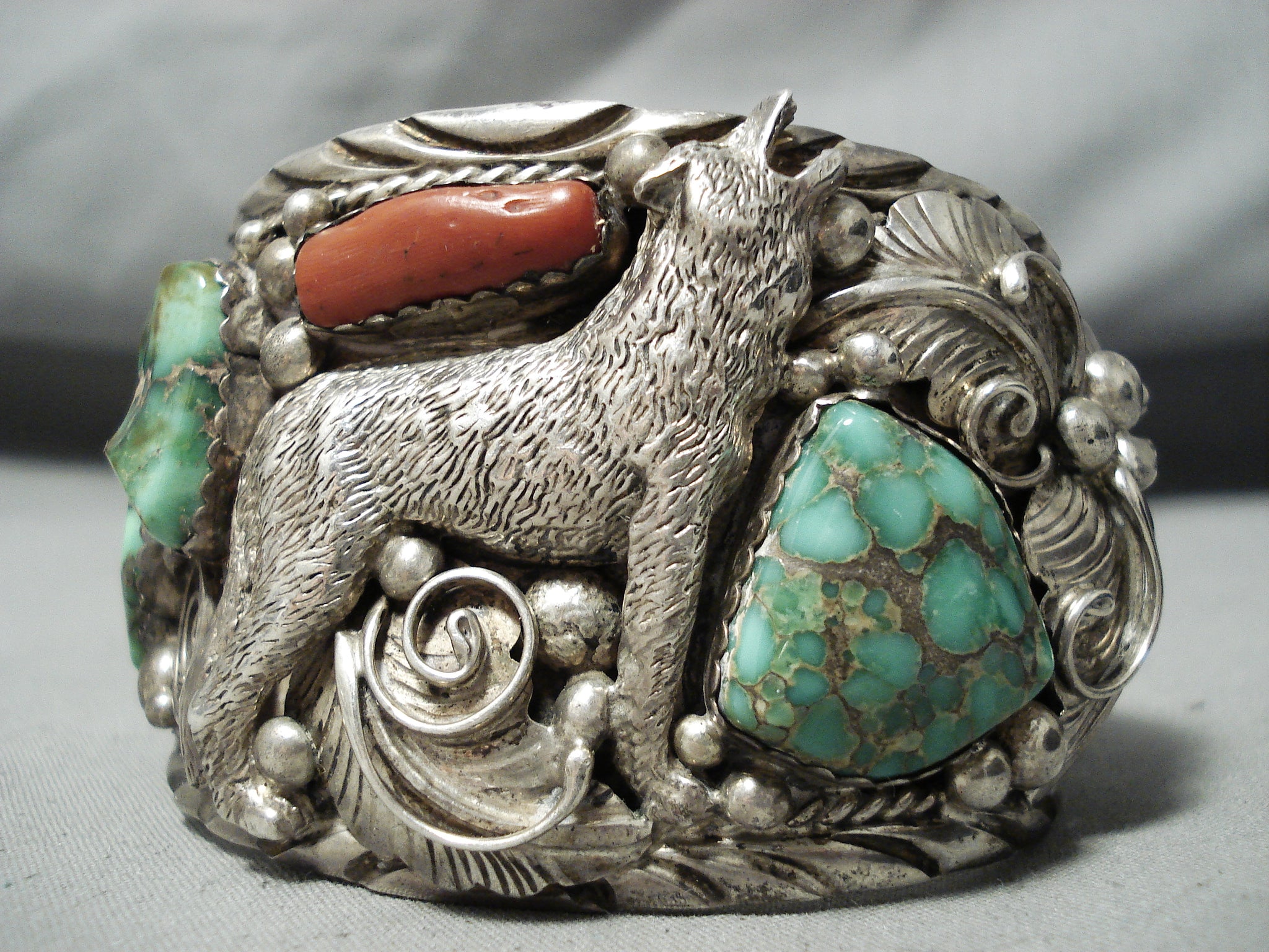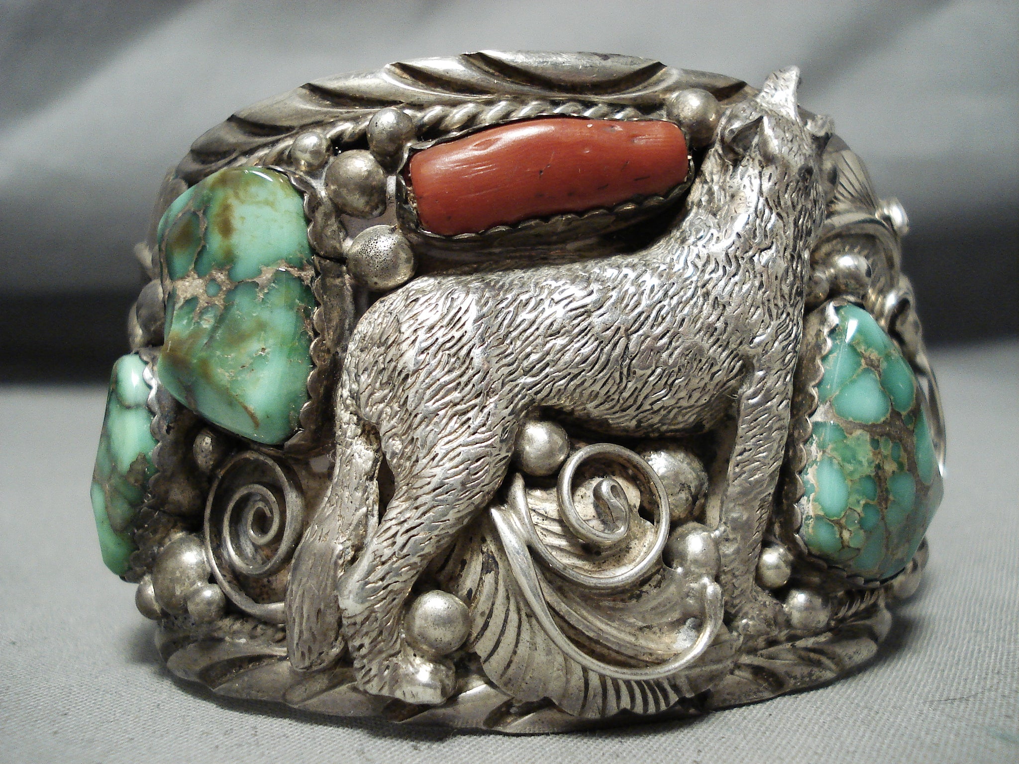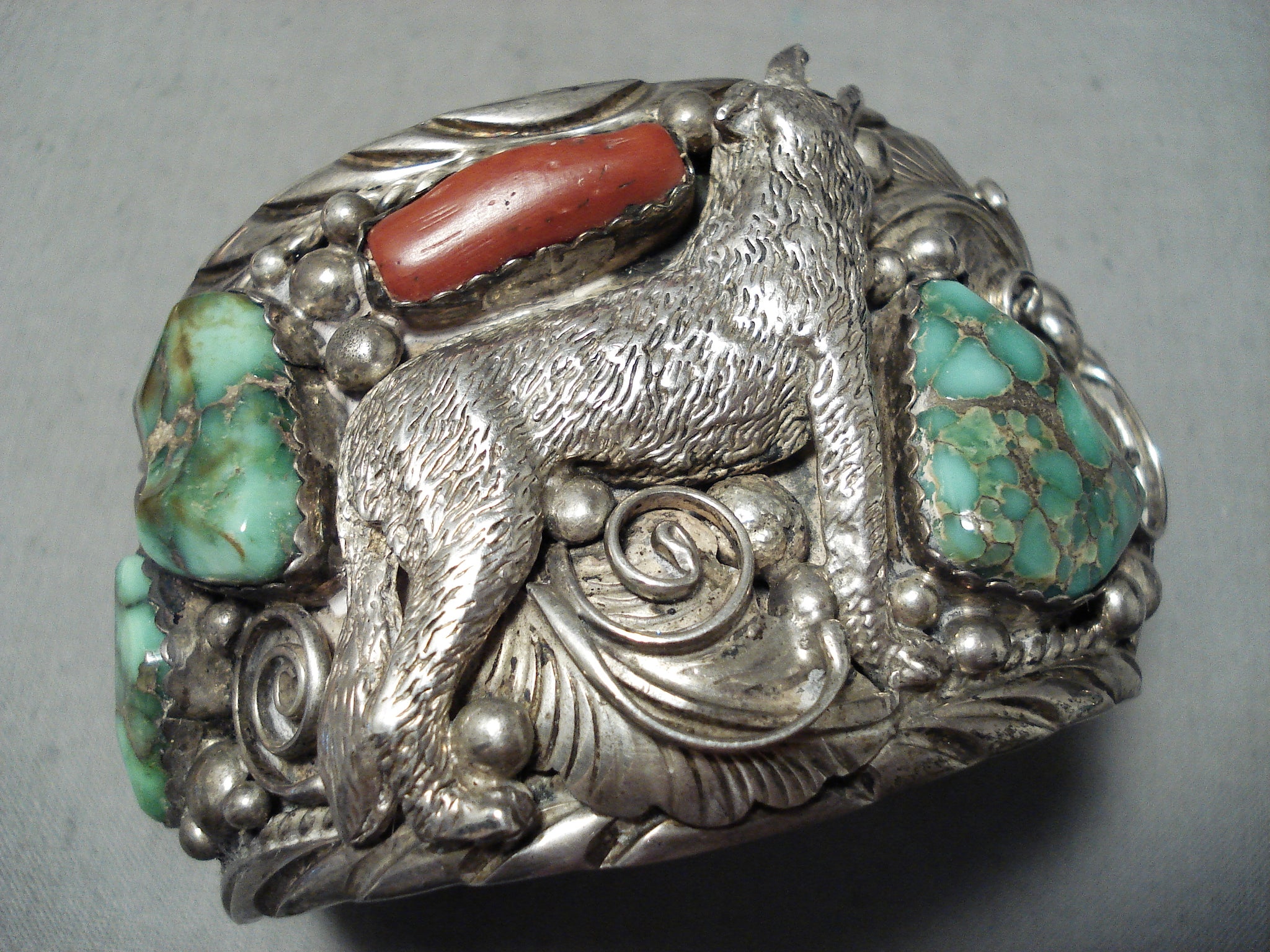 Best Vintage Native American Navajo Coyote Damale Turquoise Sterling Silver Bracelet