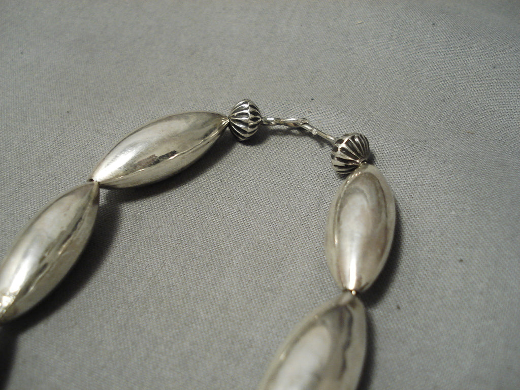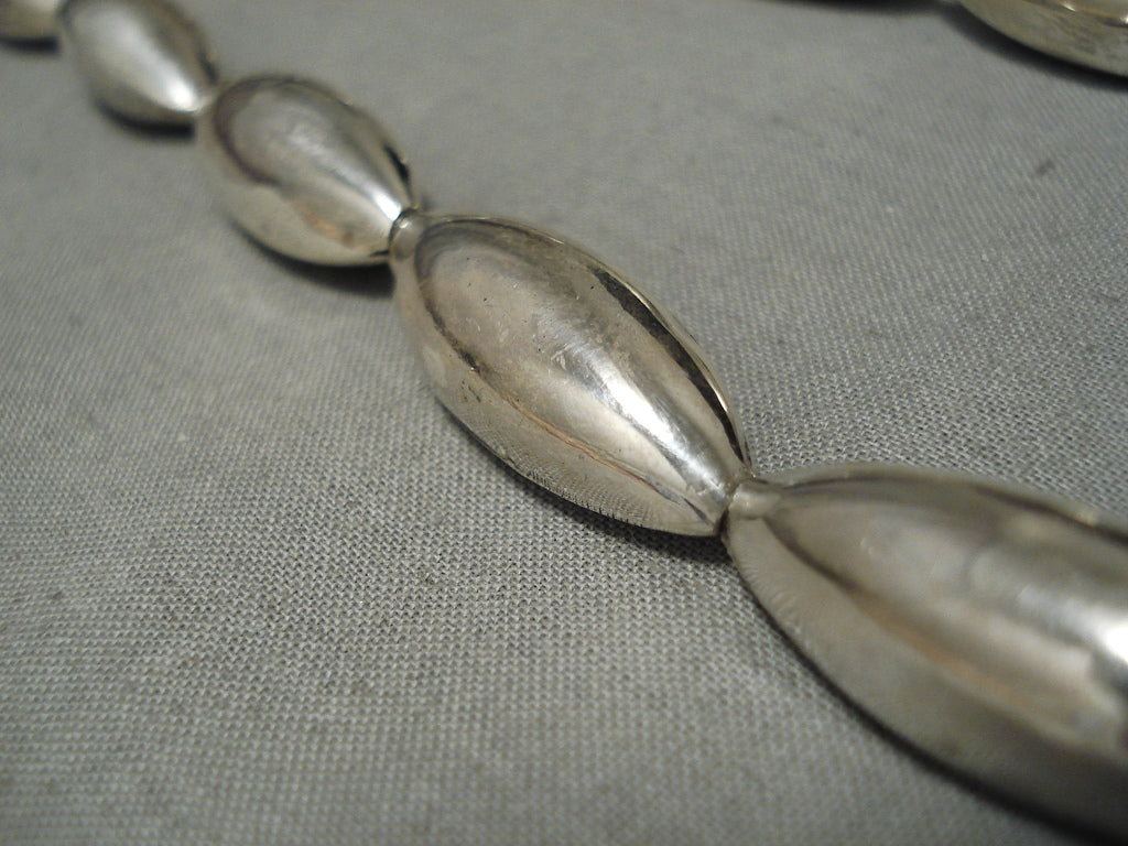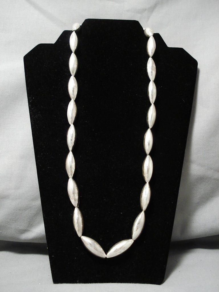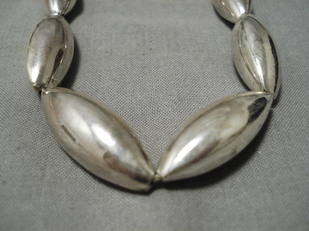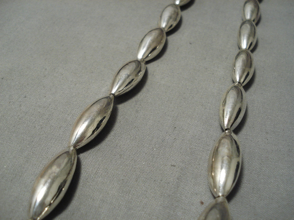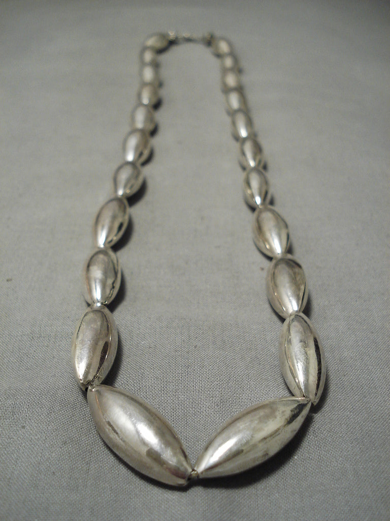 Best Vintage Native American Navajo Footbal Bead Sterling Silver Hand Wrought Necklace Old