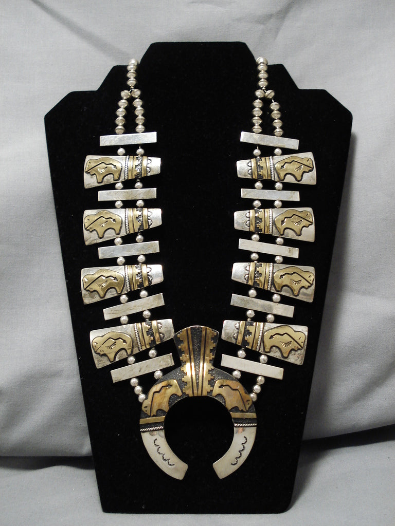 Best Vintage Native American Navajo Gold Sterling Silver Thomas Singer Squash Blossom Necklace