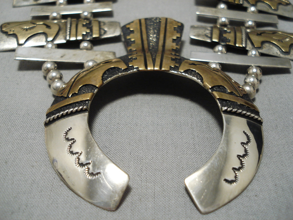 Best Vintage Native American Navajo Gold Sterling Silver Thomas Singer Squash Blossom Necklace