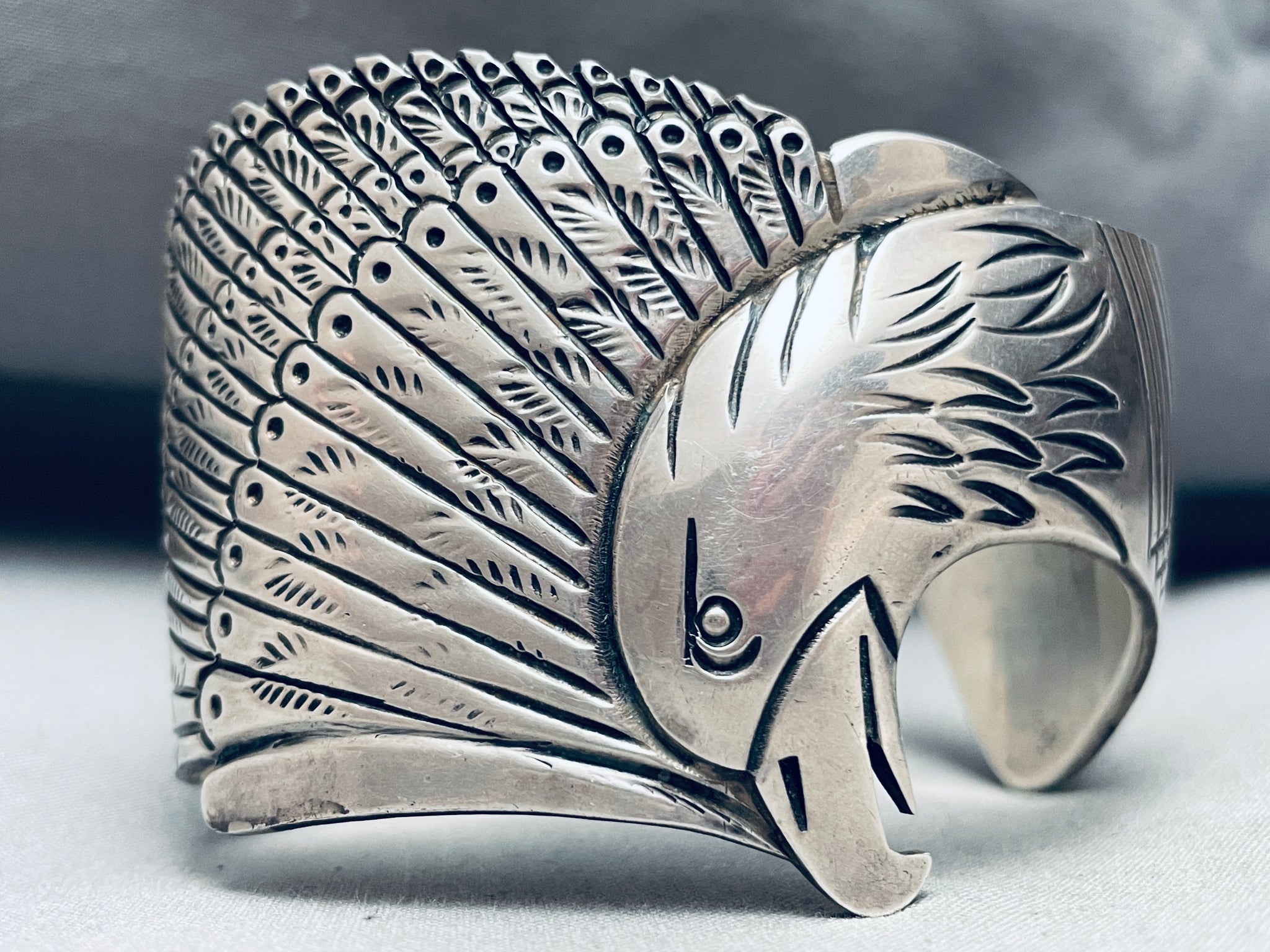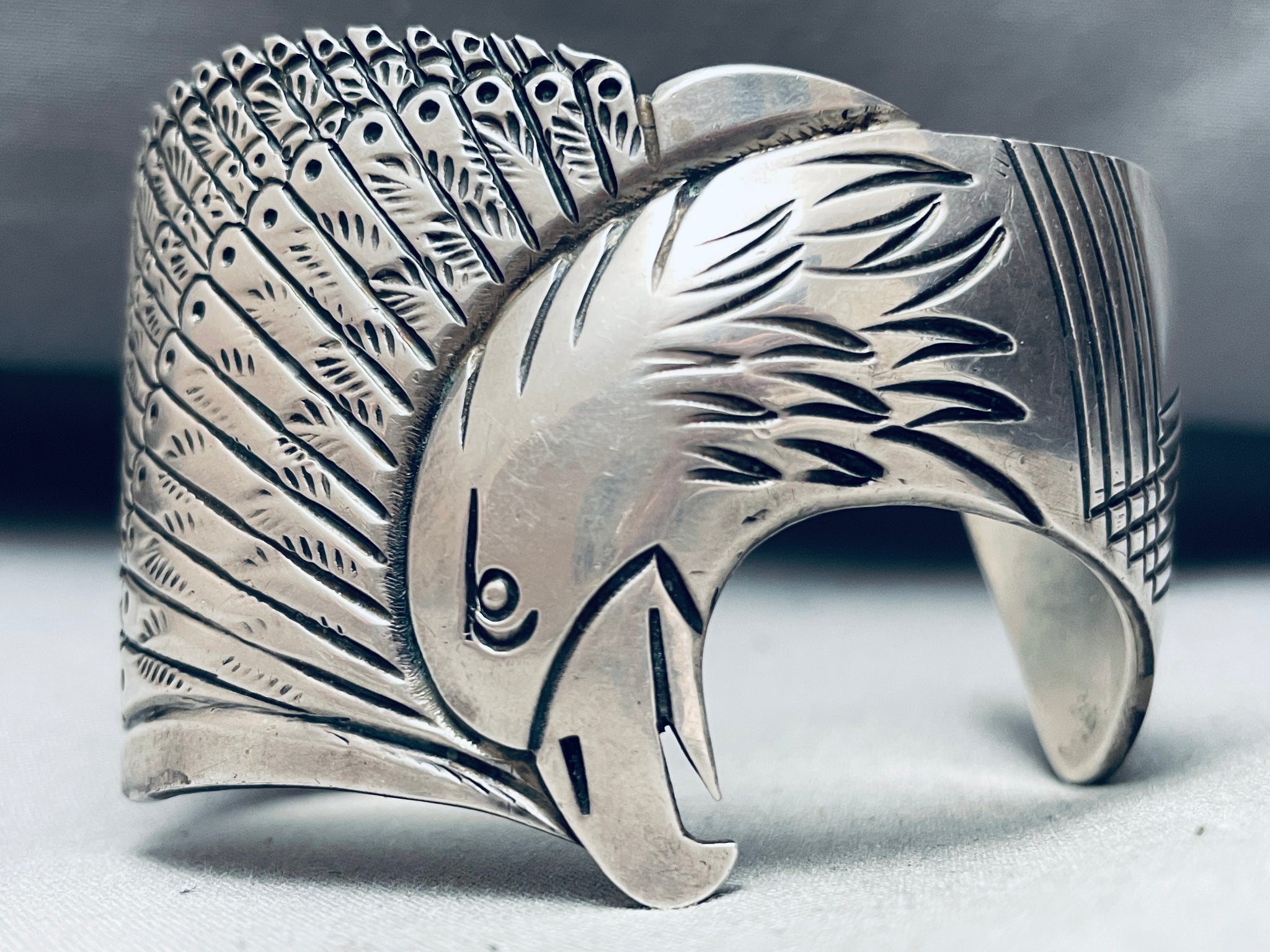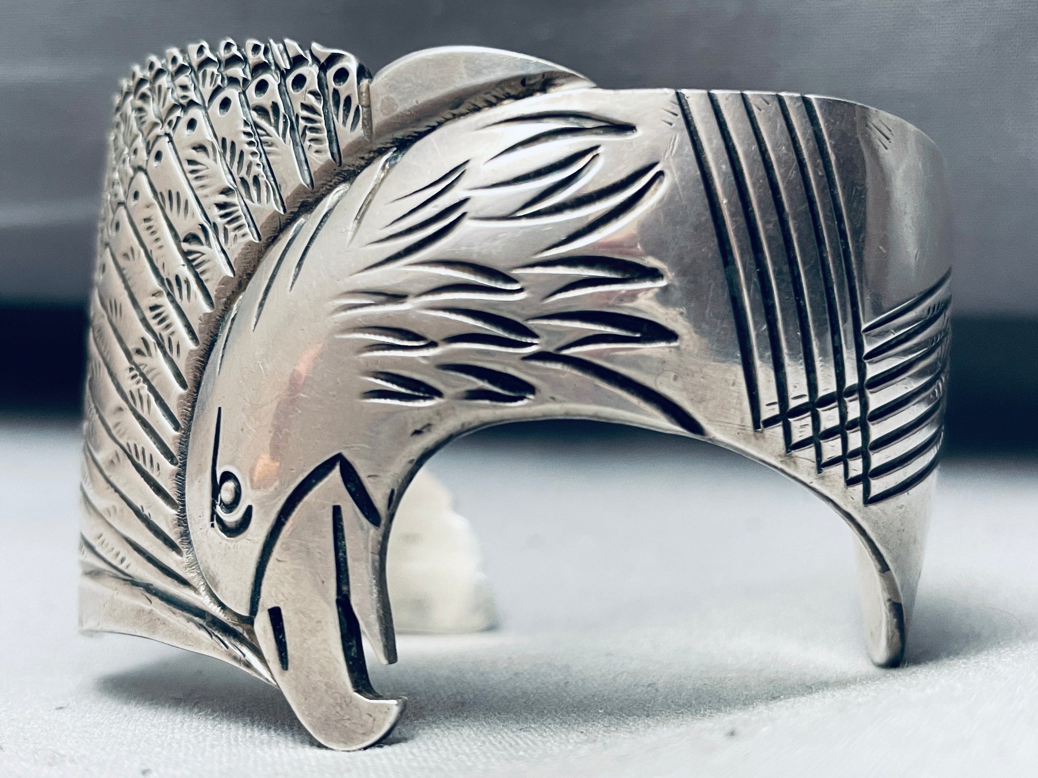 Best Vintage Native American Navajo Hand Carved Eagle Sterling Silver Bracelet