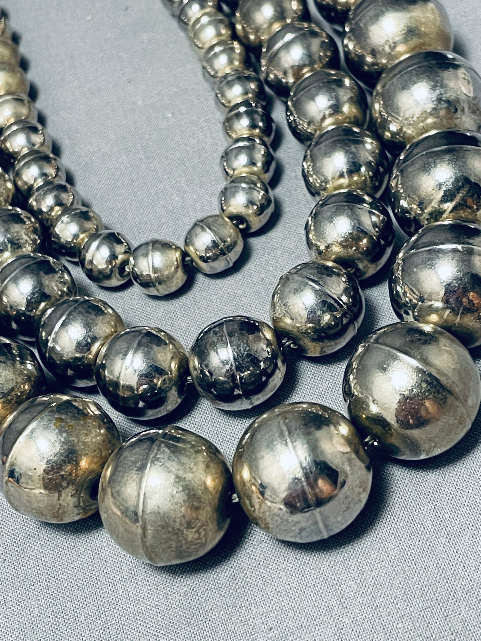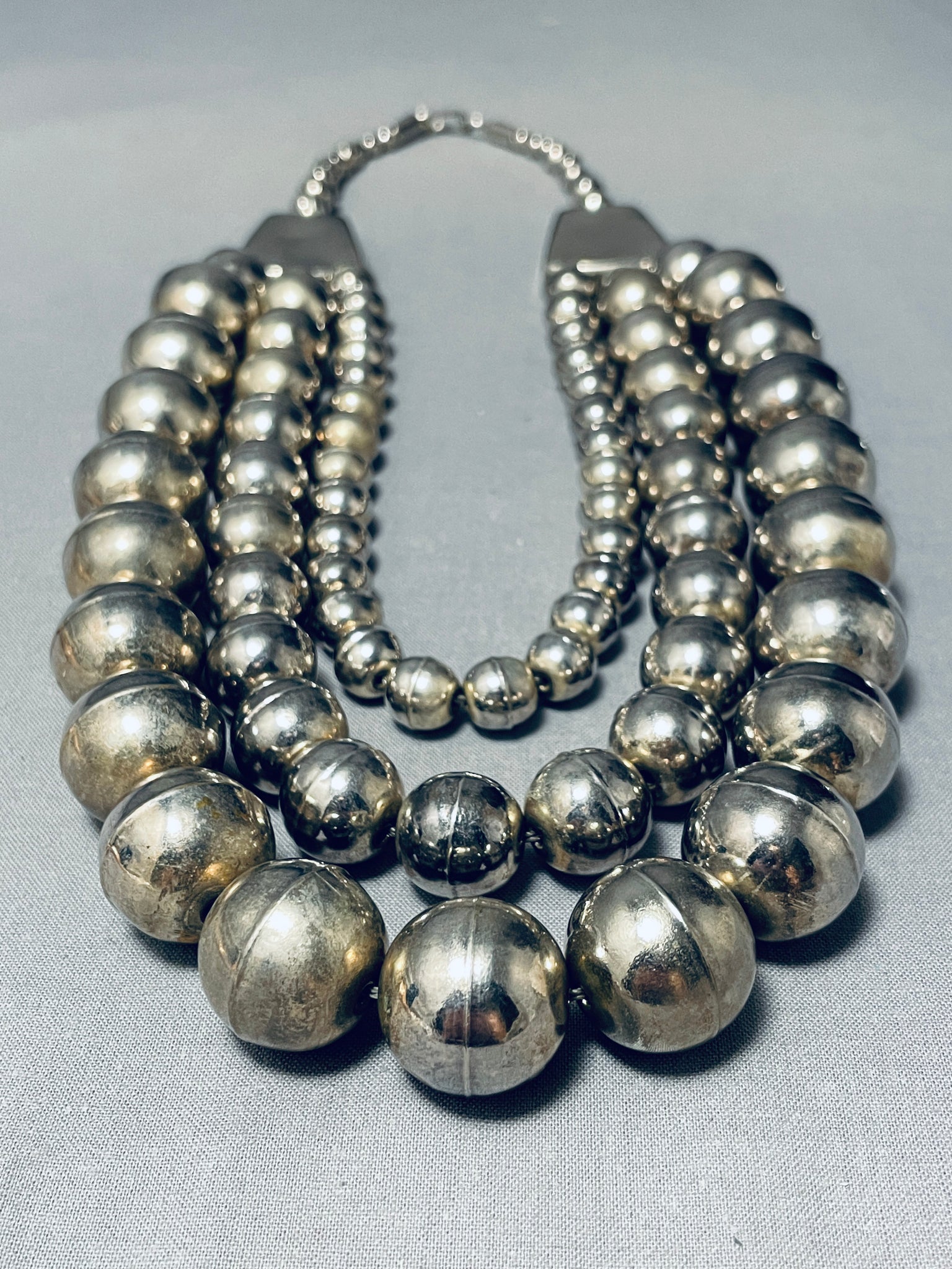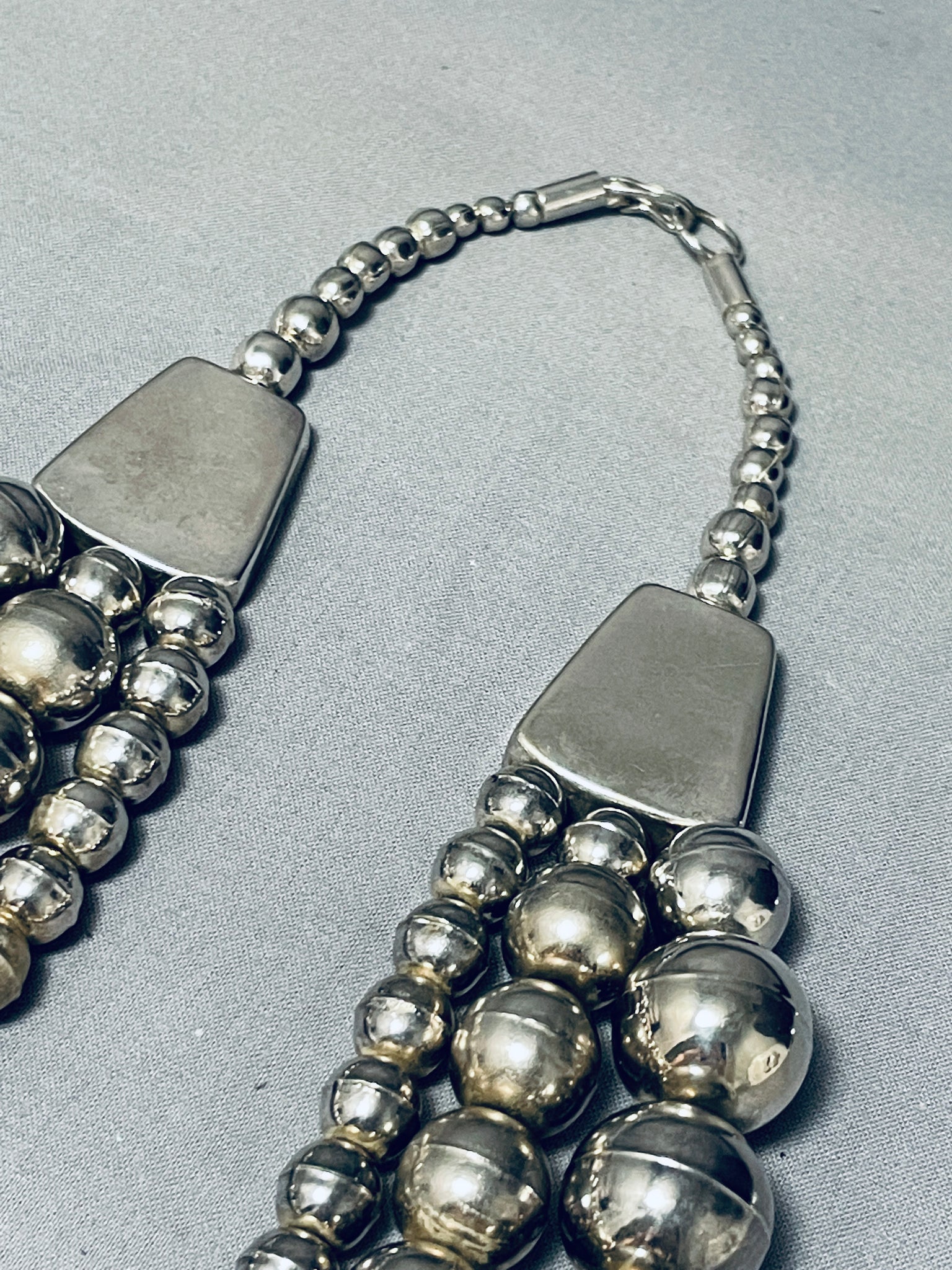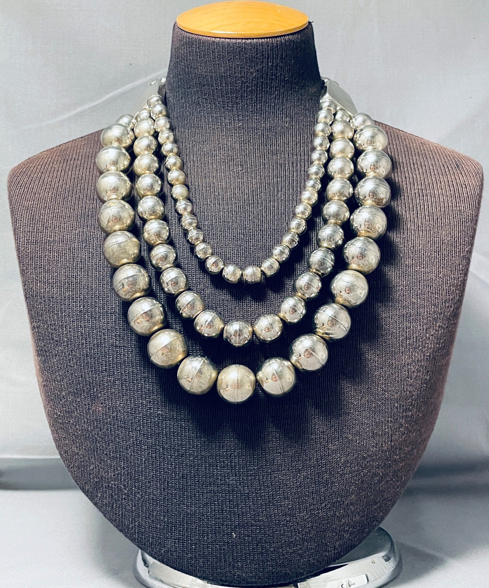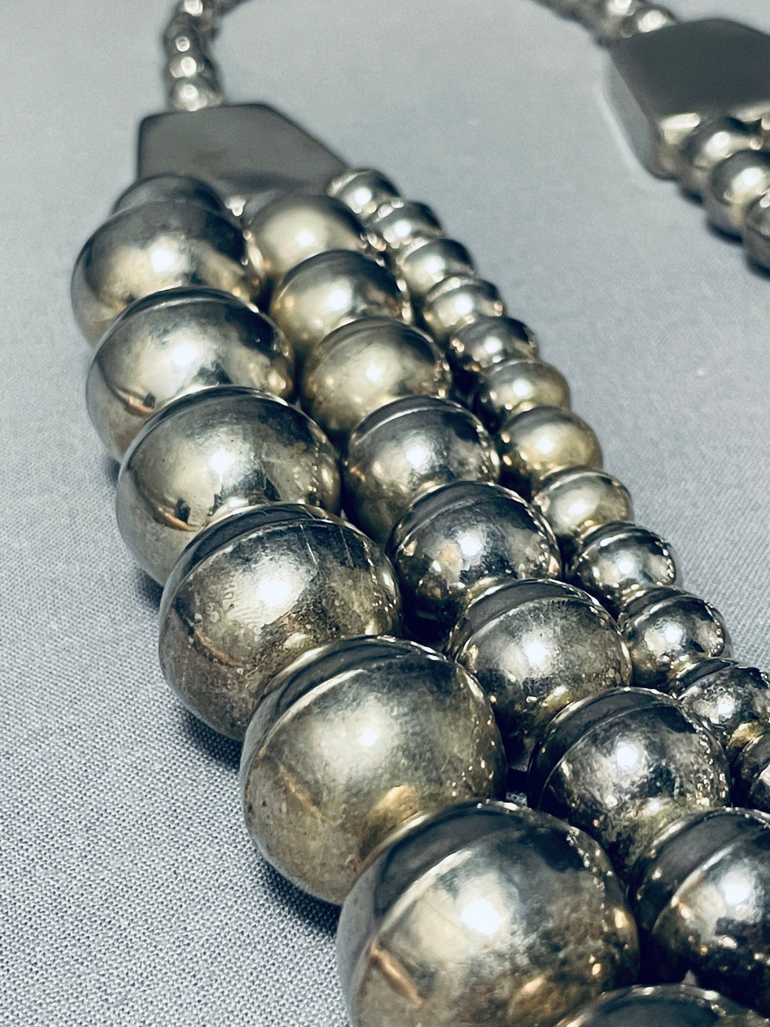 Best Vintage Native American Navajo Hand Tooled Sterling Silver Bead Necklace