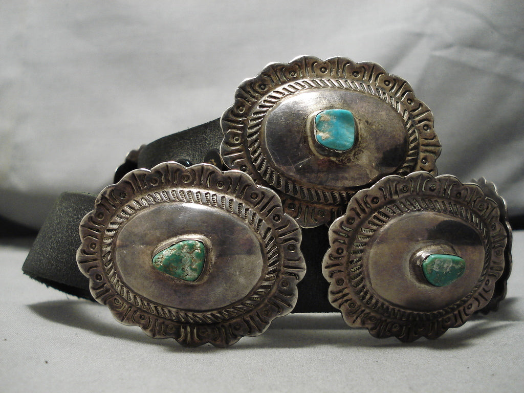 Best Vintage Native American Navajo Hand Tooled Sterling Silver Turquoise Hat Concho Belt