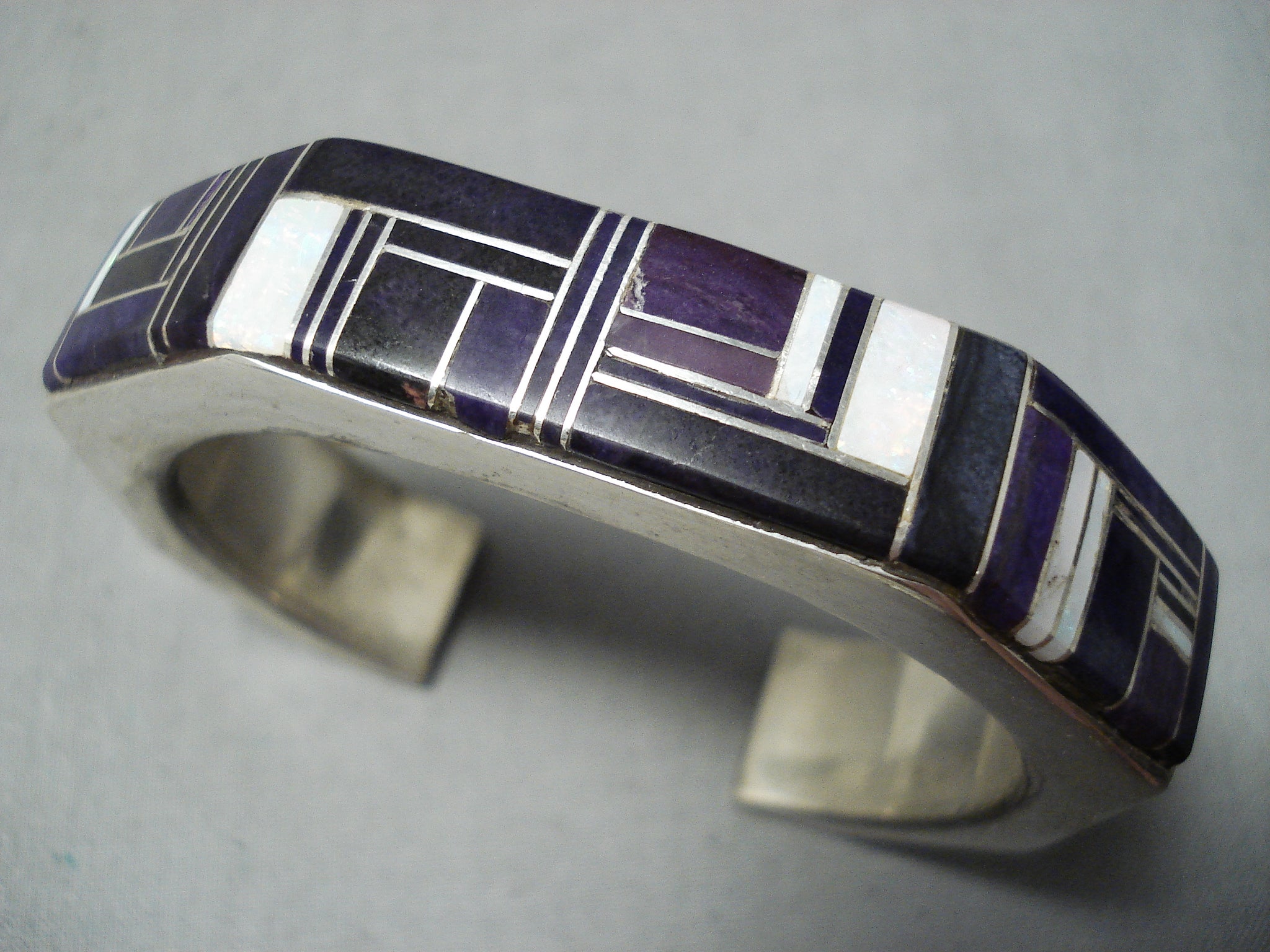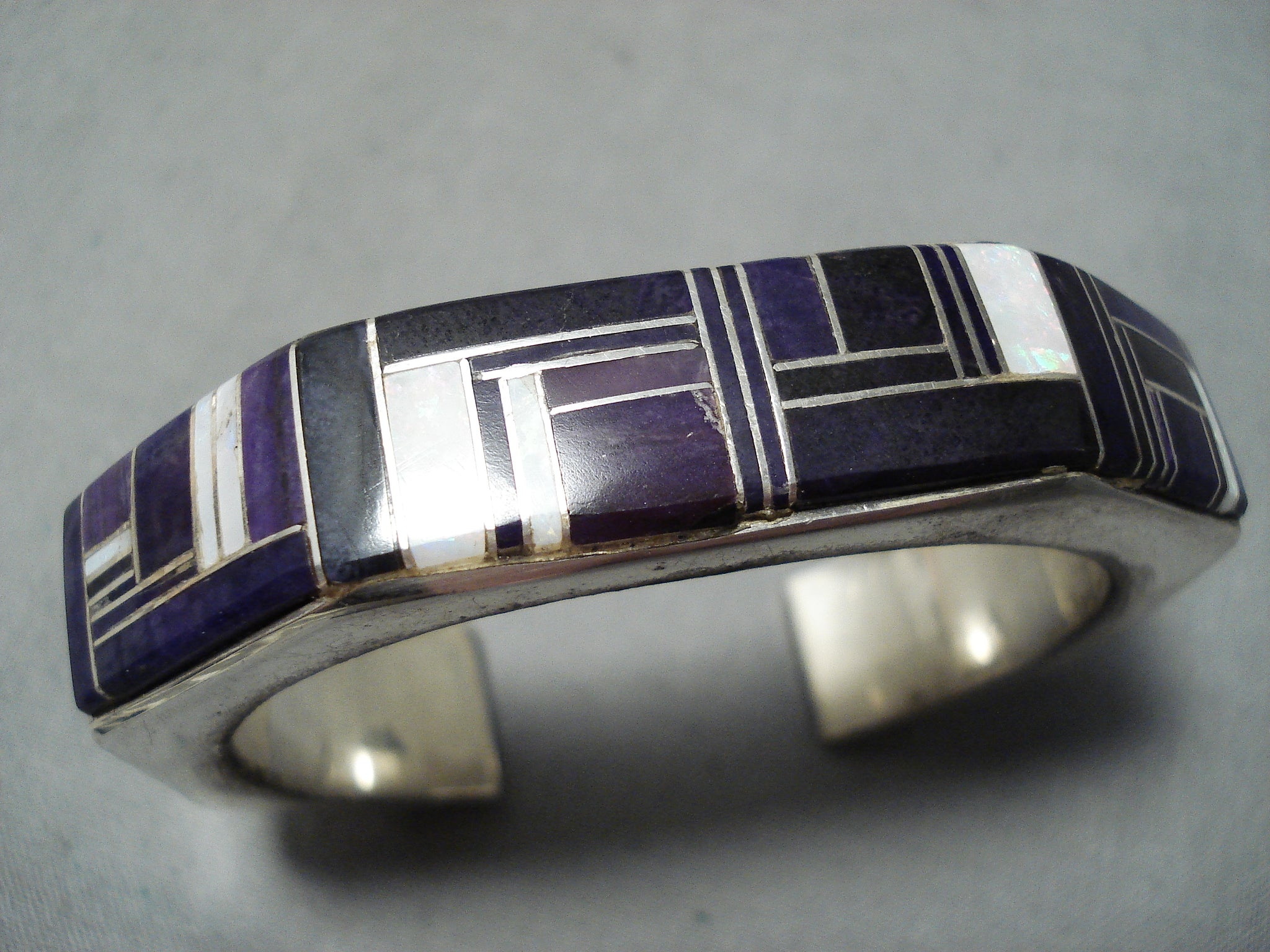 Best Vintage Native American Navajo Julian Arviso Sugulite Sterling Silver Opal Bracelet
