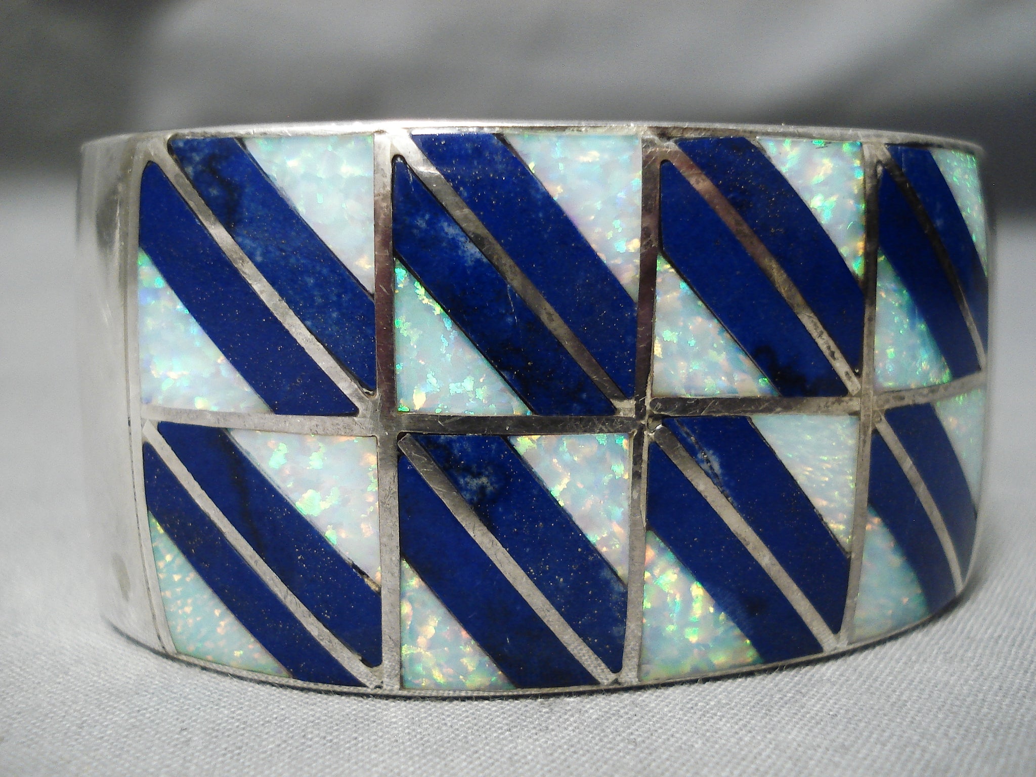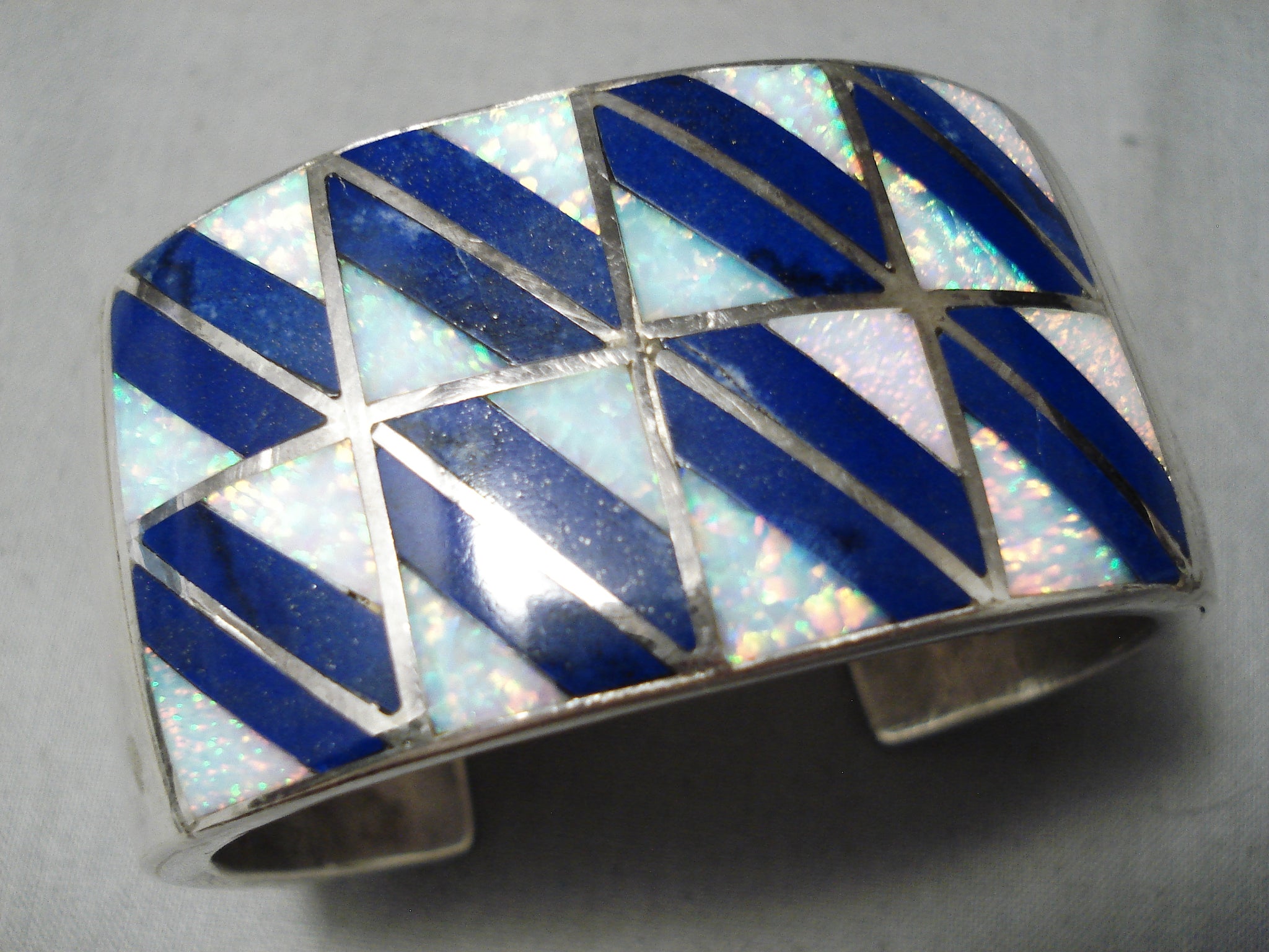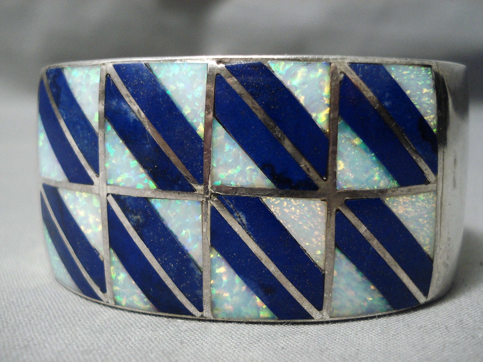 Best Vintage Native American Navajo Mary Morgan Lapis Opal Sterling Silver Bracelet Old