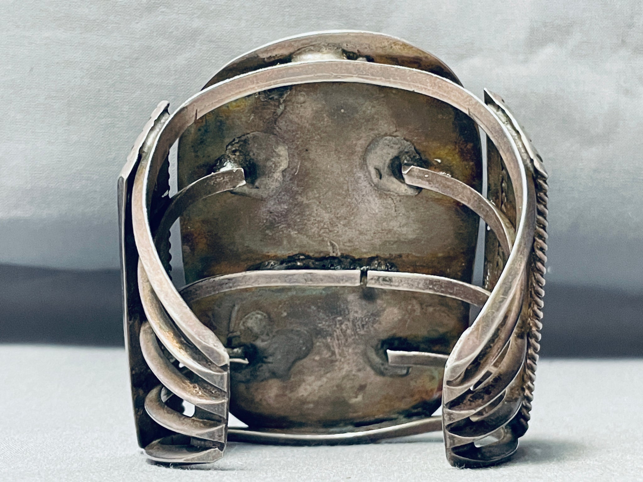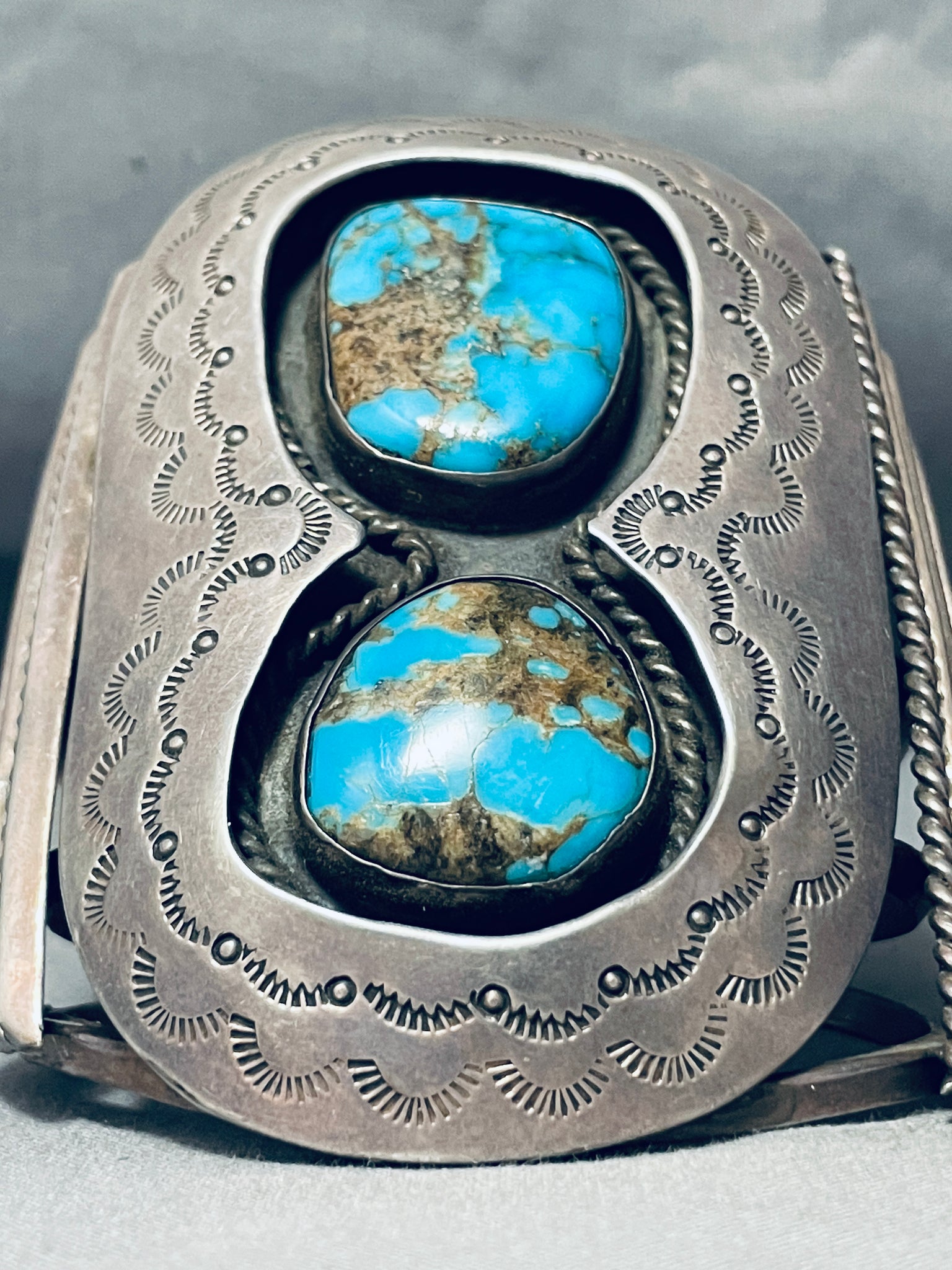 Best Vintage Native American Navajo Morenci Turquoise Sterling Silver 2 Stone Bracelet