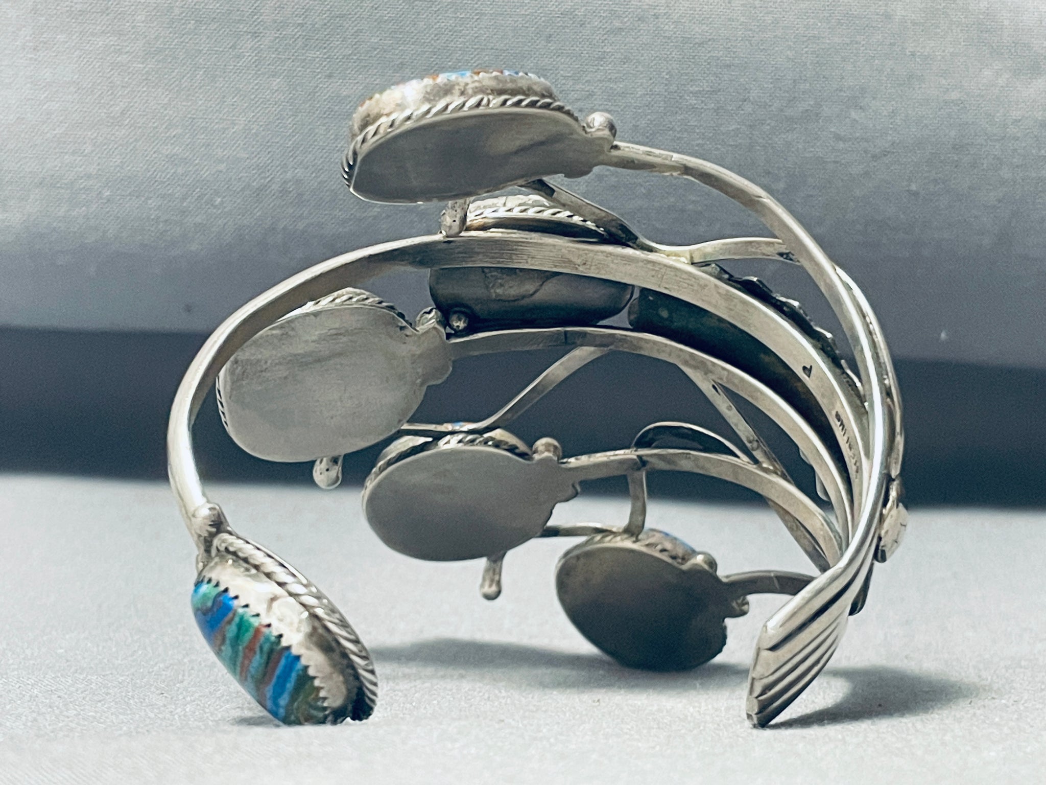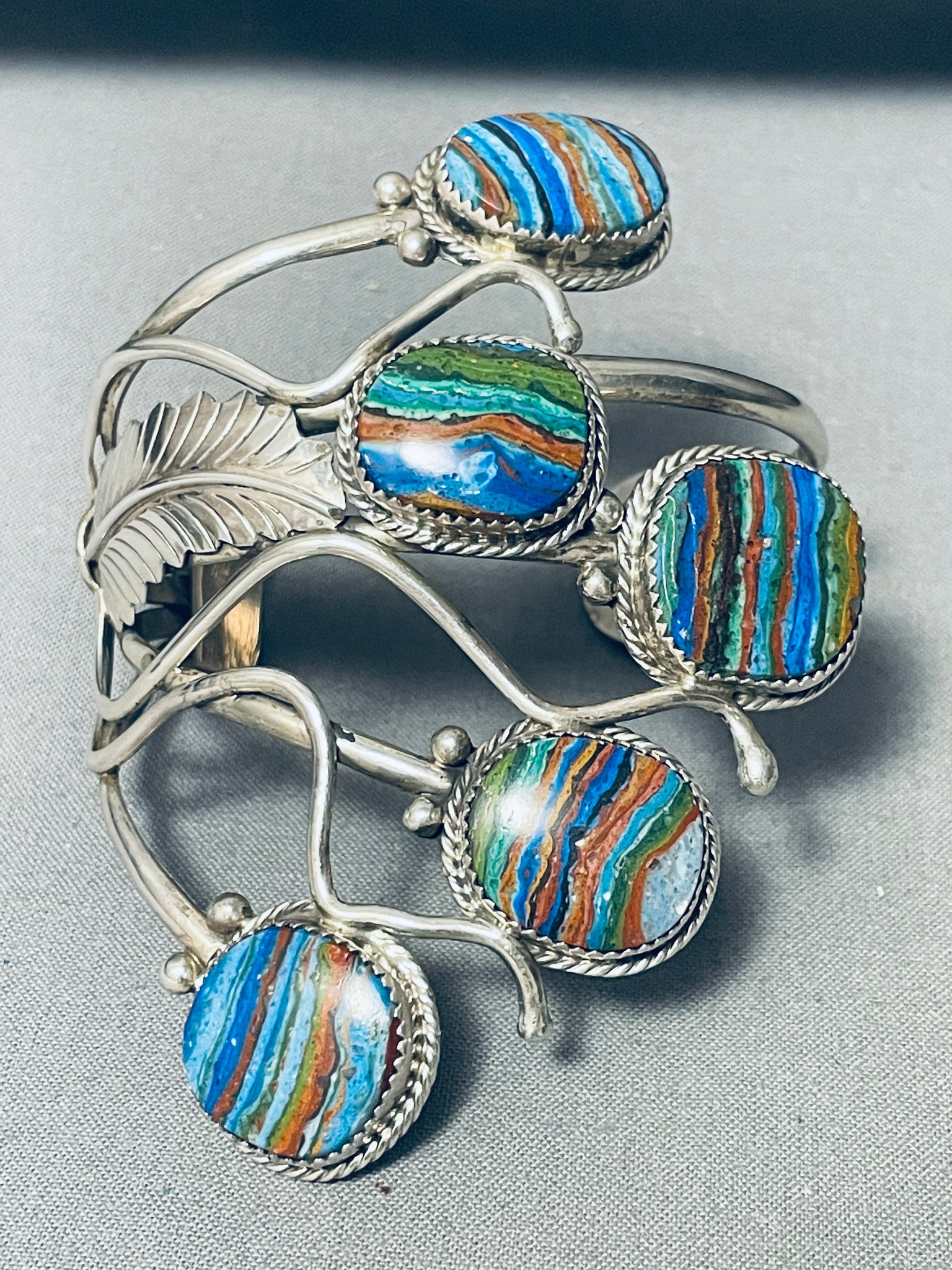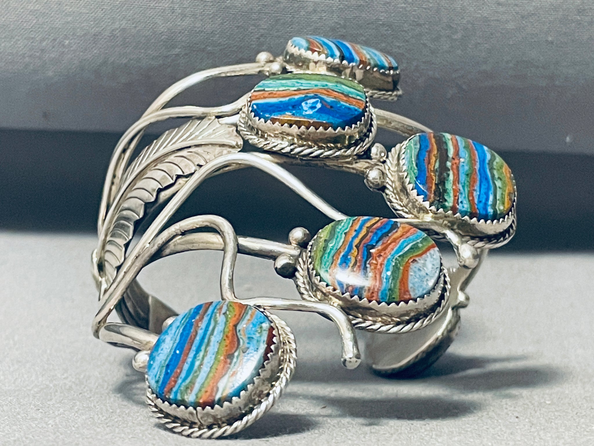 Best Vintage Native American Navajo Rainbow Calsilica Sterling Silver Bracelet