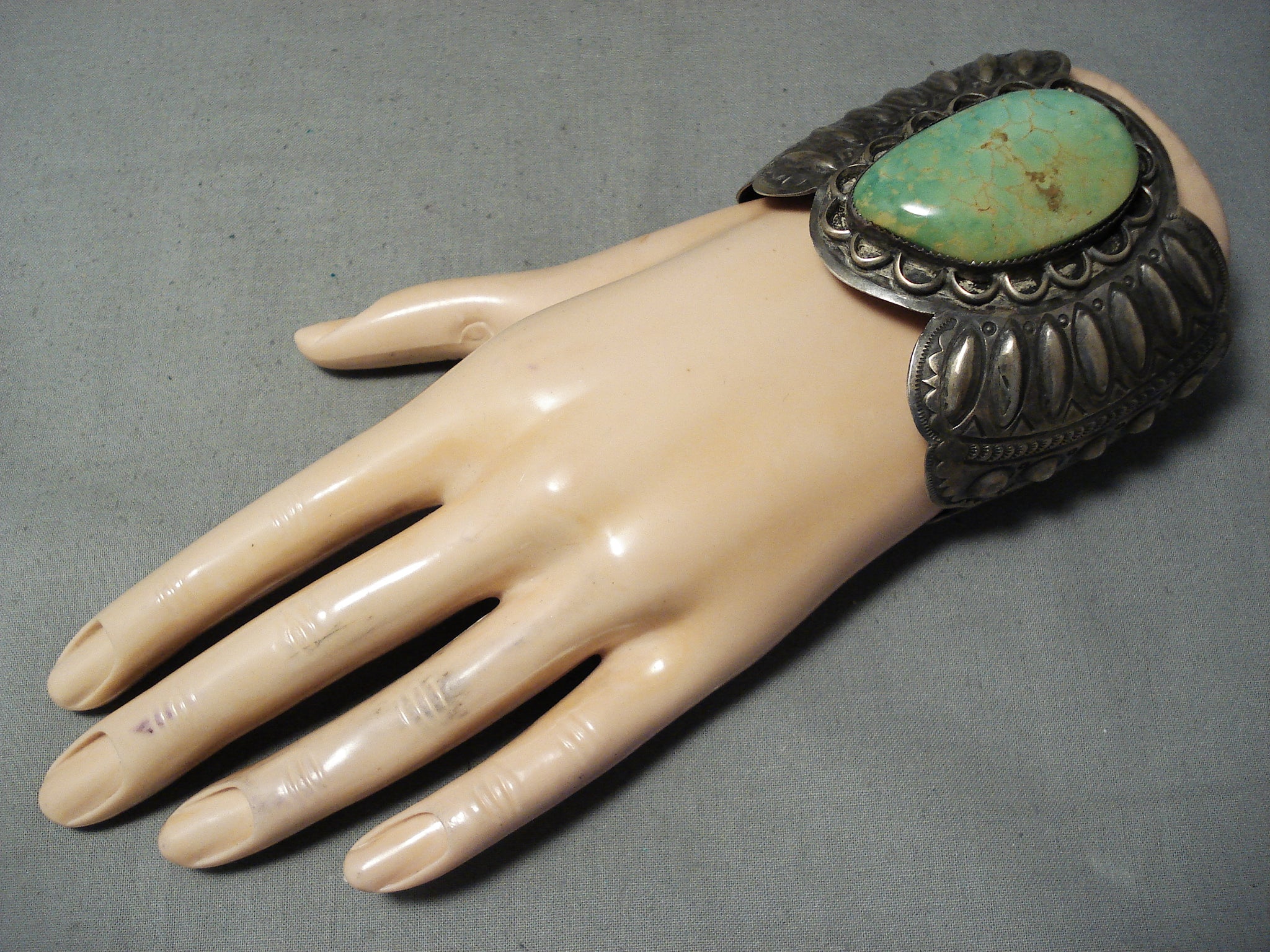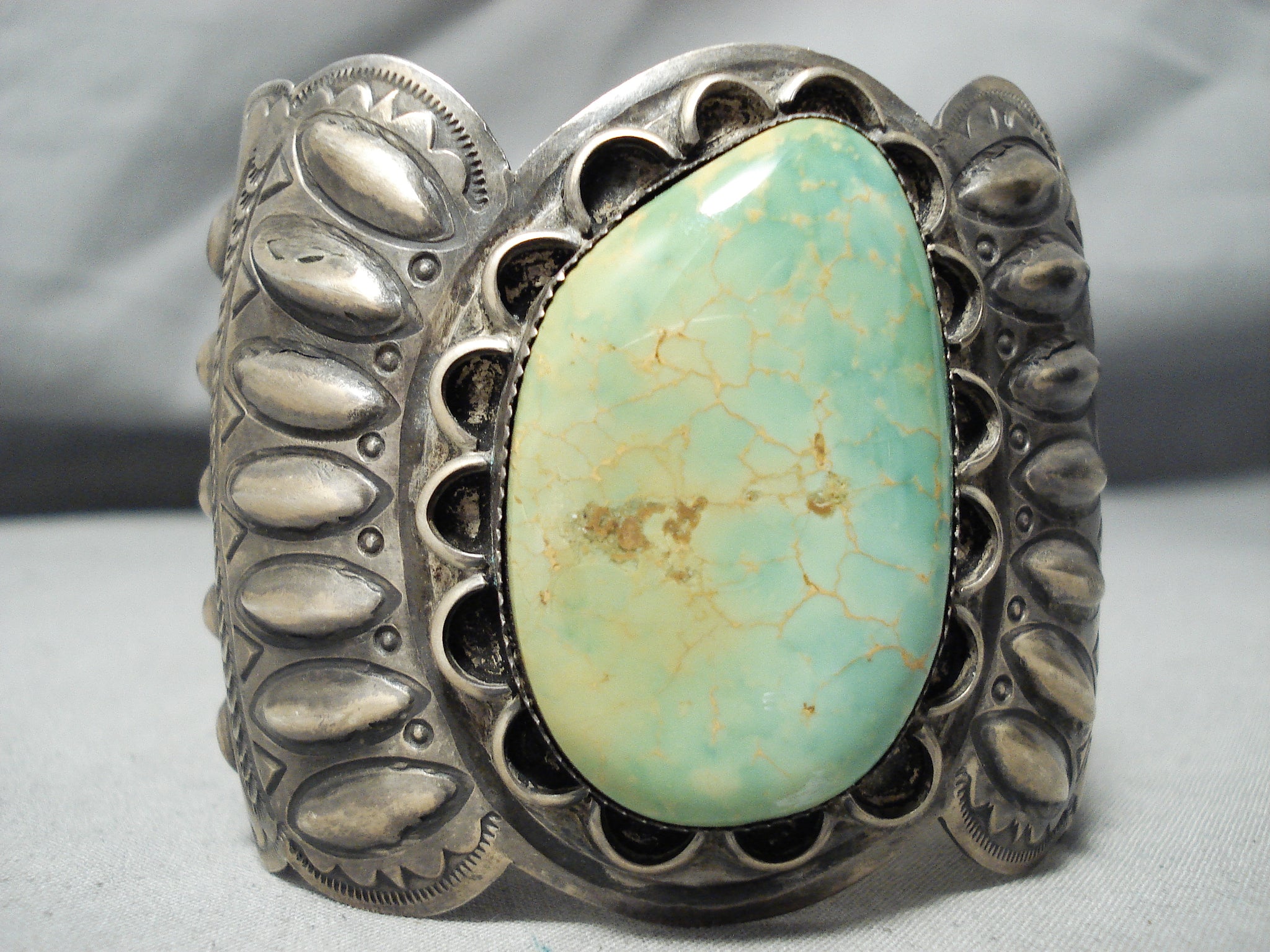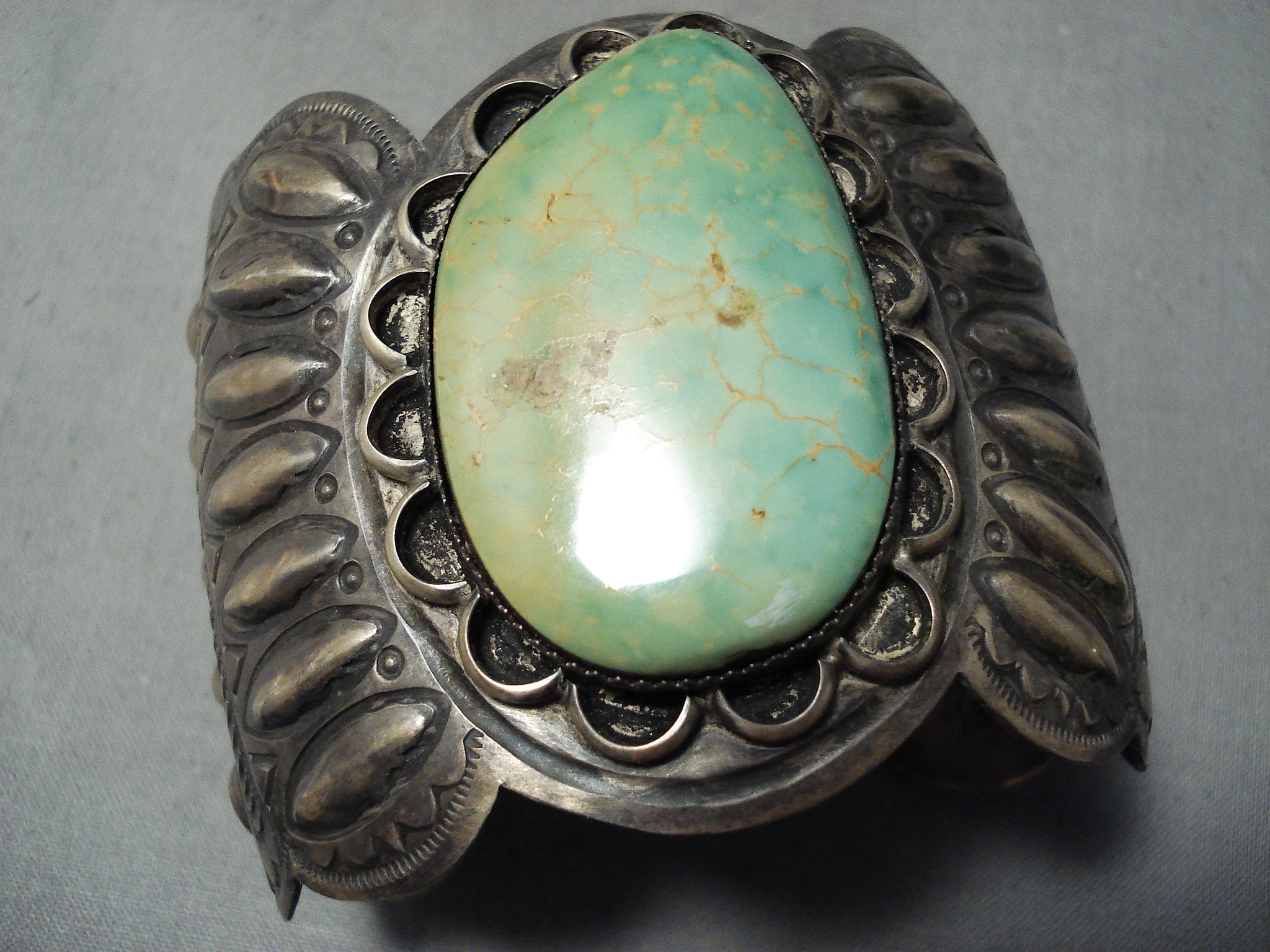 Best Vintage Native American Navajo Repoussed Royston Turquoise Sterling Silver Bracelet