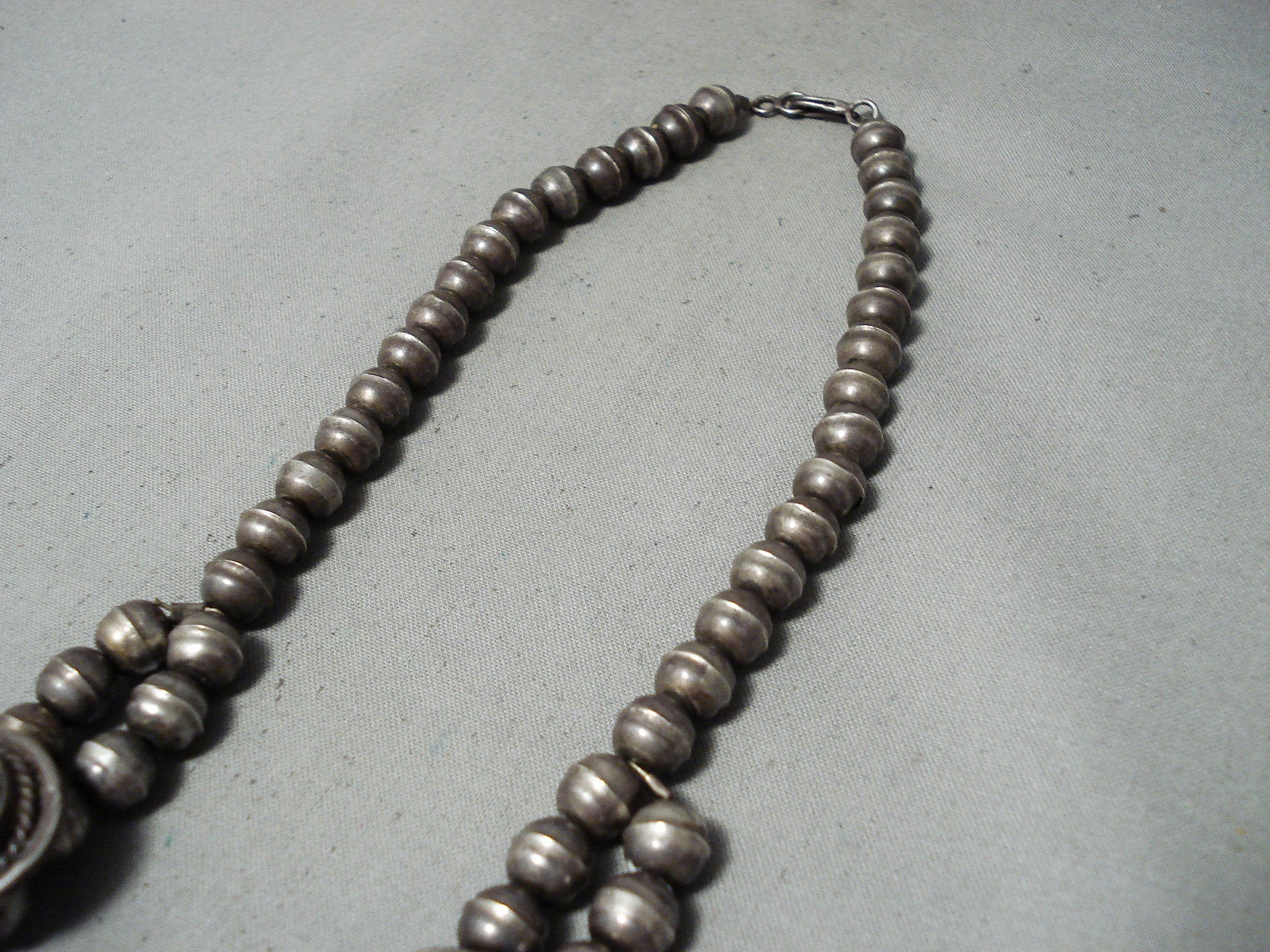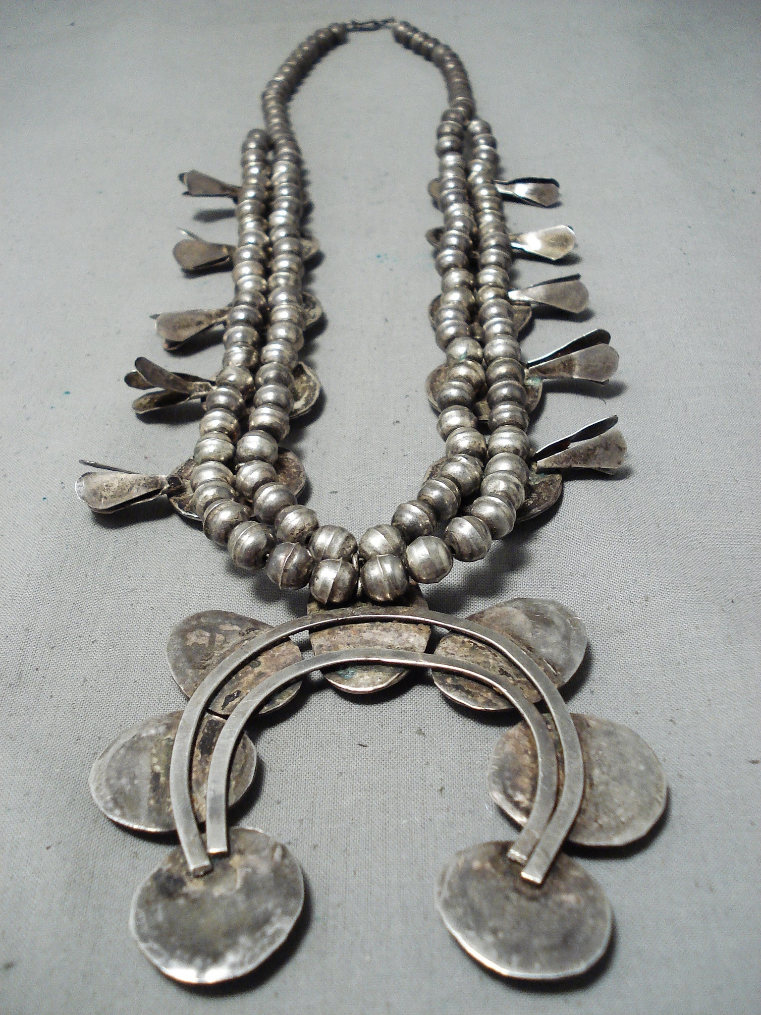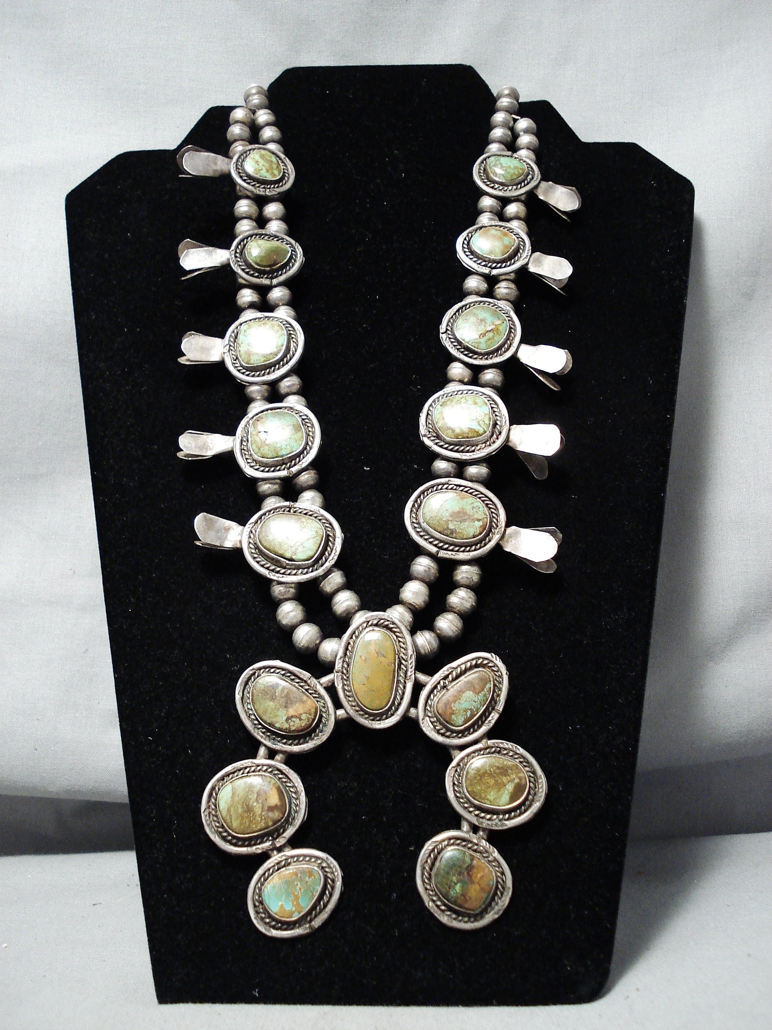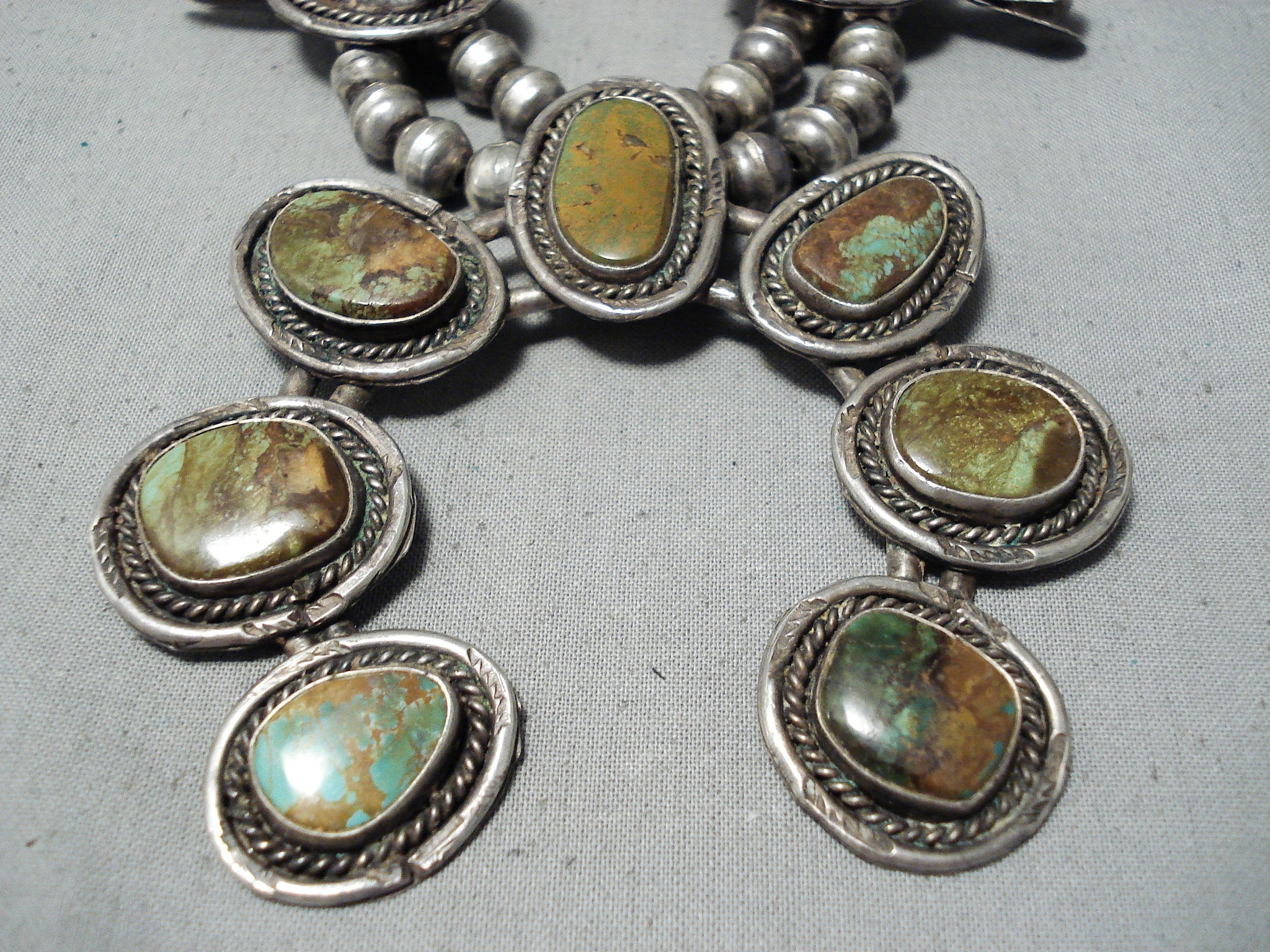 Best Vintage Native American Navajo Royston Turquoise Sterling Silver Squash Blossom Necklace