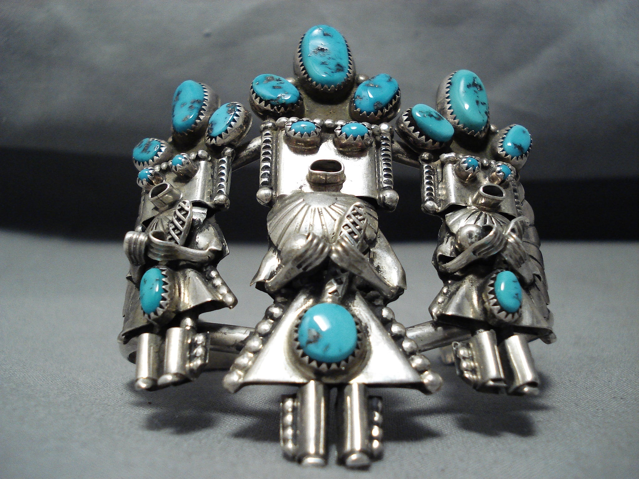 Best Vintage Native American Navajo Singer Kachina Turquoise Sterling Silver Bracelet Old