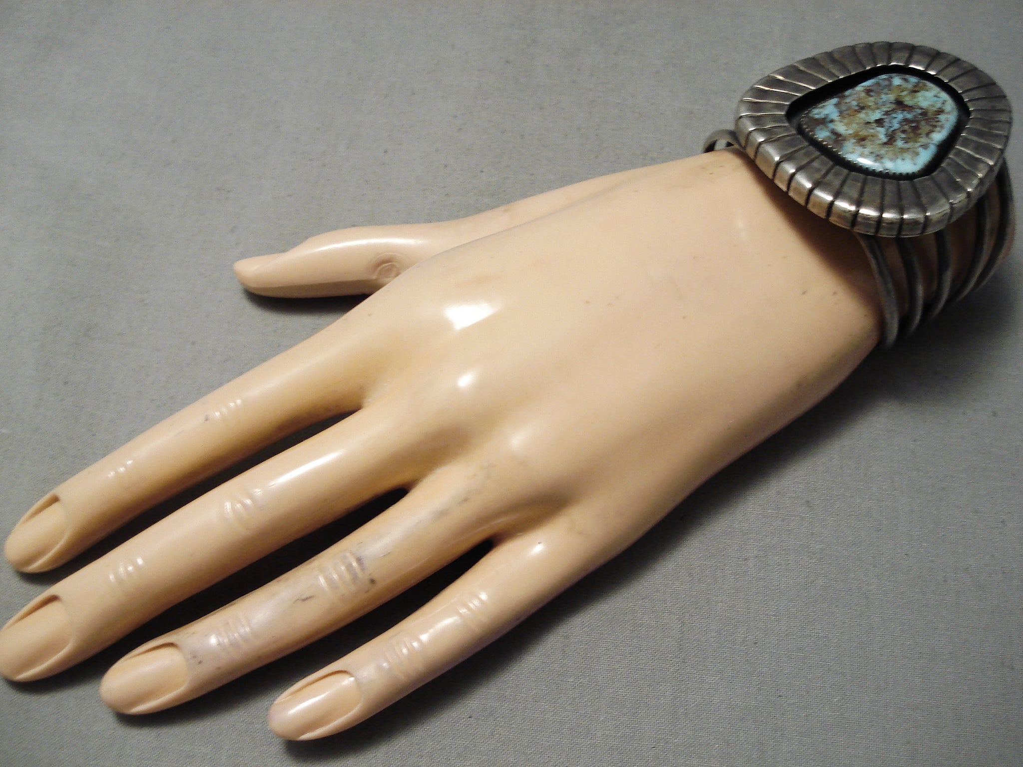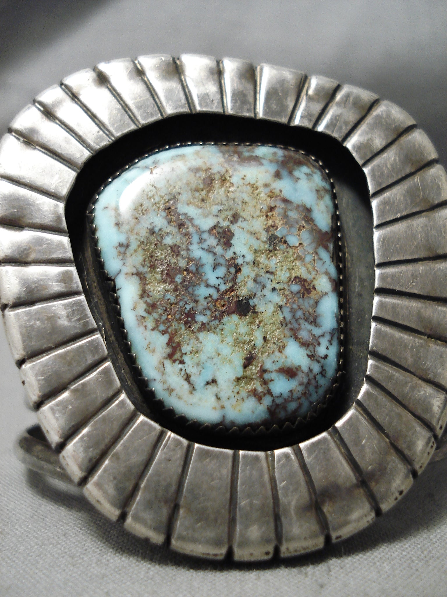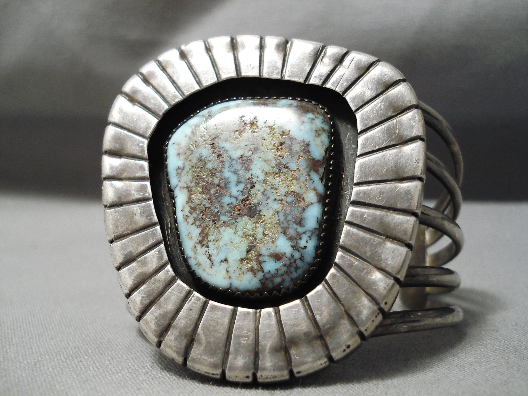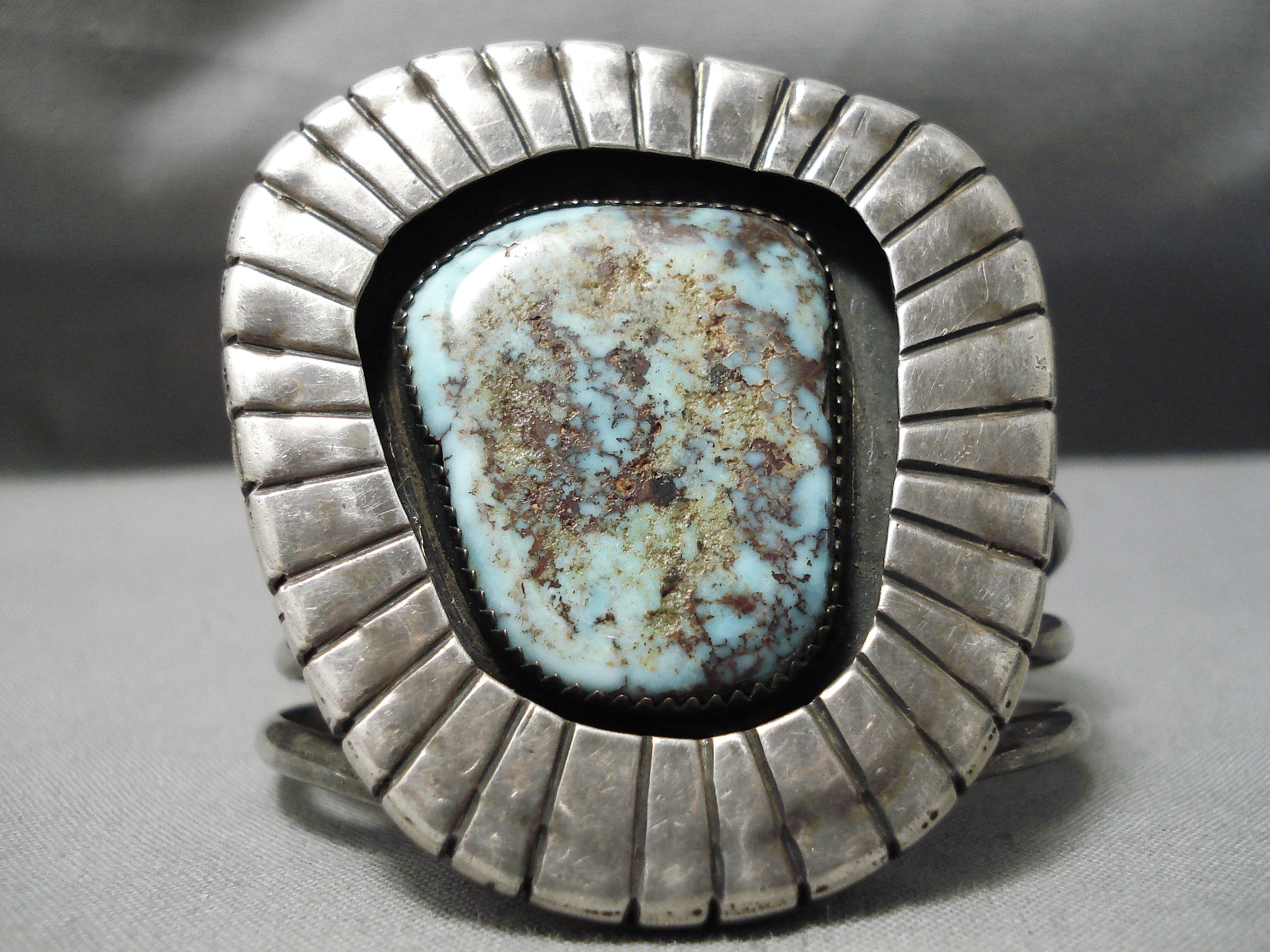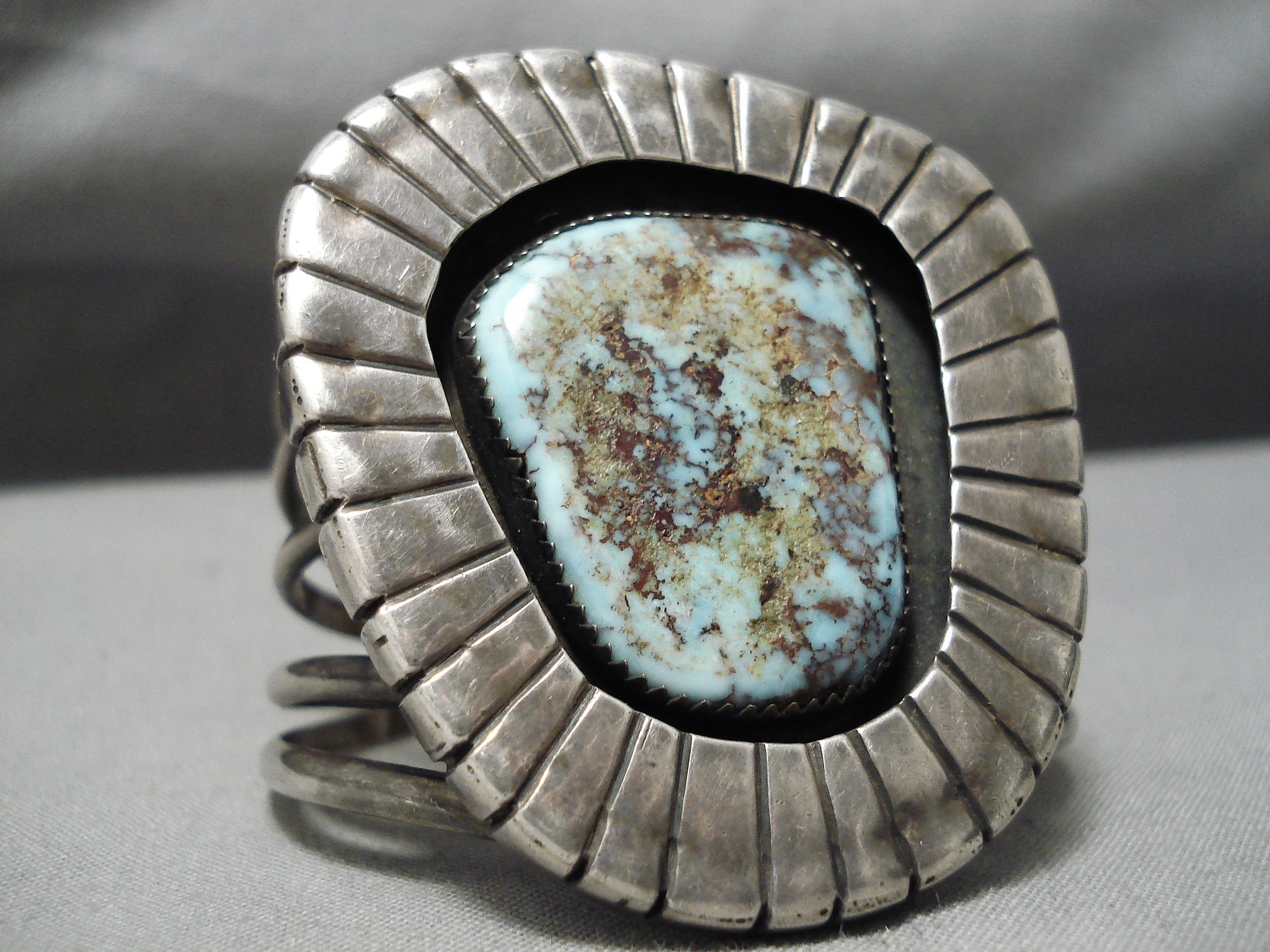 Best Vintage Native American Navajo Smokey Bisbee Turquoise Sterling Silver Bracelet Old