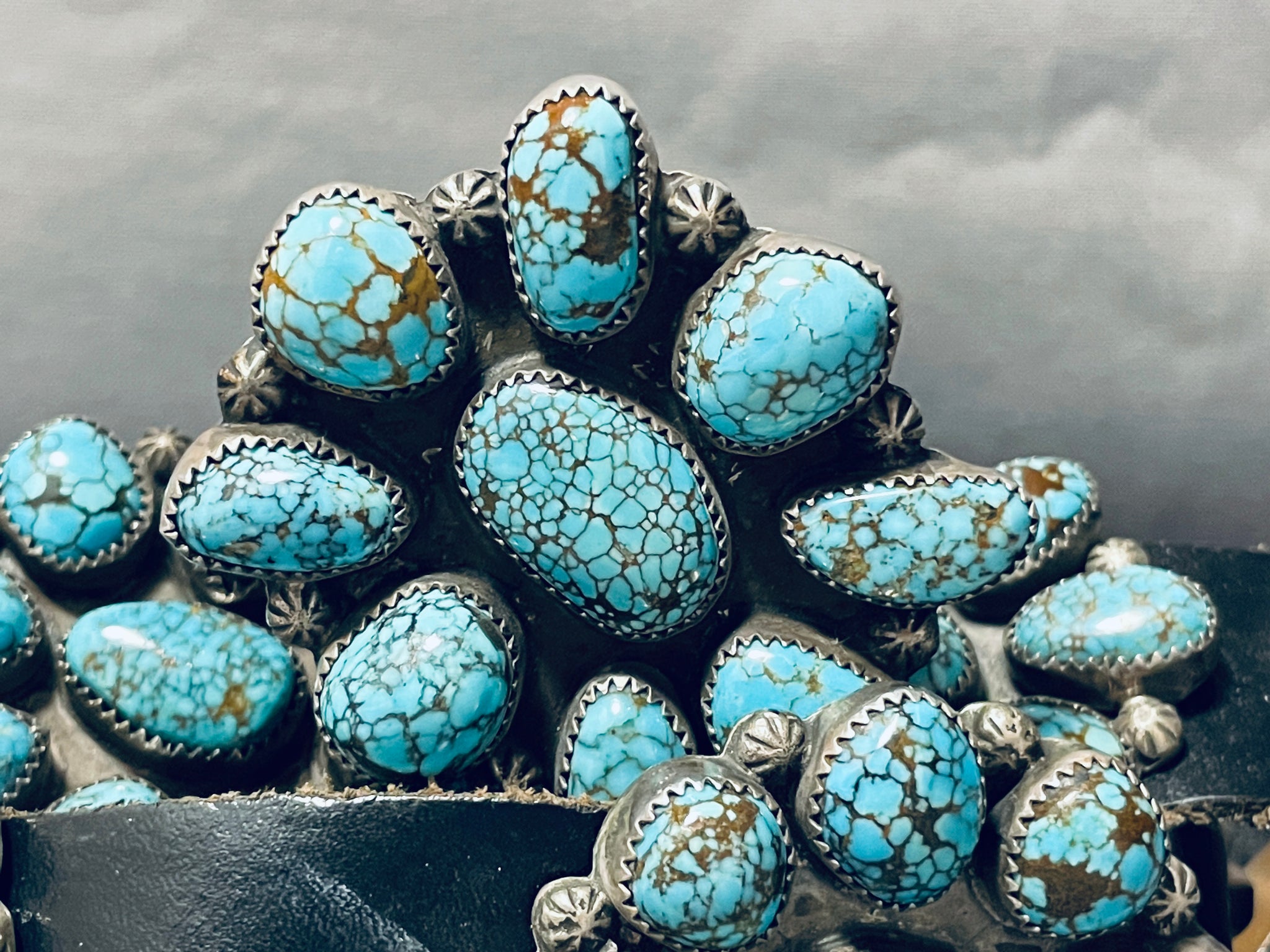 Best Vintage Native American Navajo Spiderweb Turquoise Chunk Sterling Silver Concho Belt