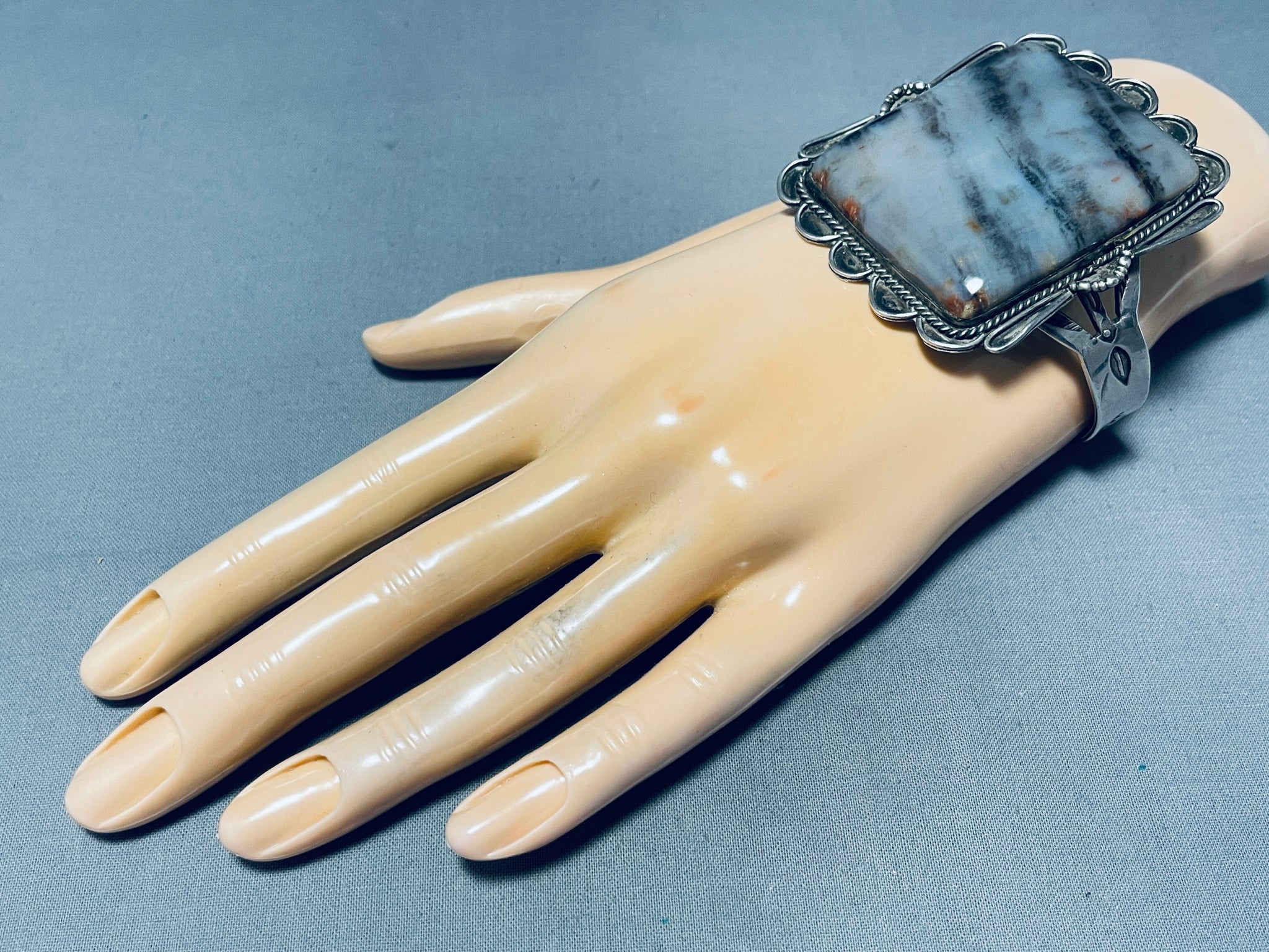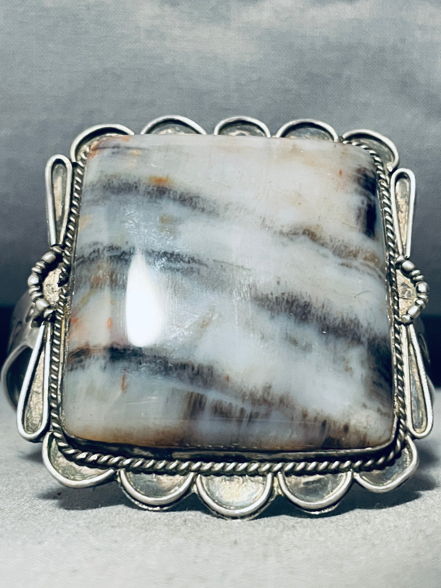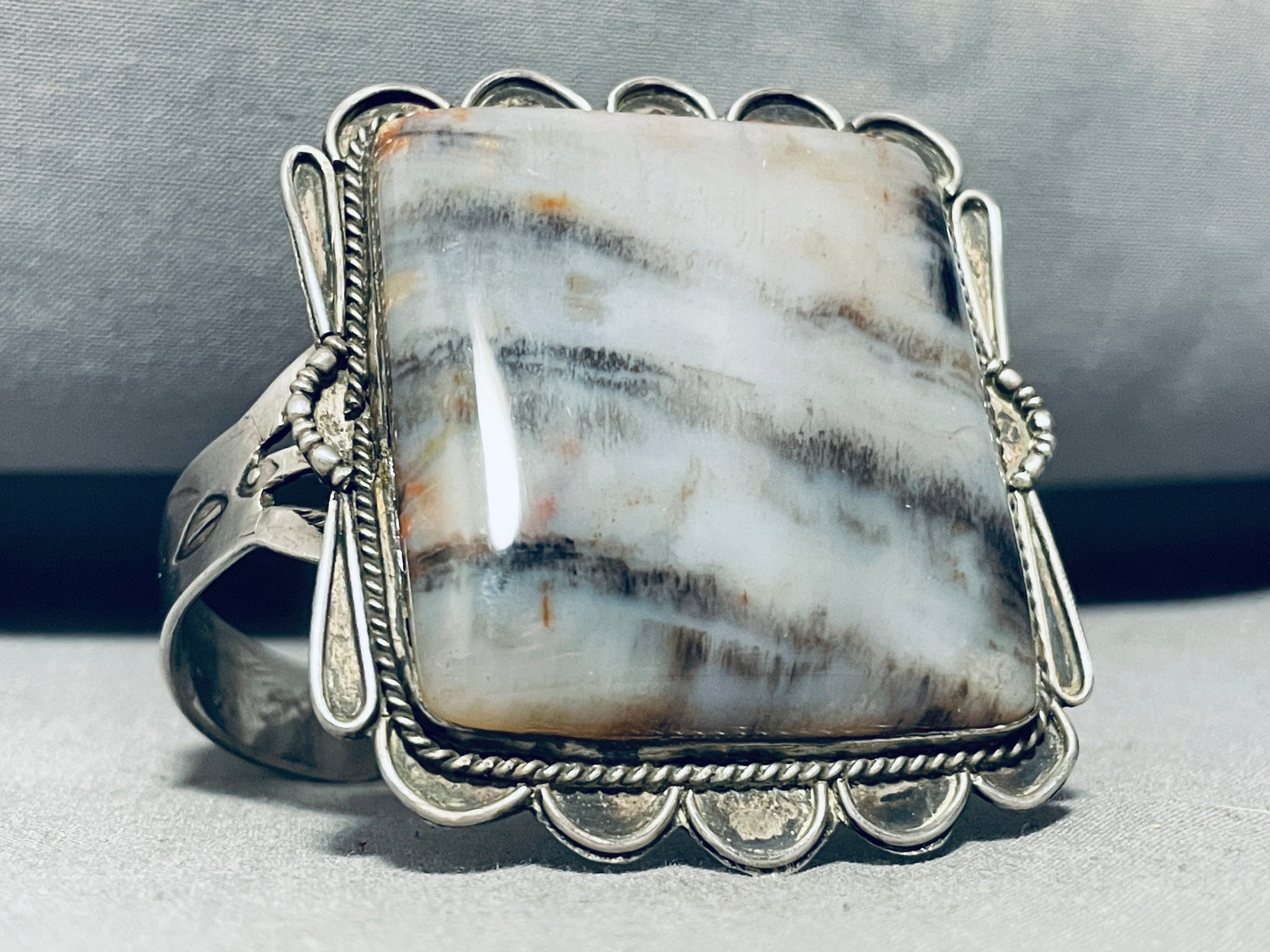 Best Vintage Native American Navajo Squared Petrified Wood Sterling Silver Bracelet