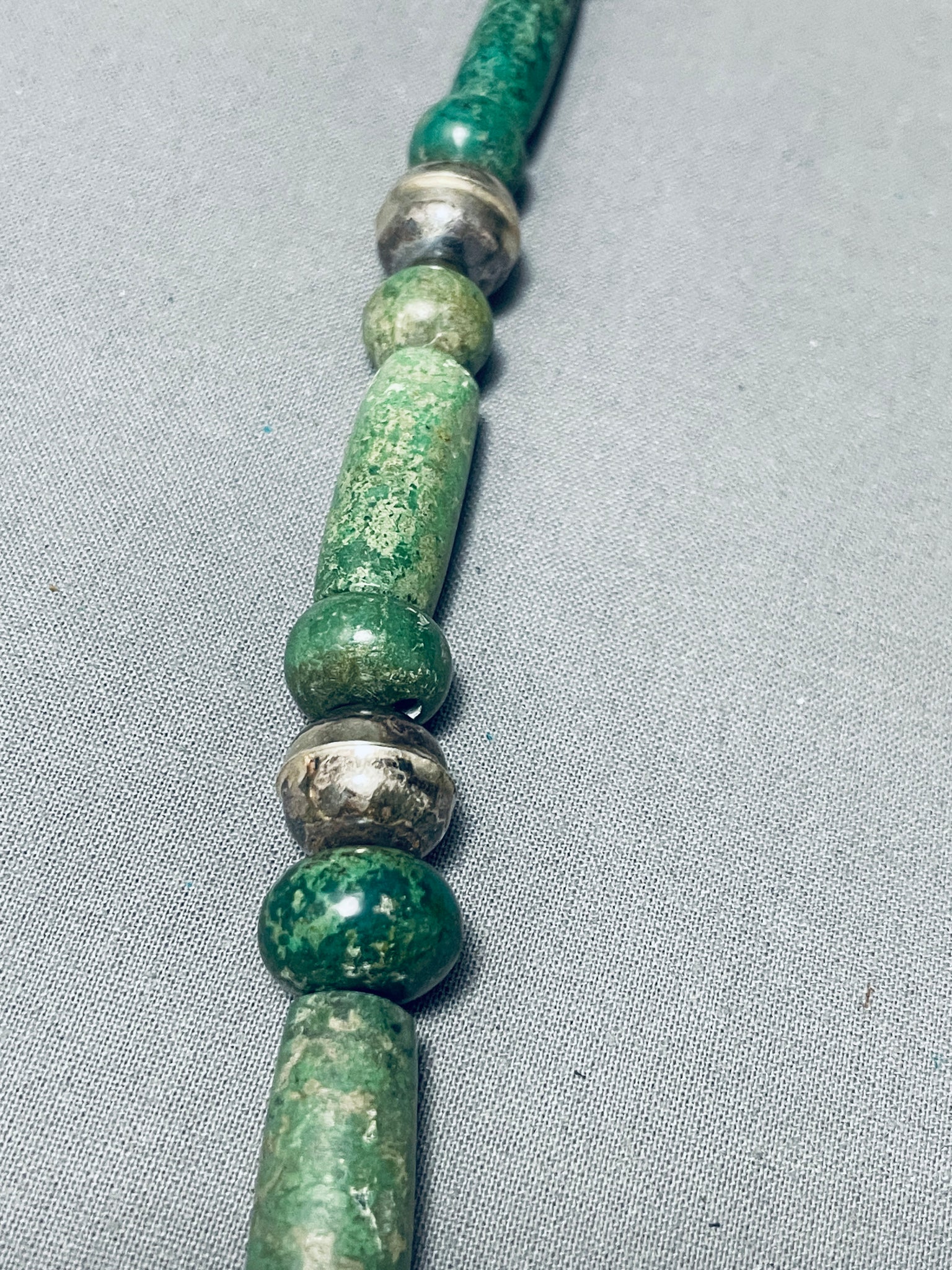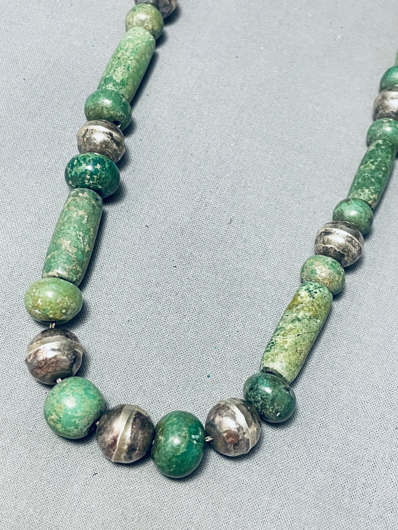 Best Vintage Native American Navajo Tubule Jade Sterling Silver Necklace