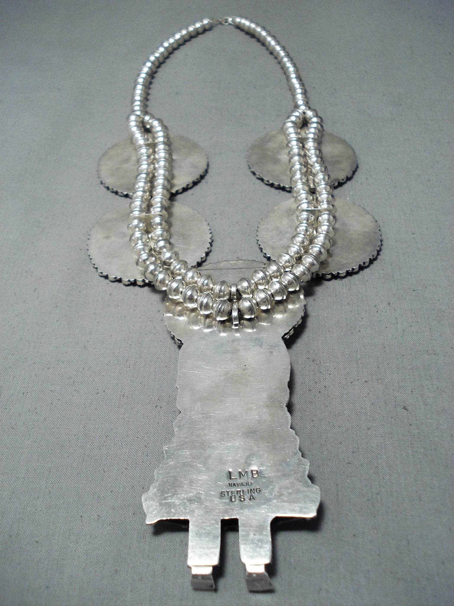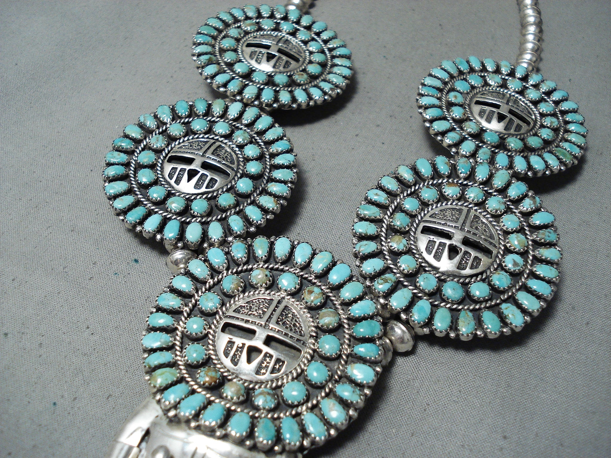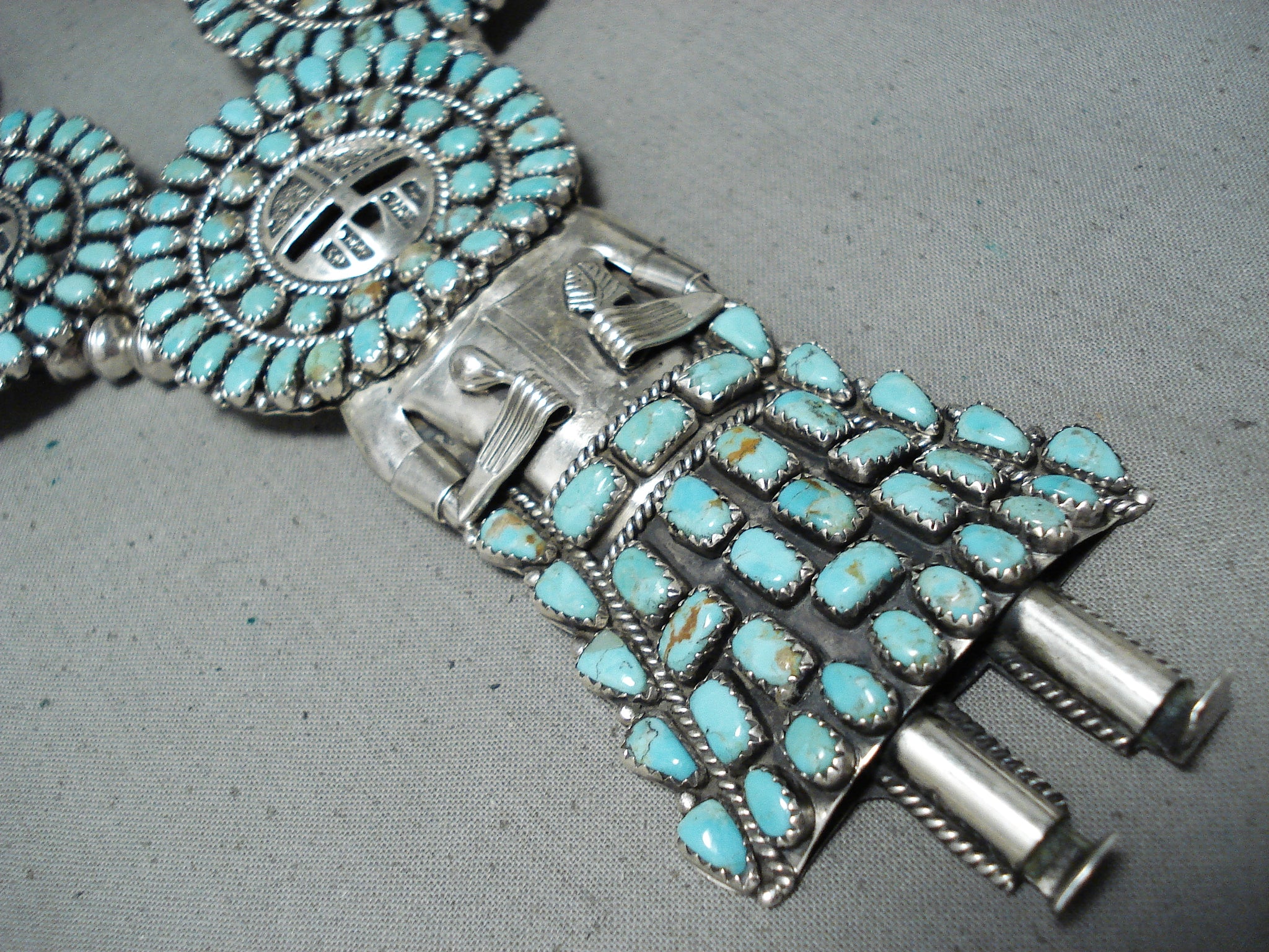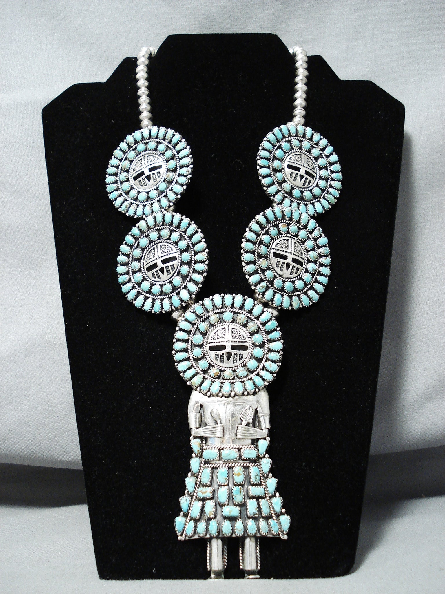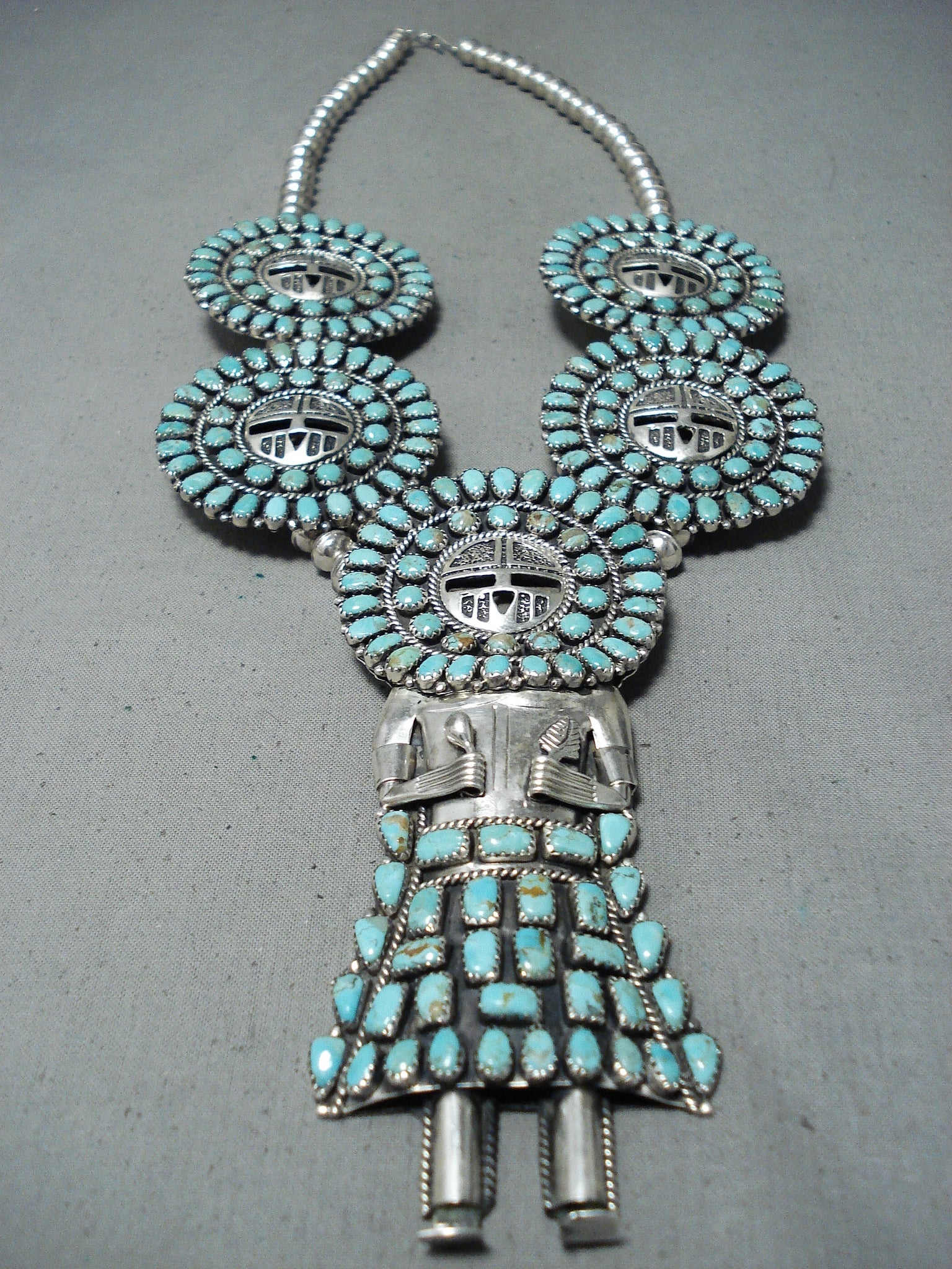 Best Vintage Native American Navajo Turquoise Kachina Sterling Silver Squash Blossom Necklace