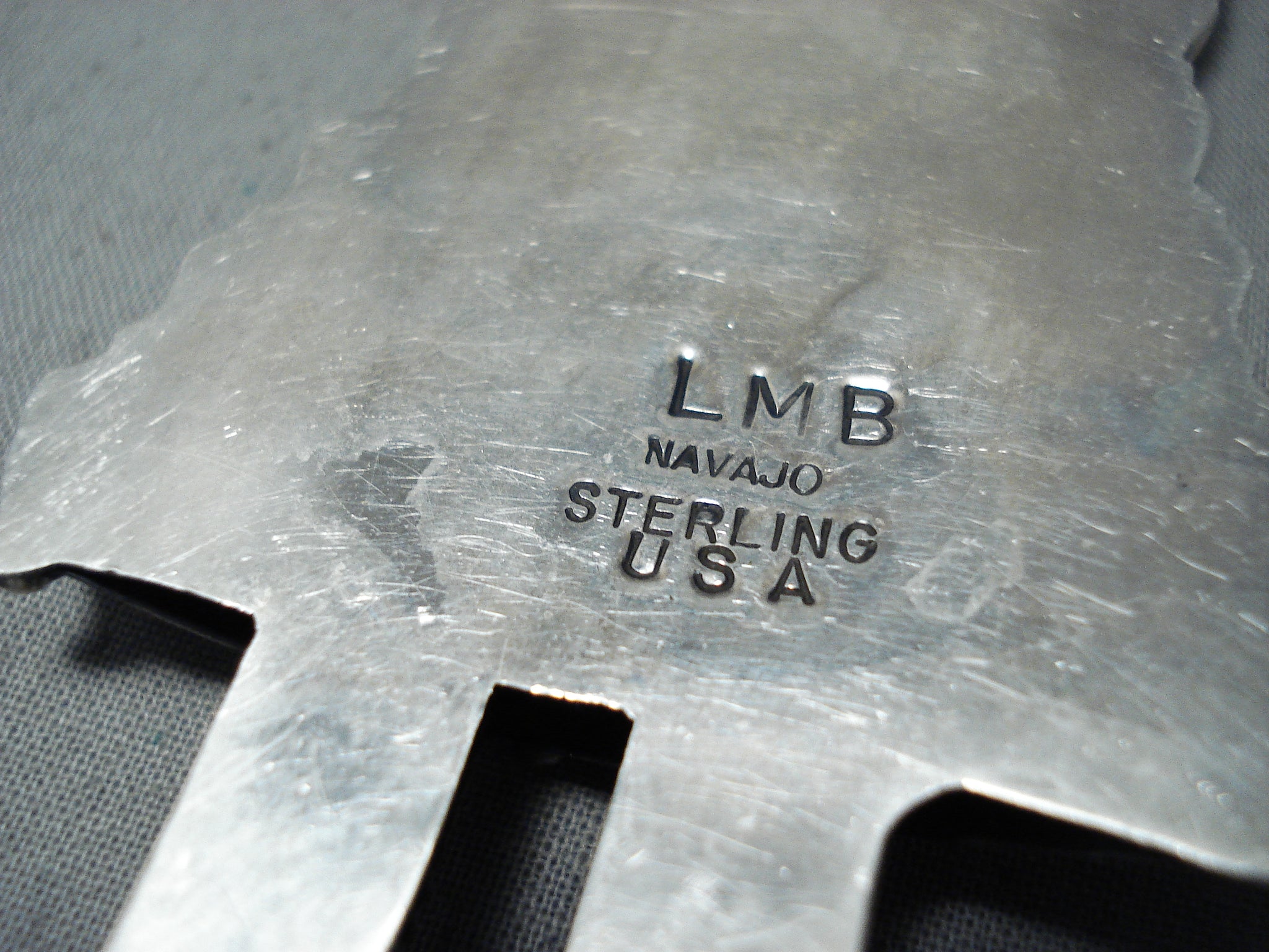 This is a superlative vintage Navajo very important kachina turquoise sun face squash blossom necklace. This museum quality necklace was handmade by the very famous artist, Larry Moses Begay. This is an authentic Larry piece as the detailing are just impeccable and turquoise stones are so perfectly placed. The turquoise appears to be from the wonderful Royston turquoise mine. Each of the four rounded squashes contains a marvelous center hand carved kachina face with impeccable workmanship and surrounding raindrops and ropes. Each of the face squashes measure around 2" in diameter. The bottom incredible huge silver kachina pendant measures a whopping 5" X 2". Situated throughout the entire necklace are amazing round silver beads with a traditional silver clasp. Sterling silver, marked. Cir. 1980's+. Signed by Navajo artist, Larry Moses Begay . The length of the necklace measures around 29". Sturdy 164 grams.