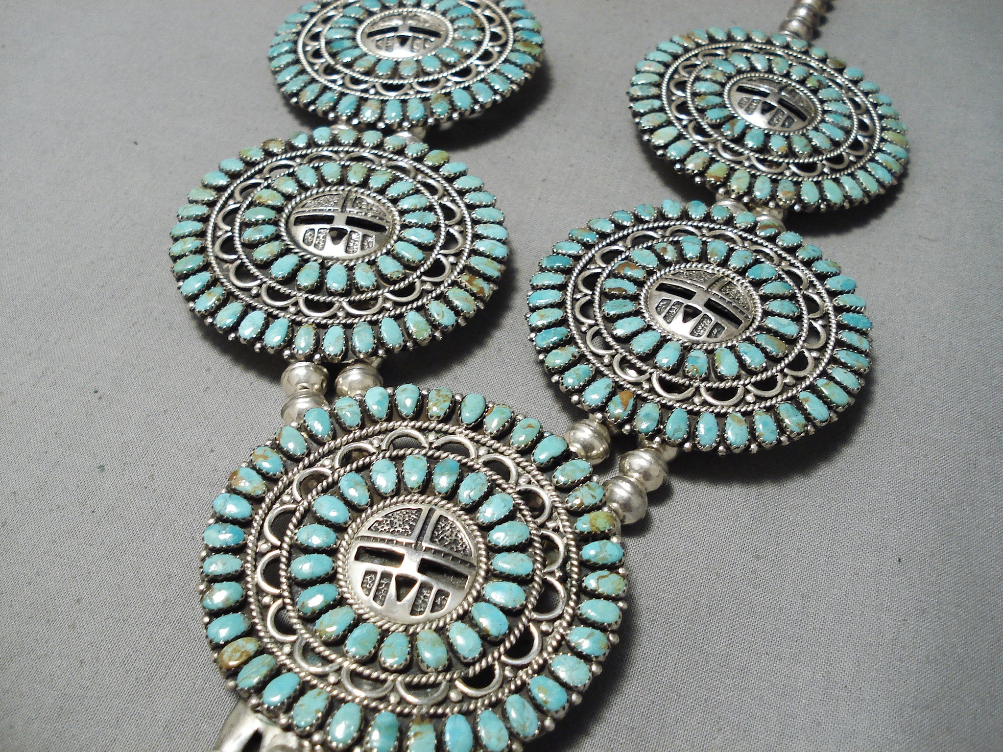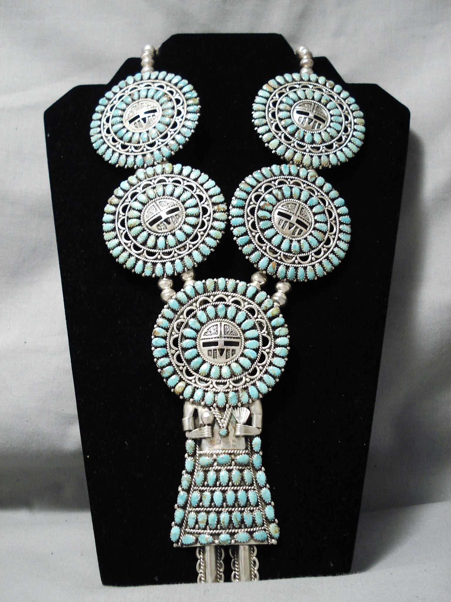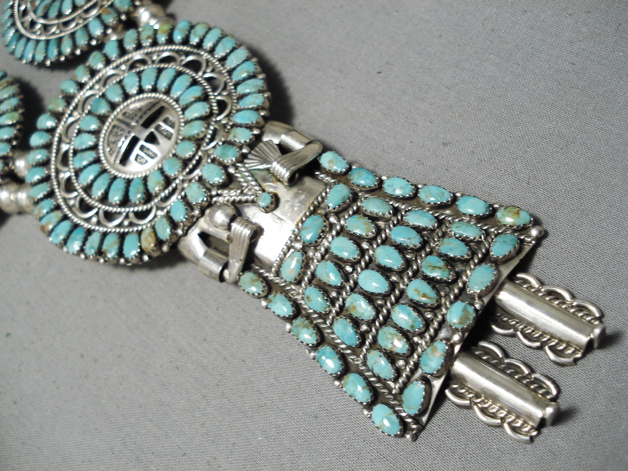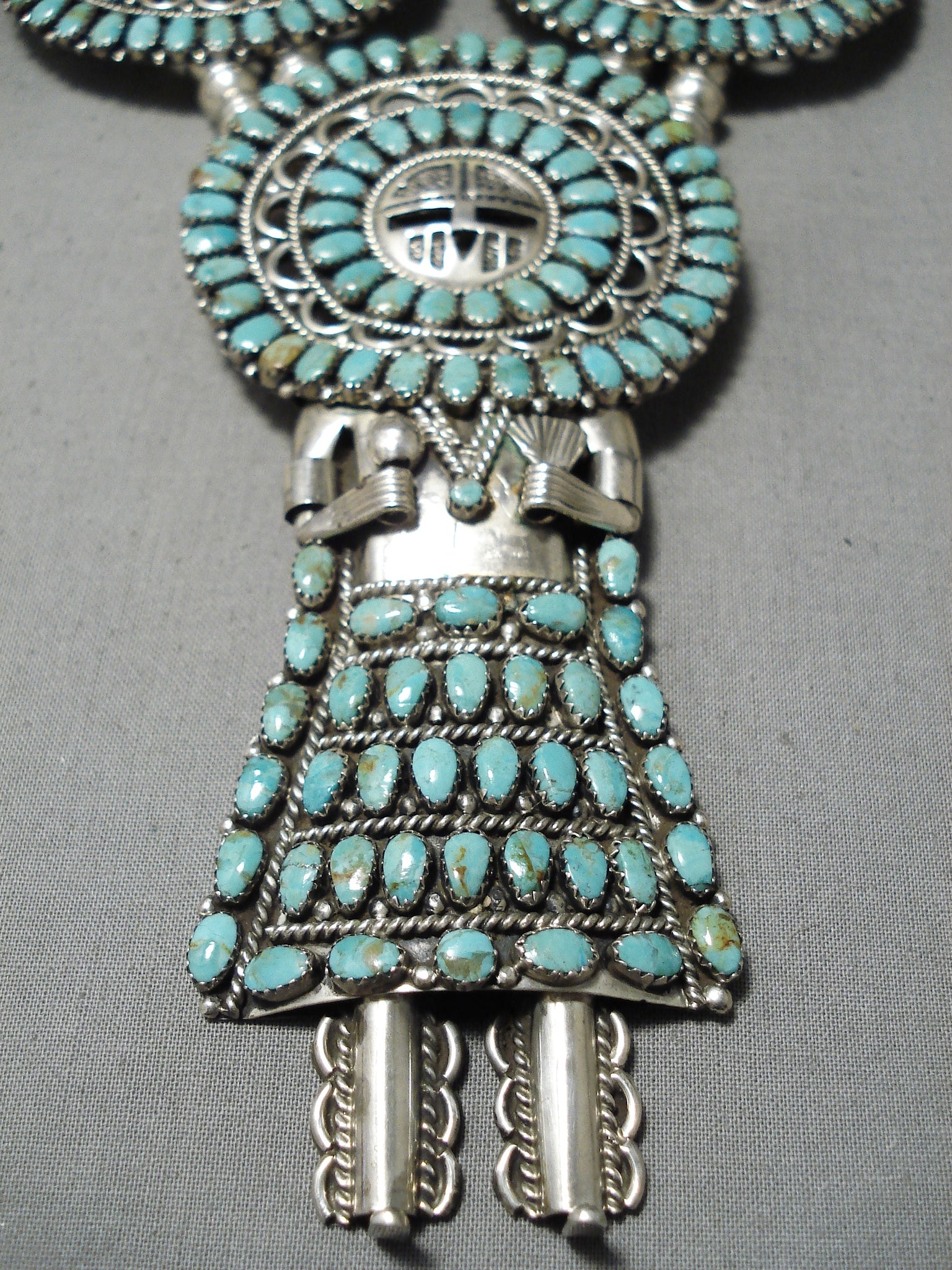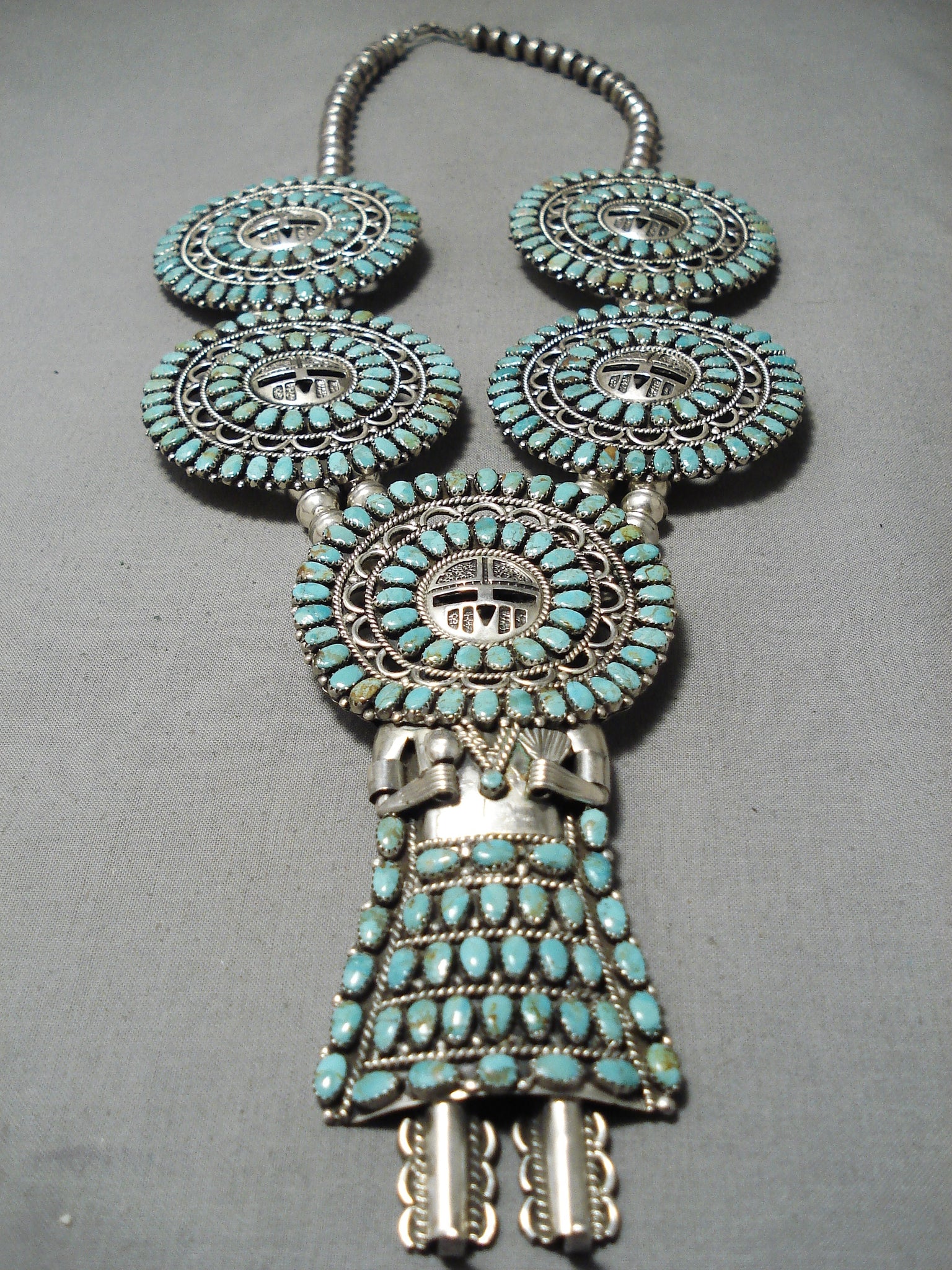 Best Vintage Native American Navajo Turquoise Kachina Turquoise Squash Blossom Necklace