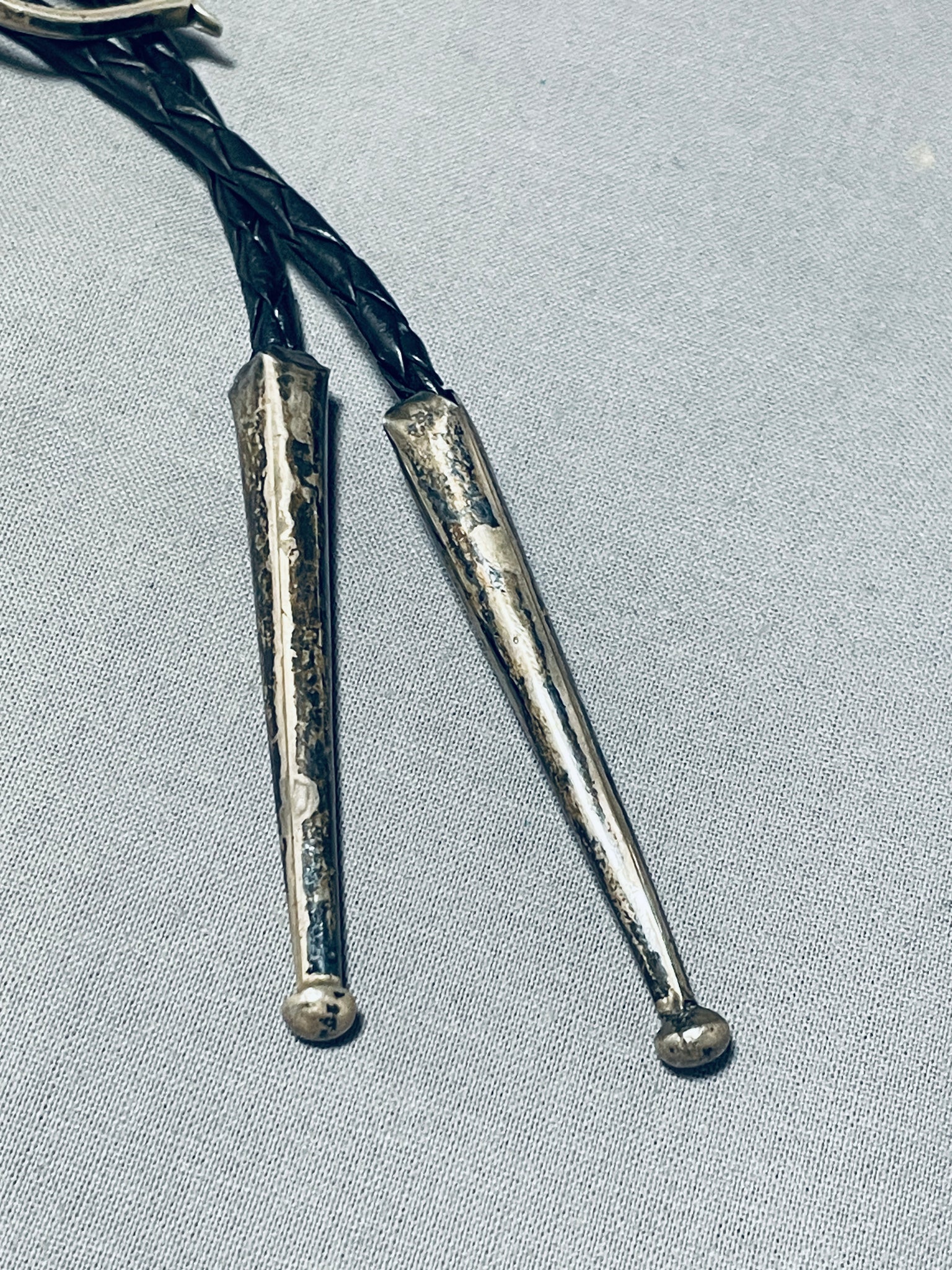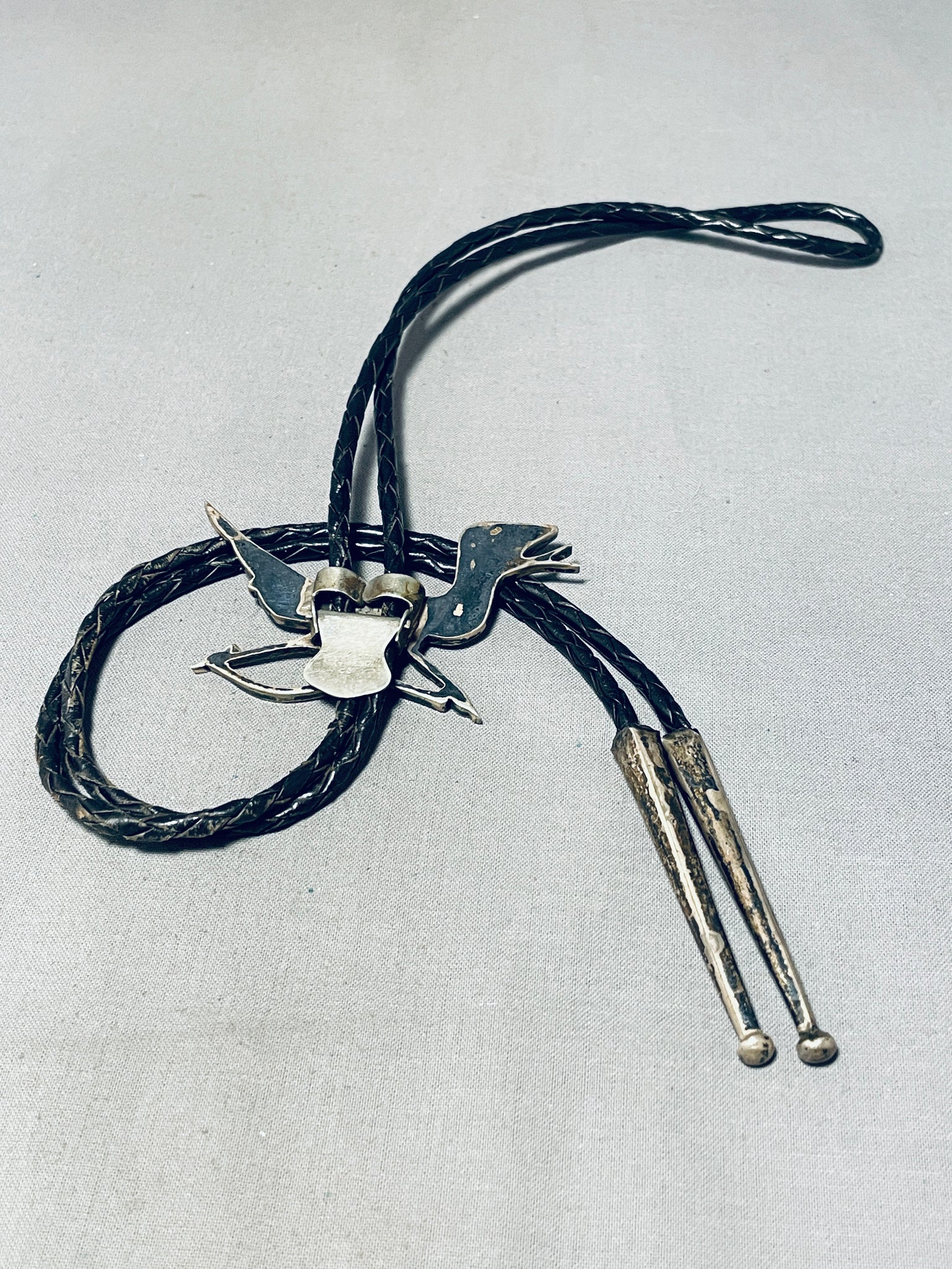Best Vintage Native American Zuni Blue Gem Turquoise Sterling Silver Roadrunner Bolo Tie