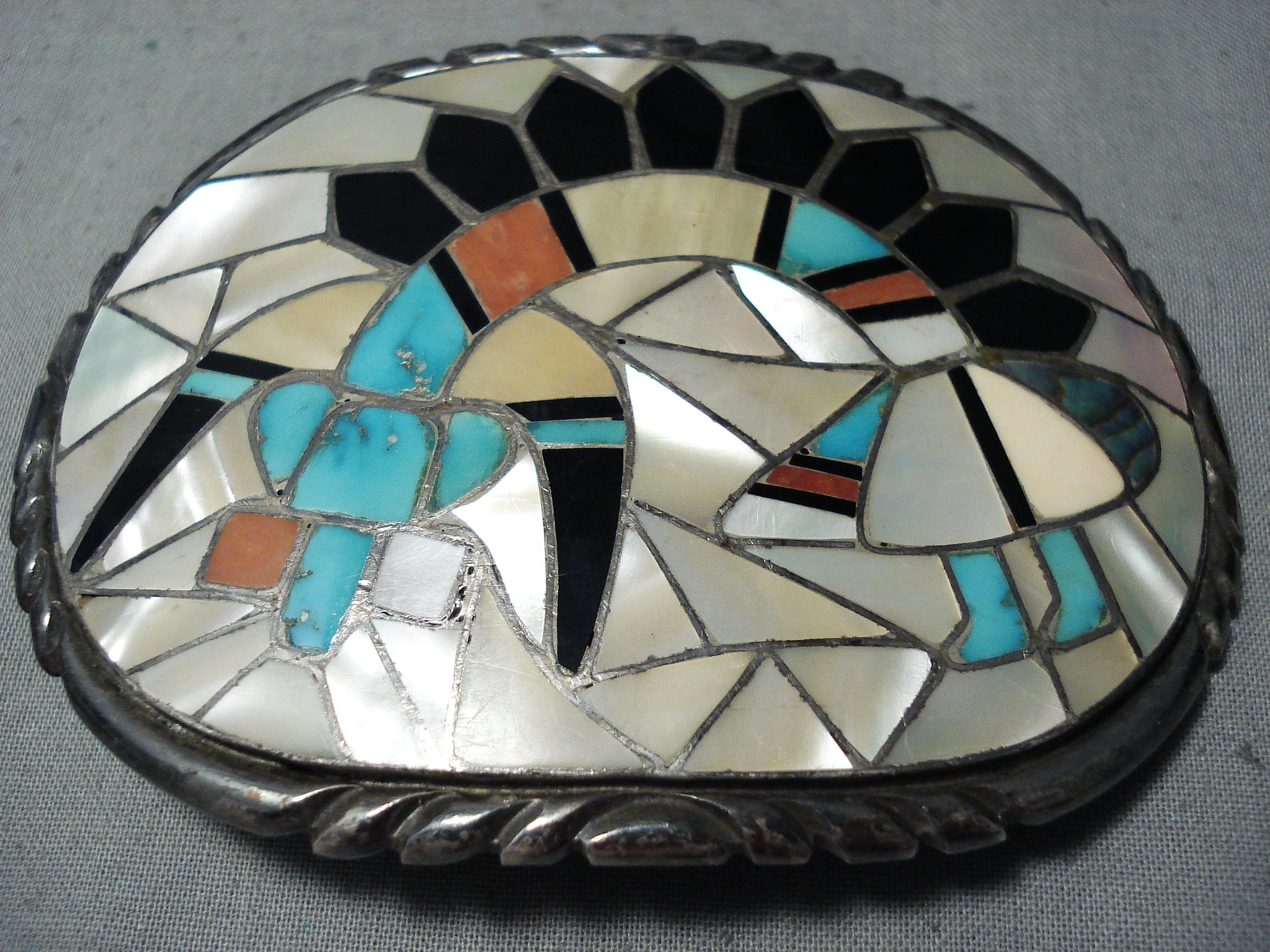Best Vintage Native American Zuni Rich Kallestewa Turquoise Inlay Sterling Silver Buckle