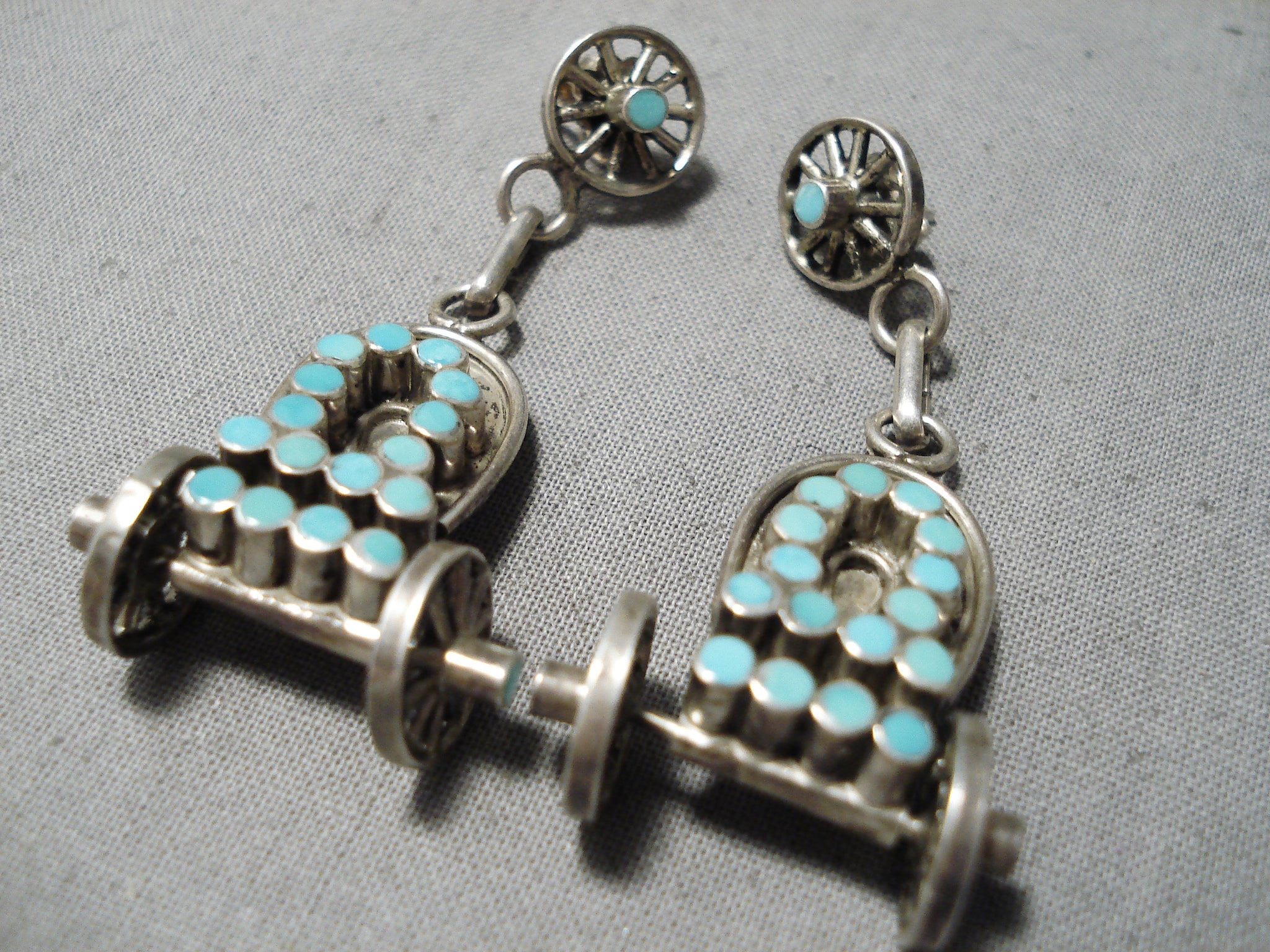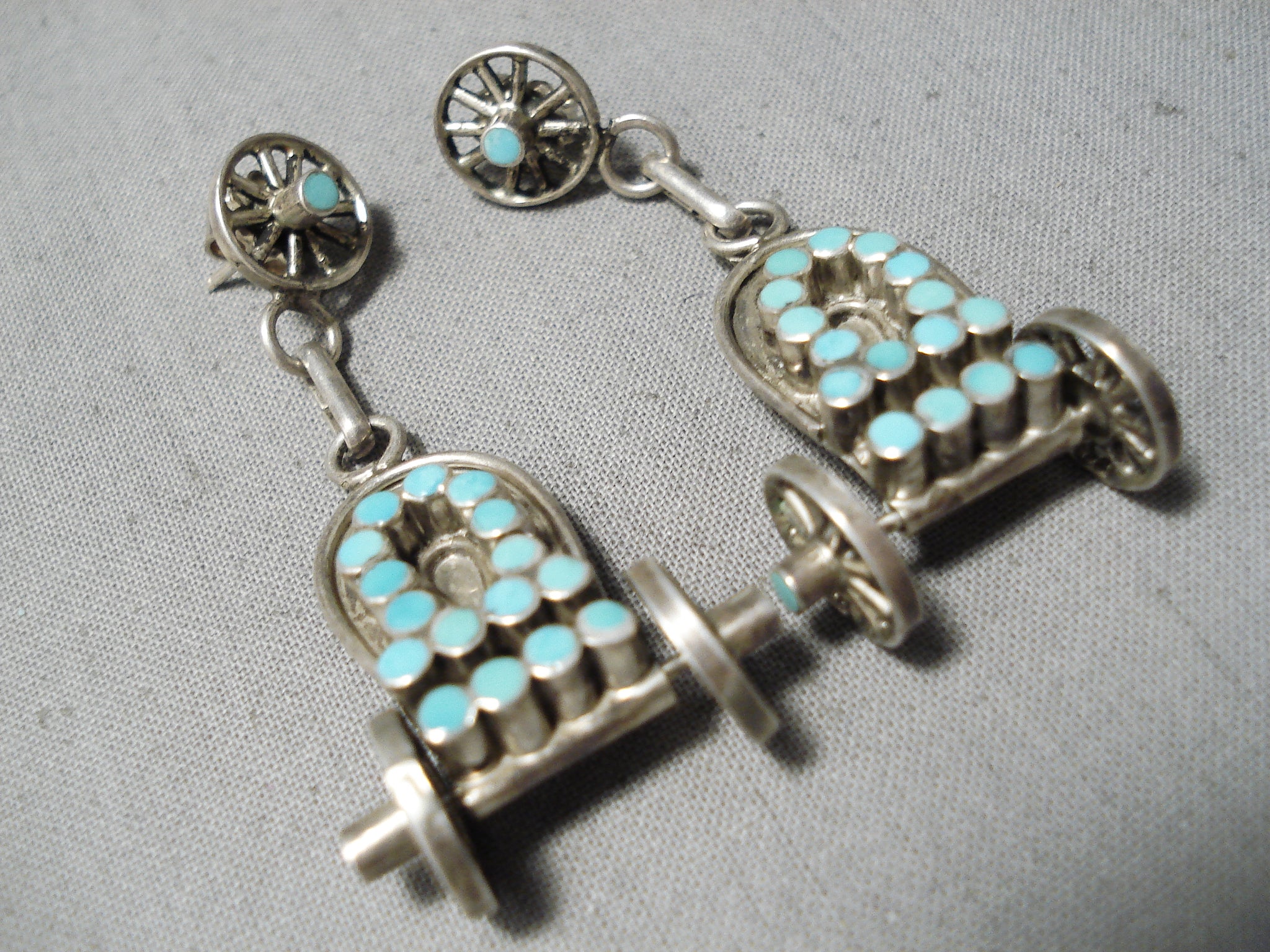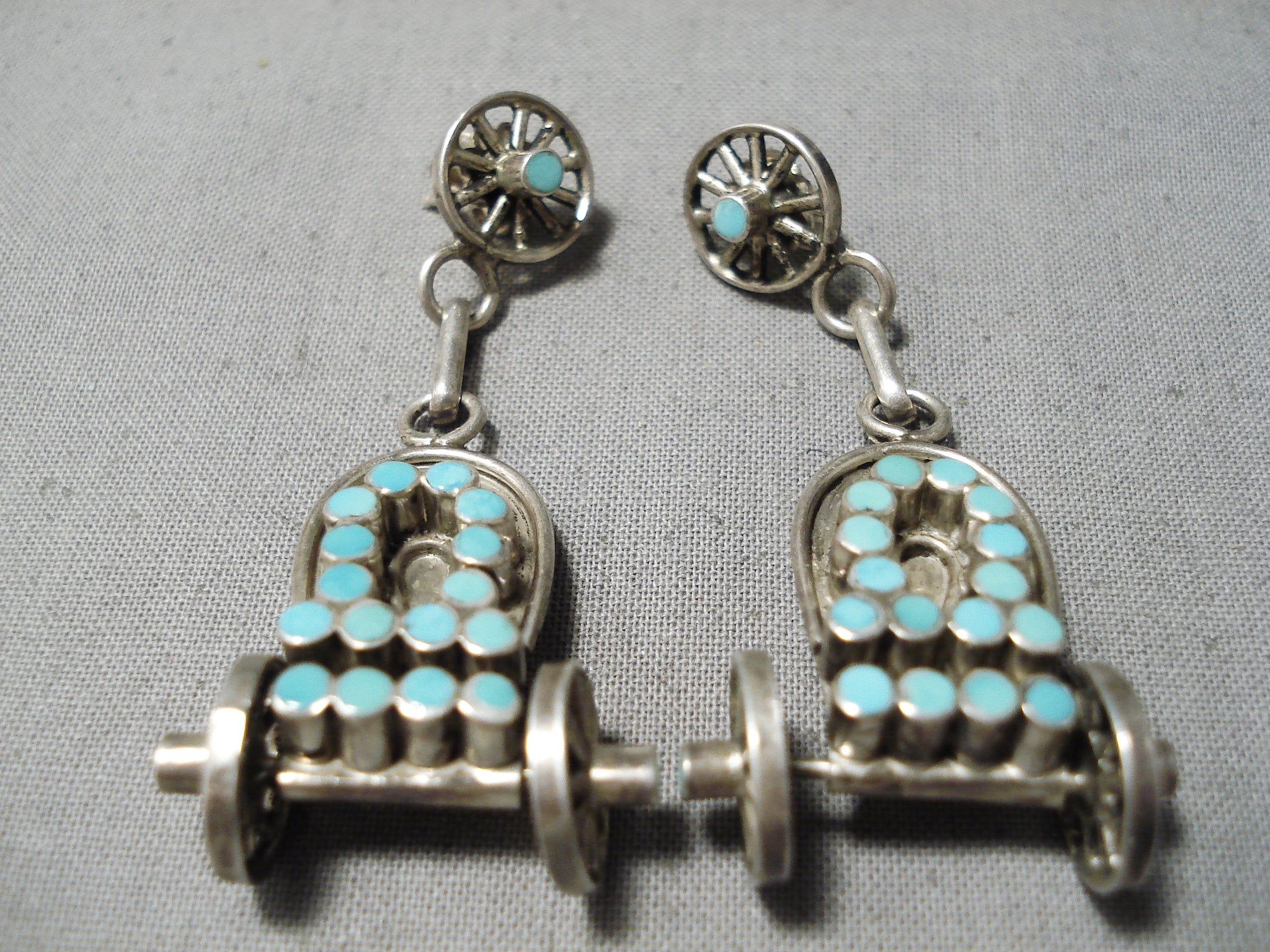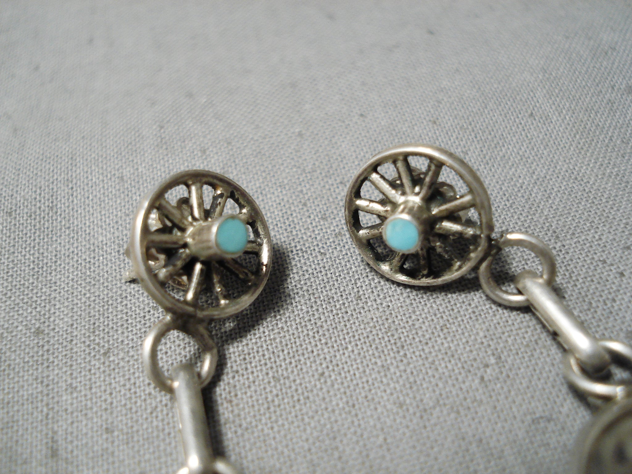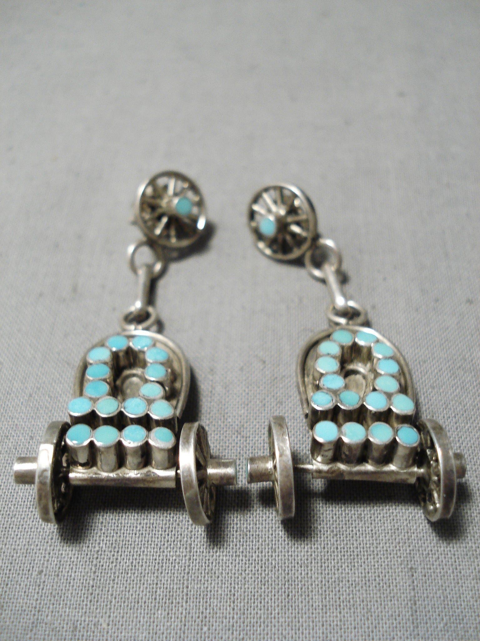 Best Vintage Native American Zuni Wagon Dishta Turquoise Sterling Silver Earrings