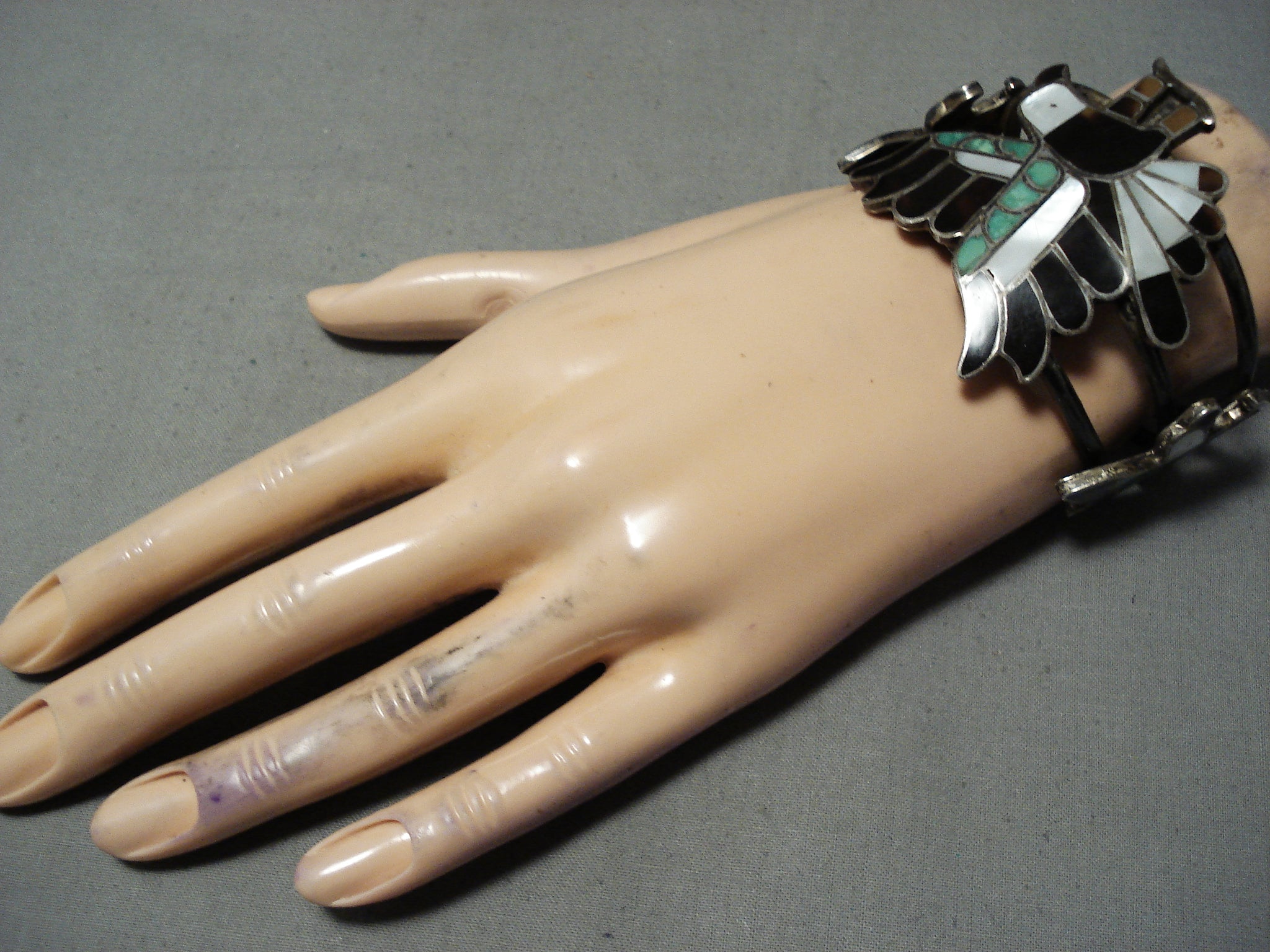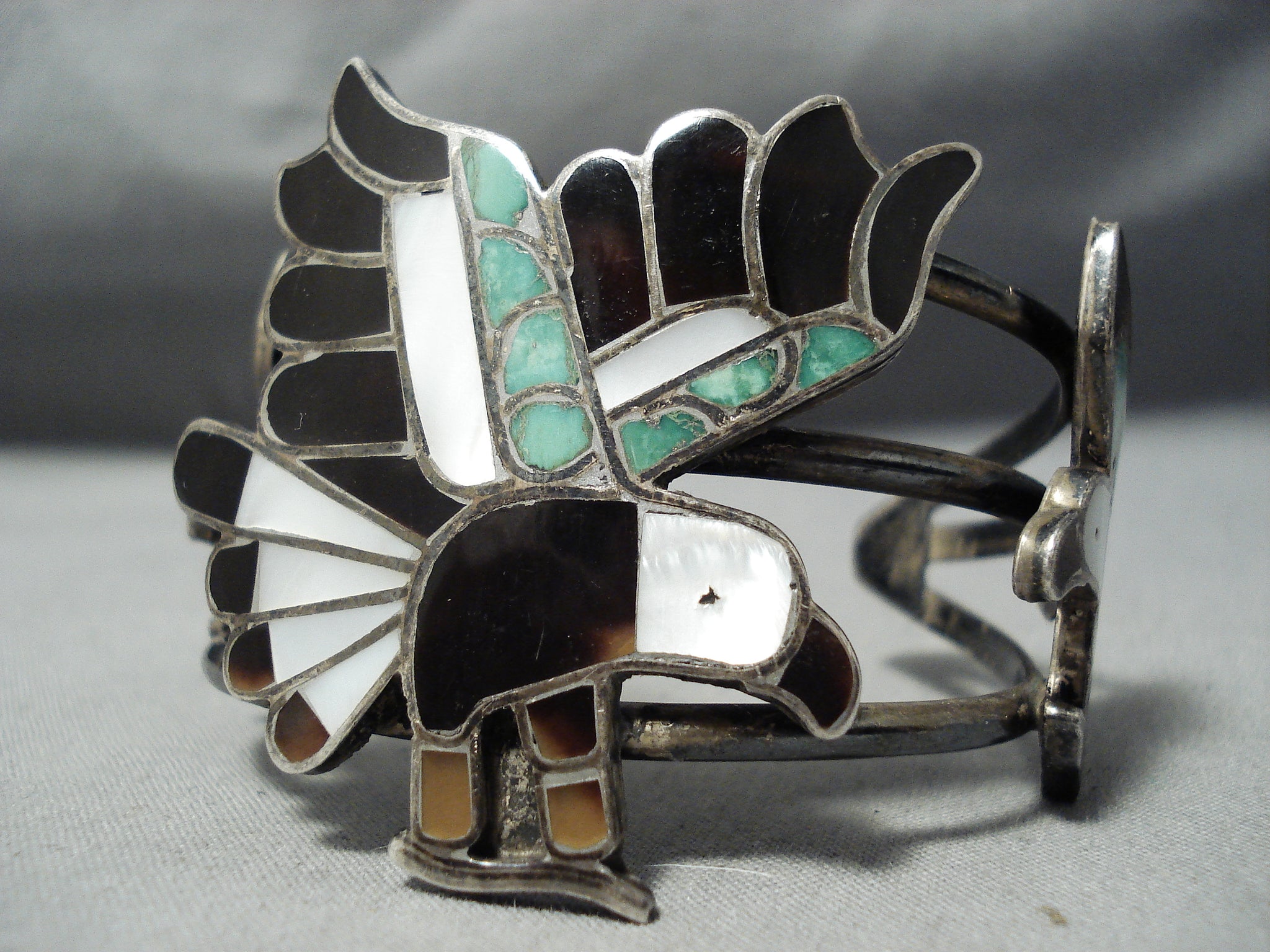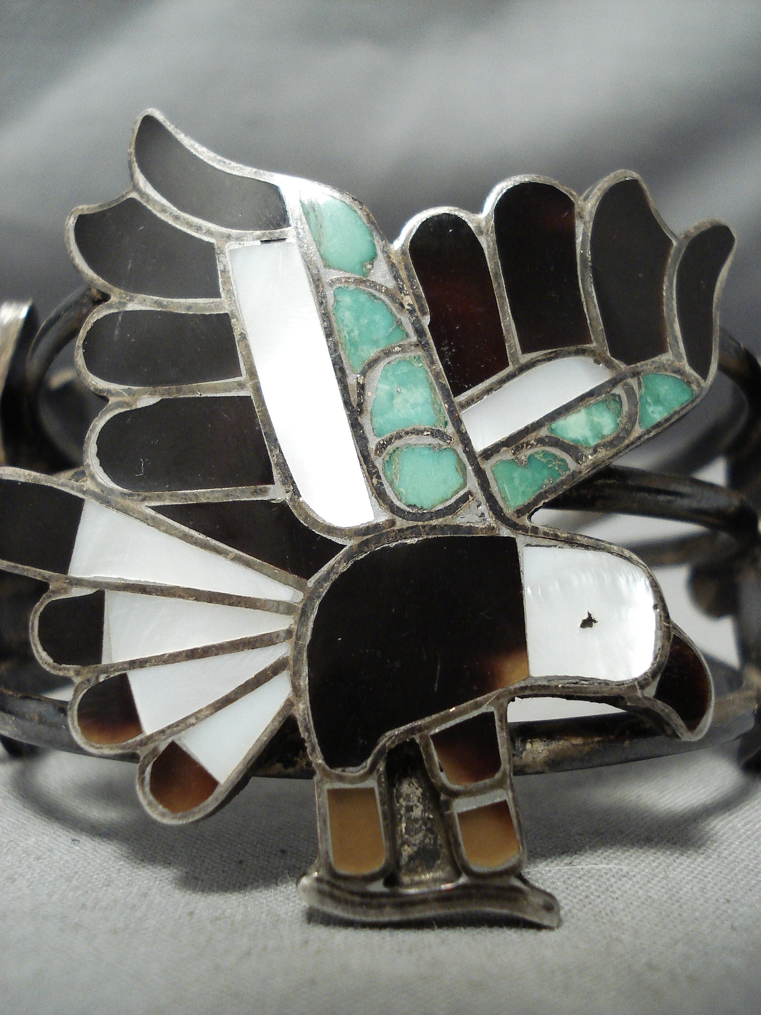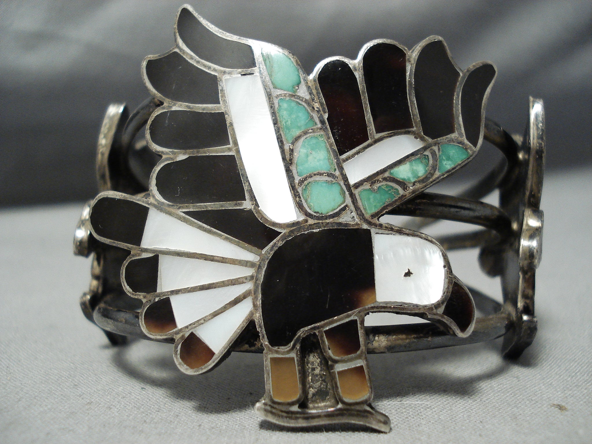Best Vintage Zuni Native American Eagle Turquoise Sterling Silver Bracelet