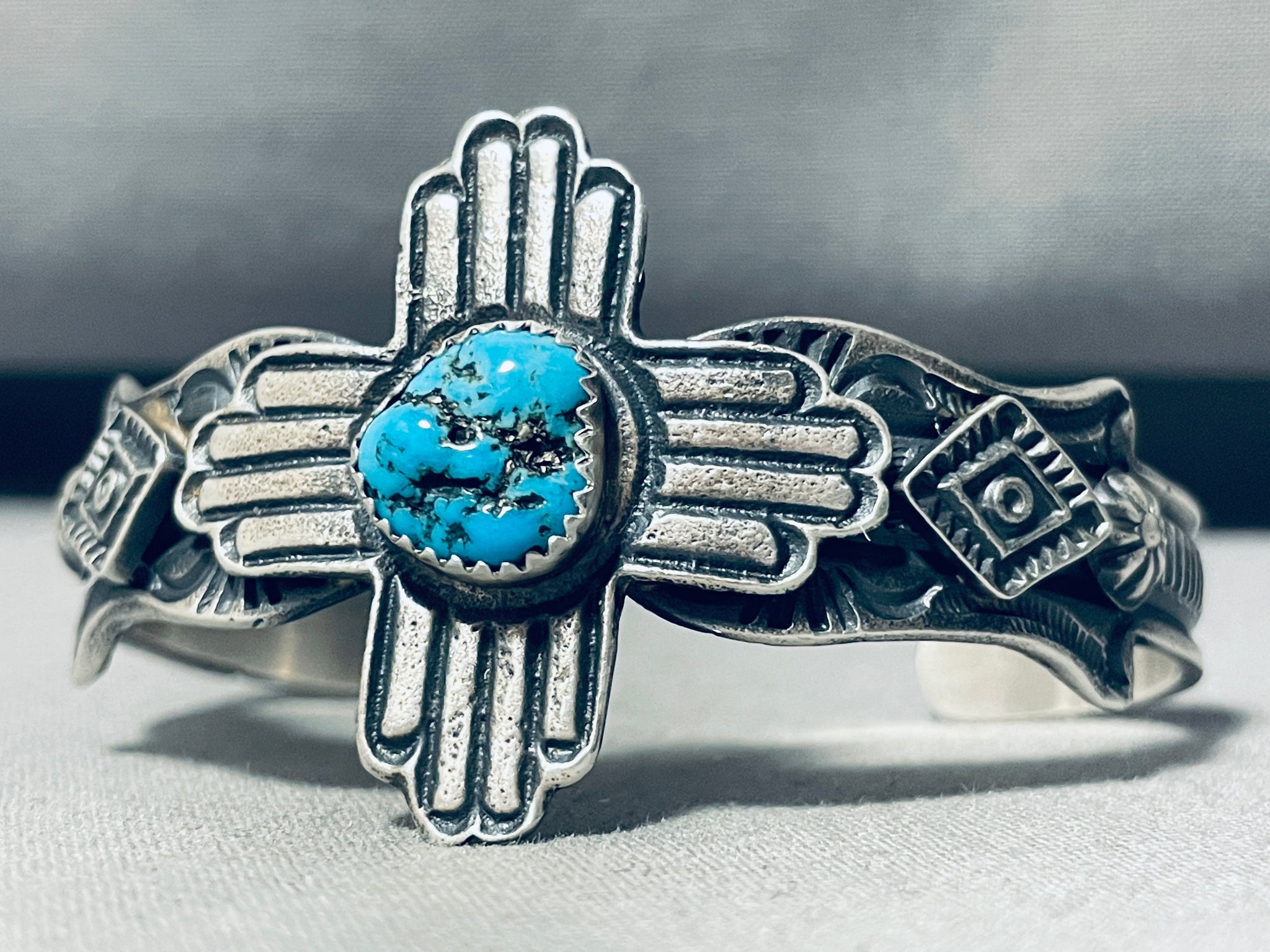 Best Zia!! Vintage Native American Navajo Turquoise Sterling Silver Bracelet