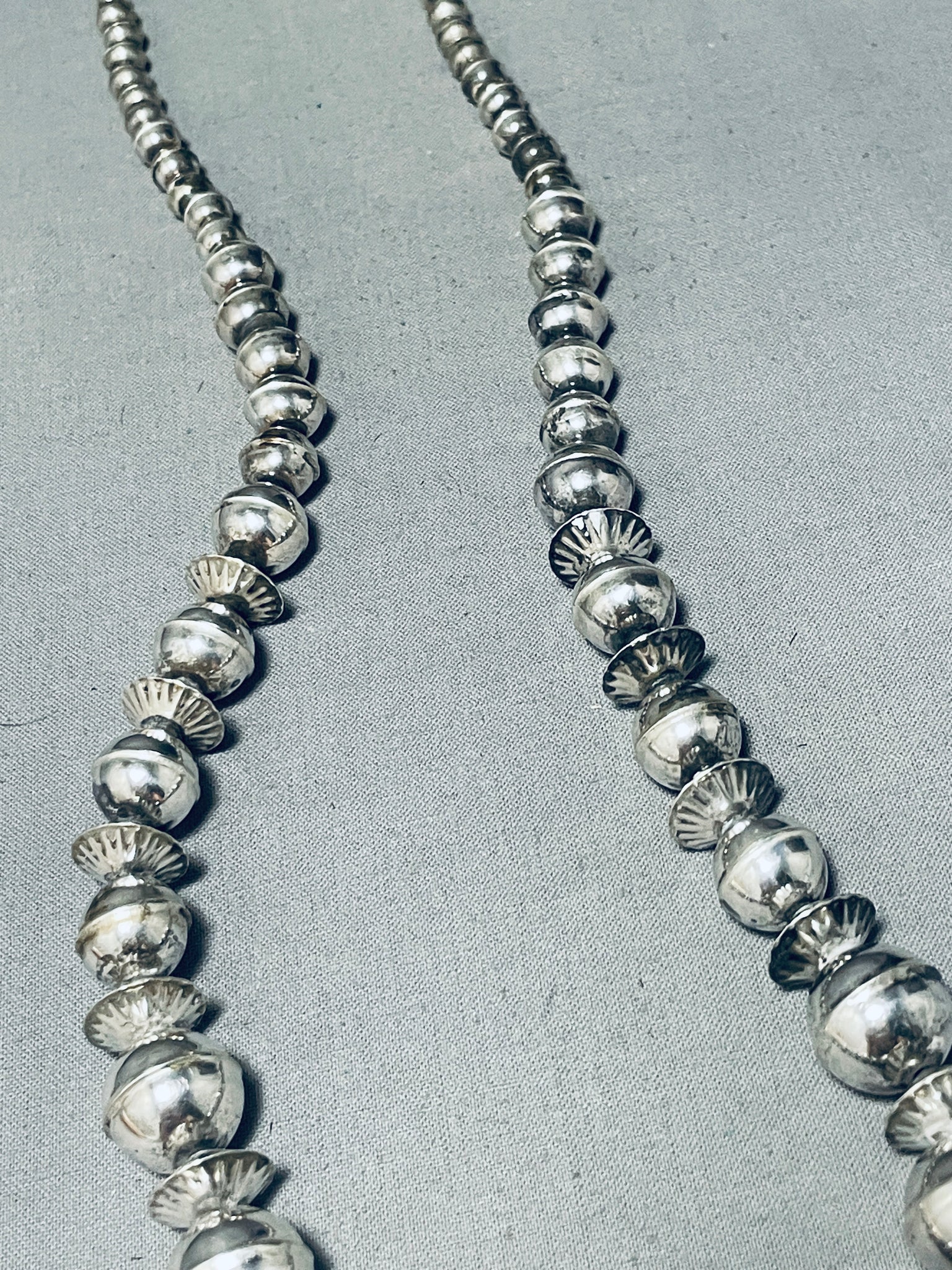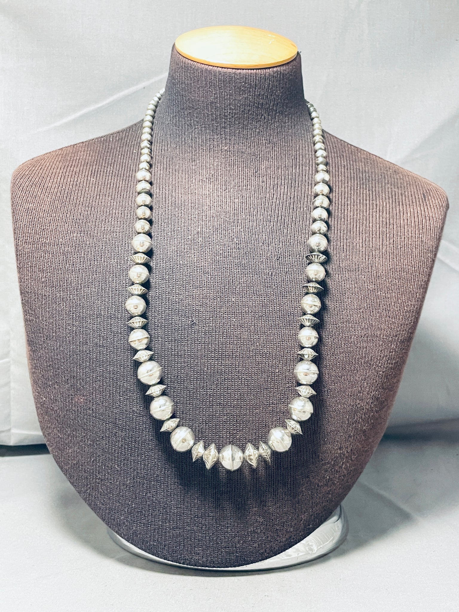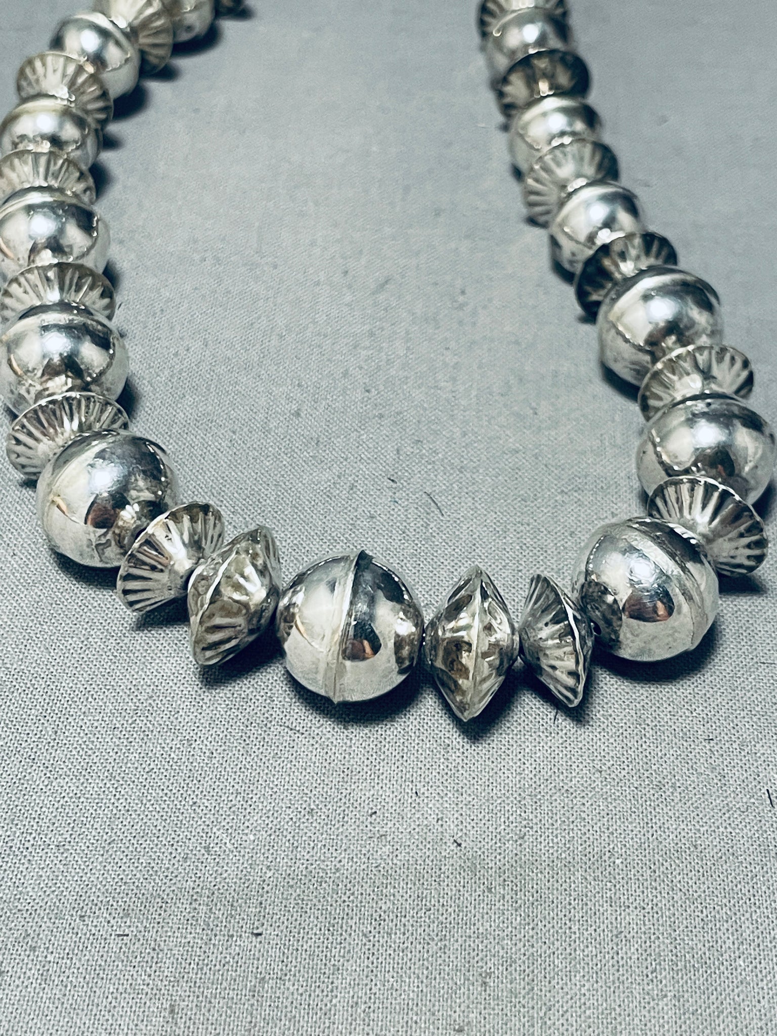 Big Beads! Vintage Native American Navajo Sterling Silver Hand Tooled Necklace Old