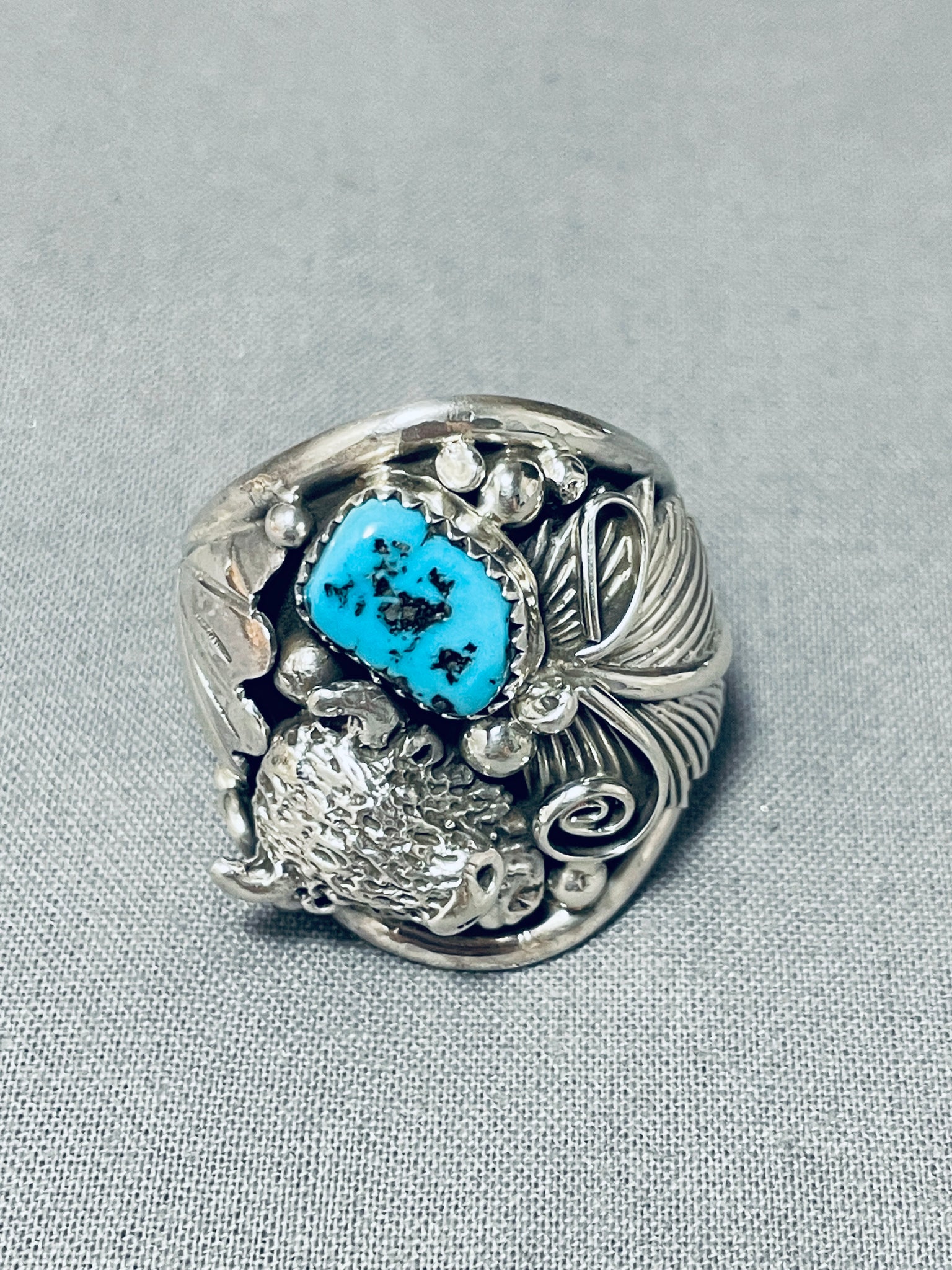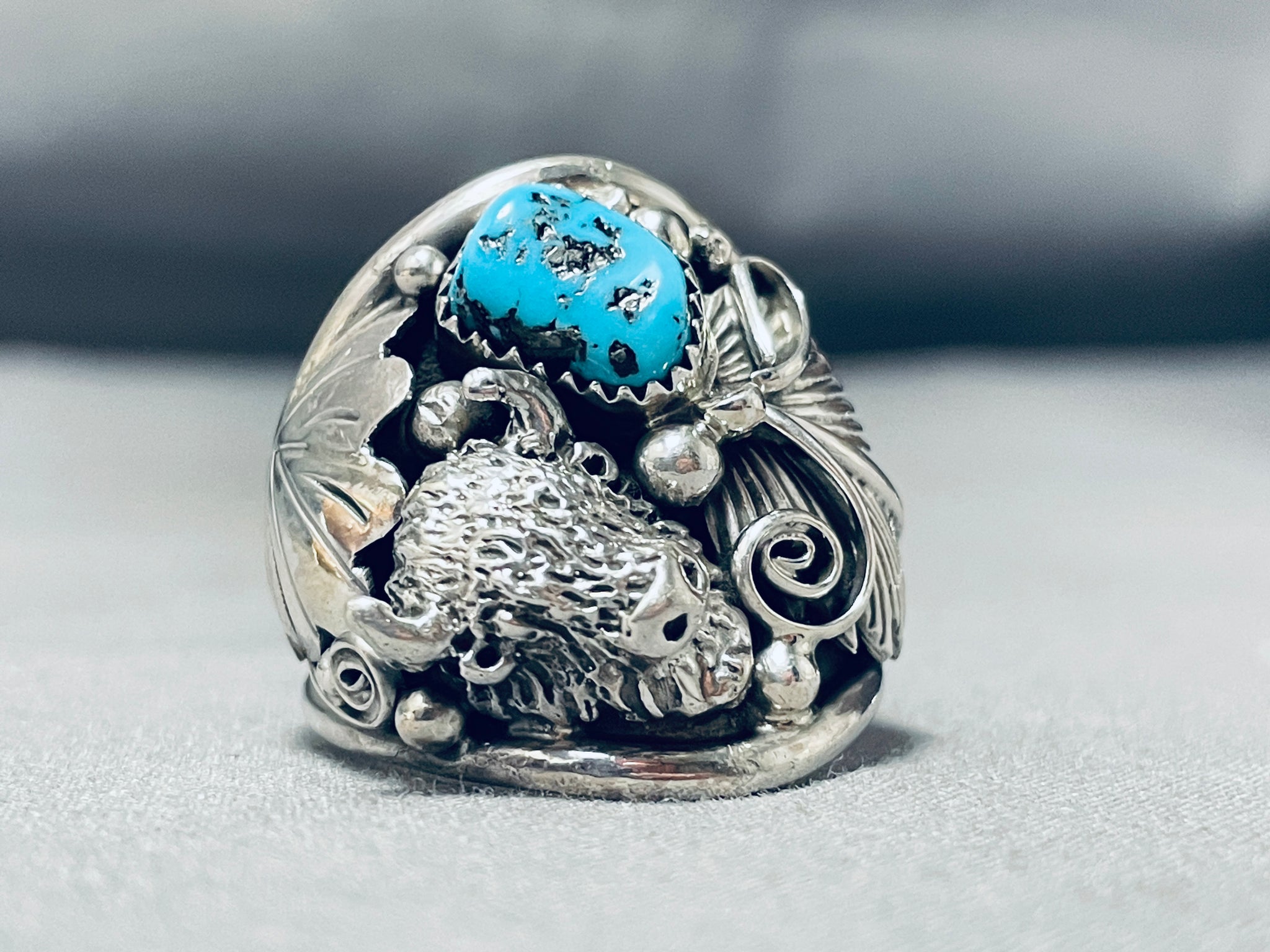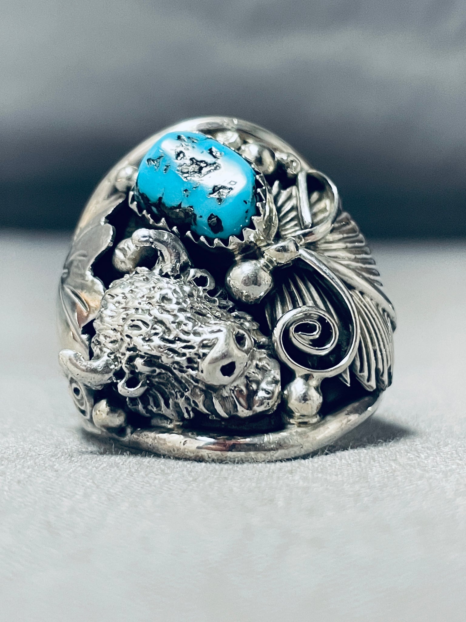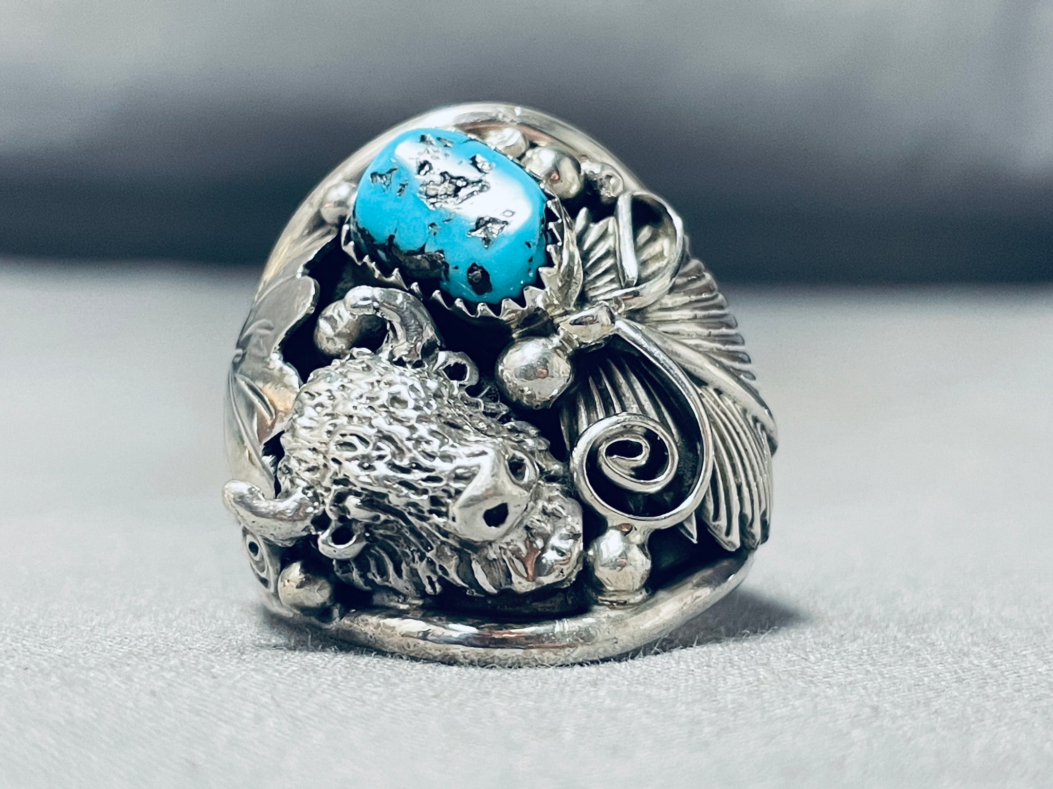 Big Buffalo Mens Native American Navajo Turquoise Sterling Silver Ring