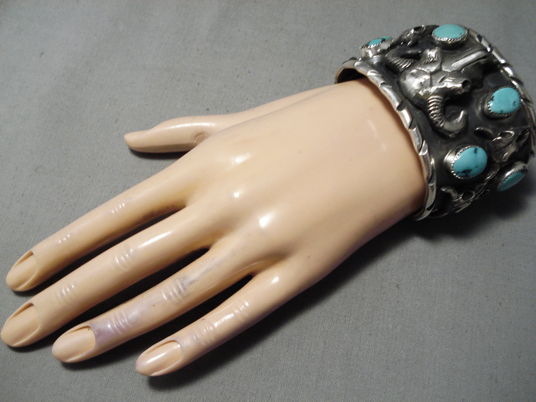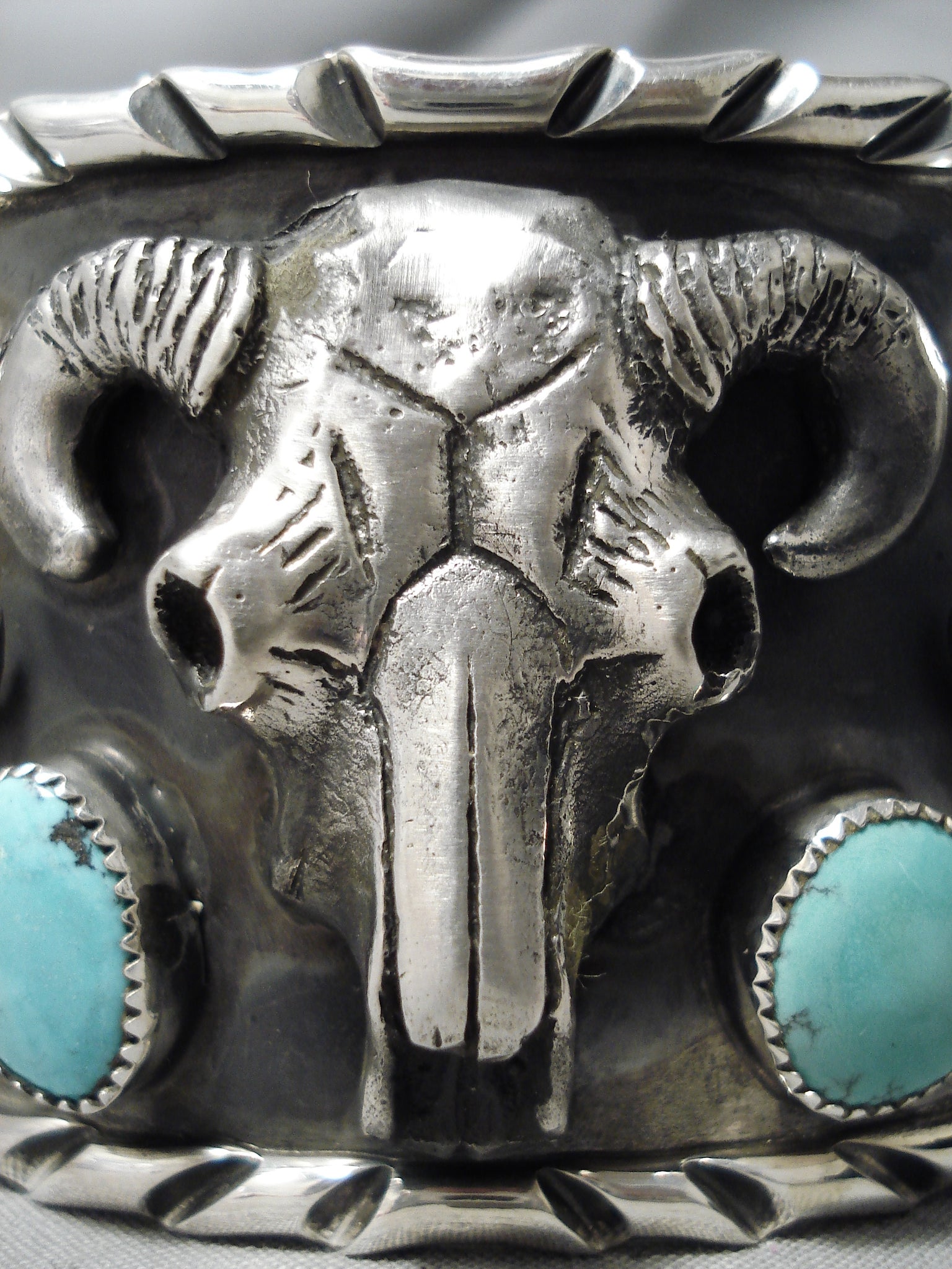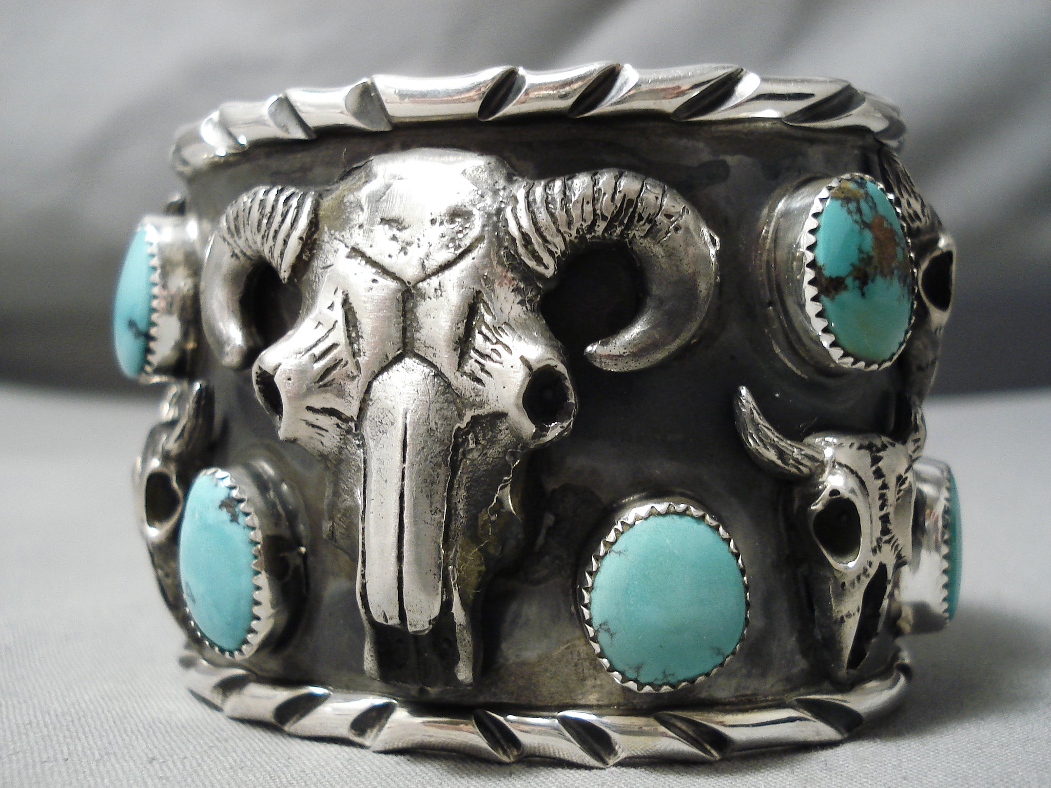 Big Huge 152 Gram Native American Skull Turquoise Sterling Silver Bracelet