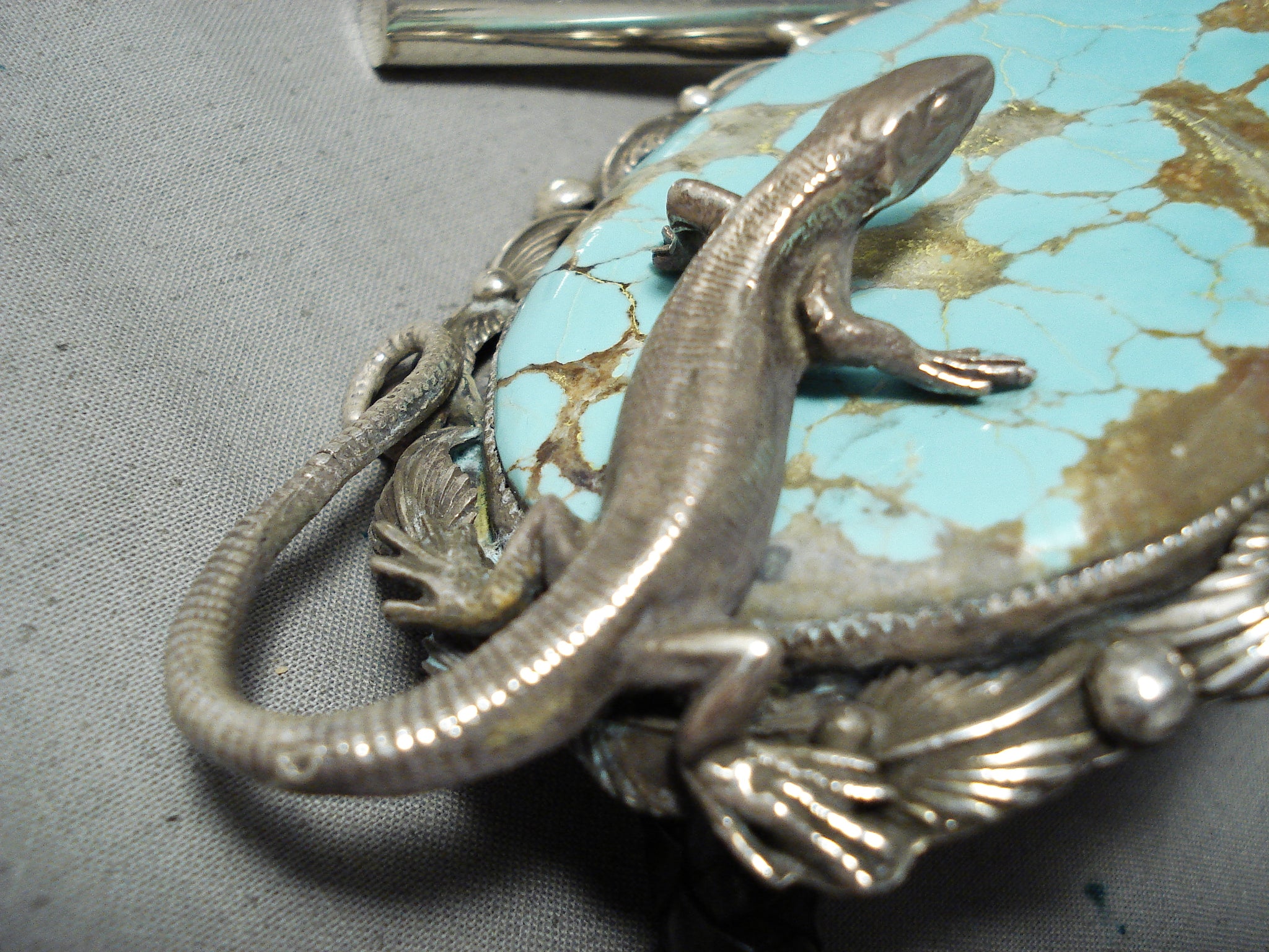 Big Huge Native American Navajo #8 Turquoise Sterling Silver Lizard Bolo Tie