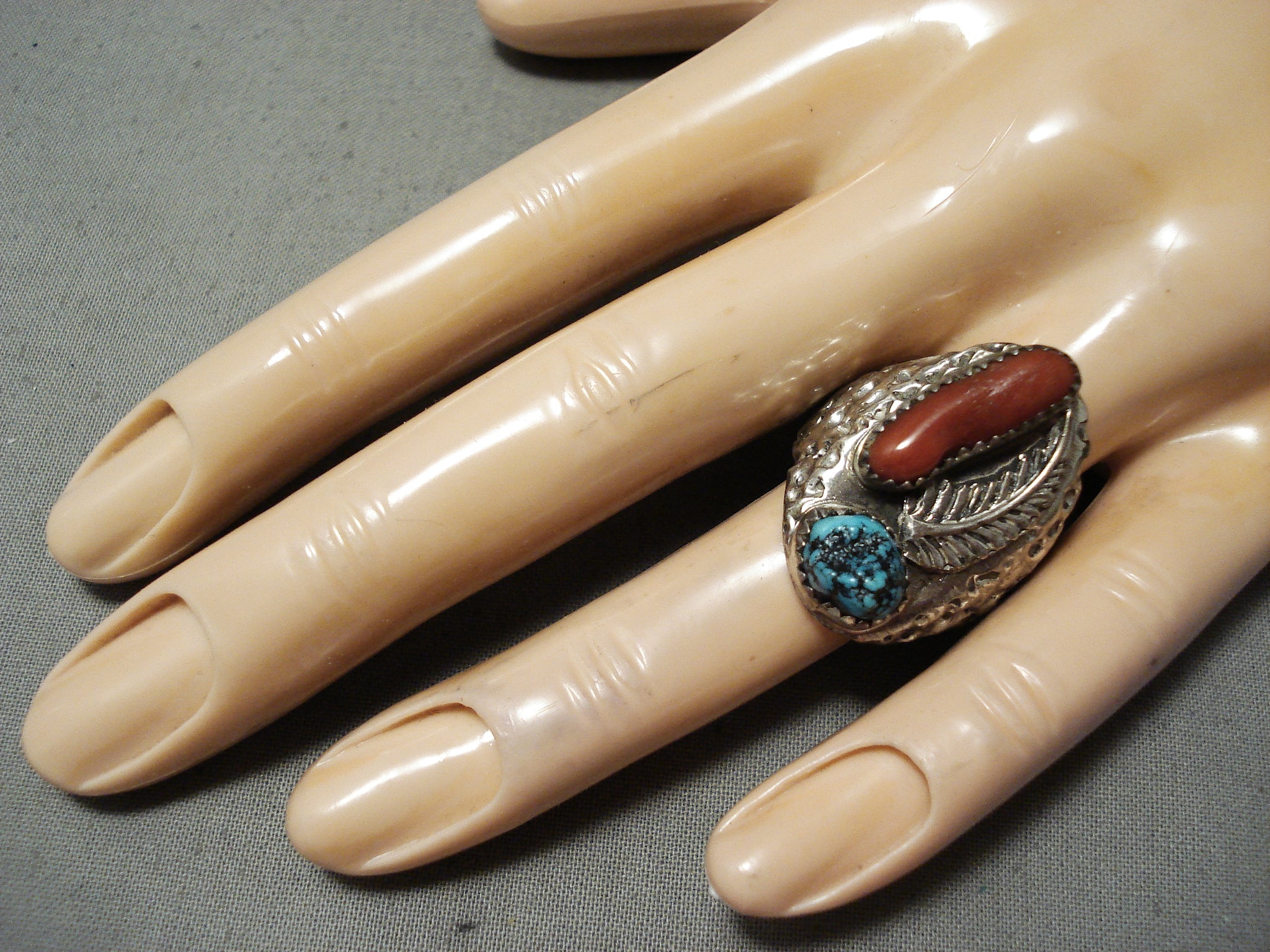 Big Mens Vintage Navajo Turquoise Sterling Silver Ring Native American Old