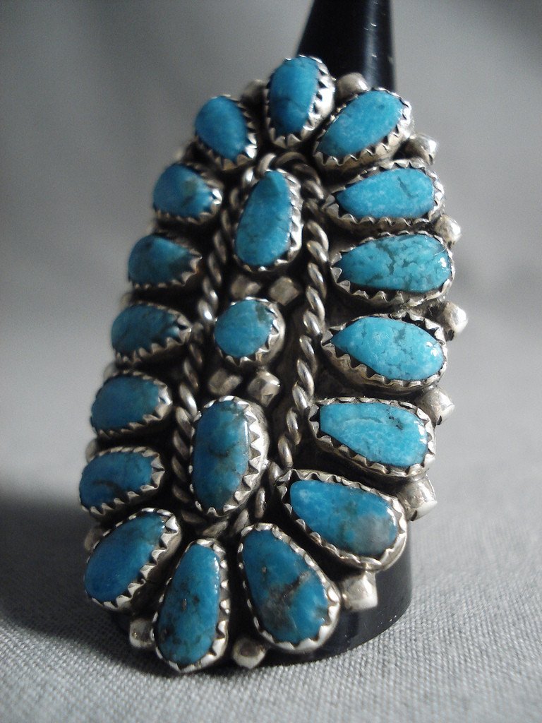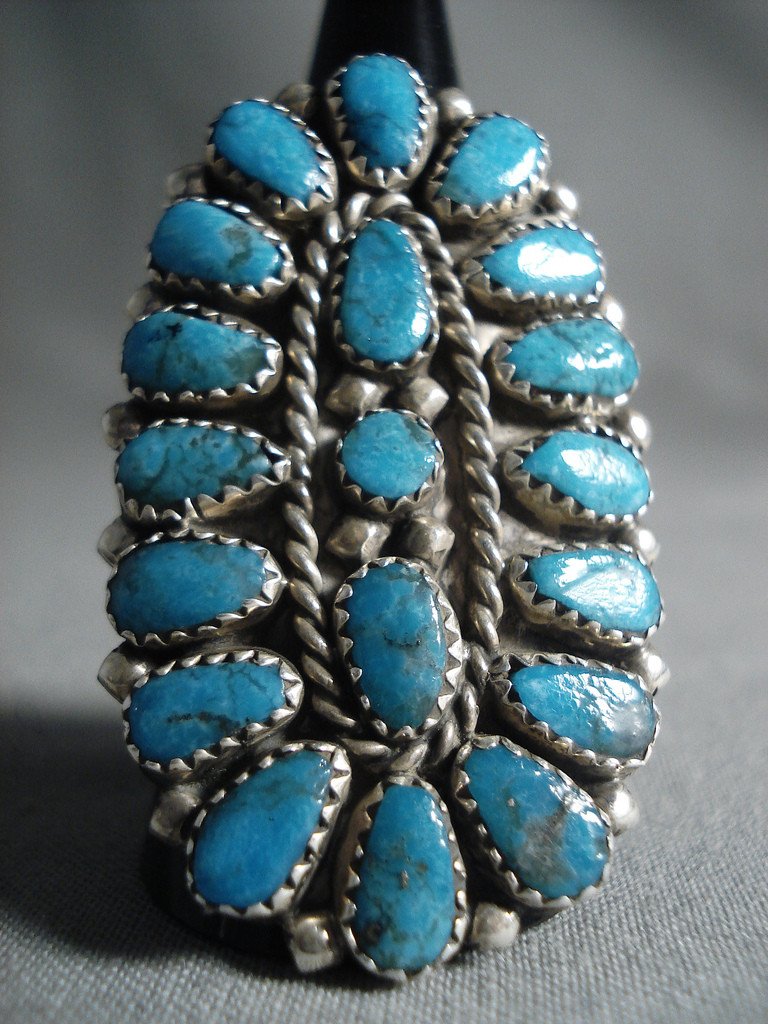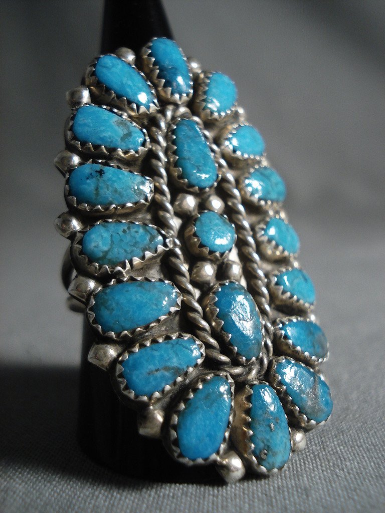 Big Navajo 'Tears Of Joy' Turquoise Native American Jewelry Silver Ring