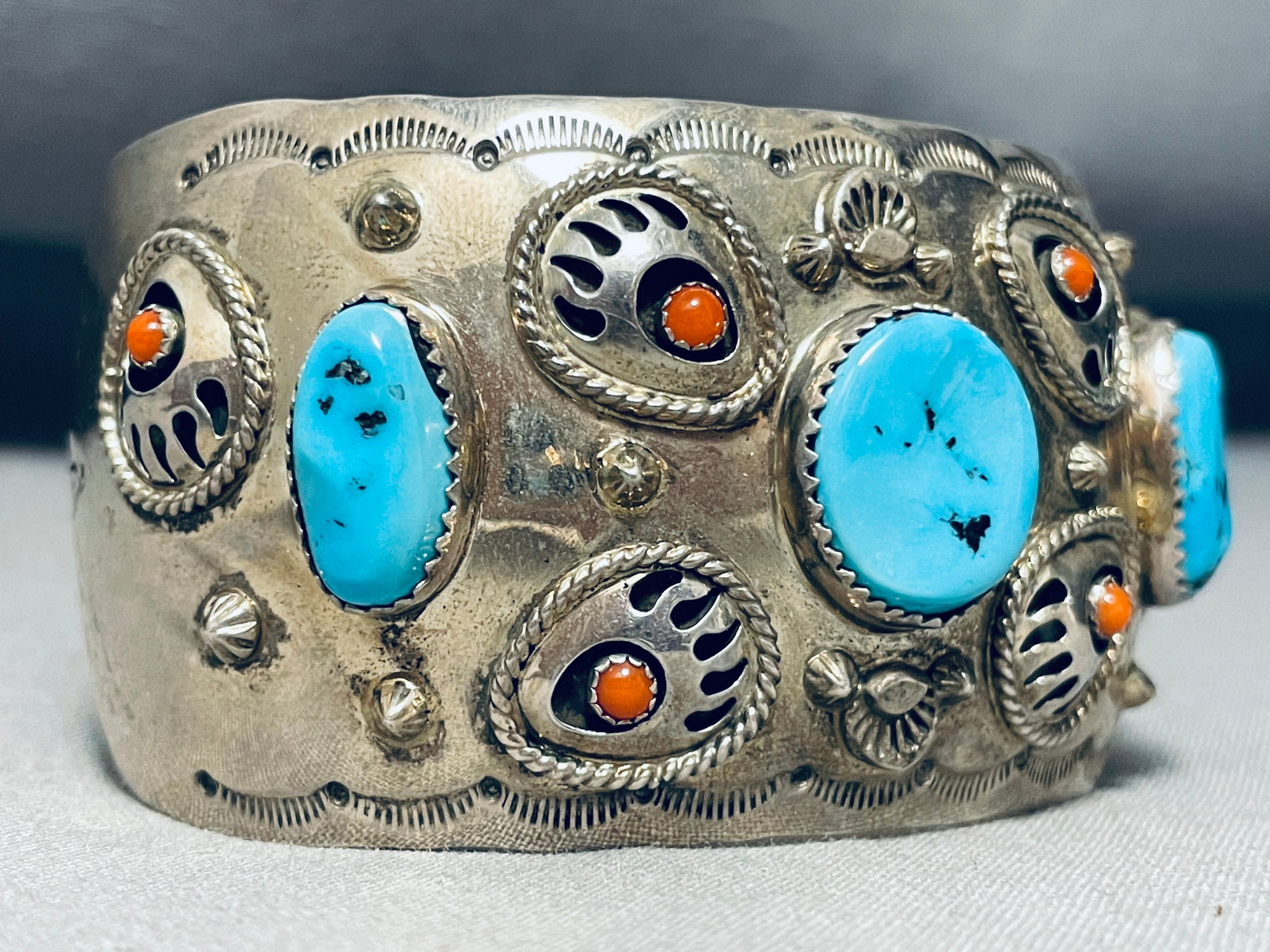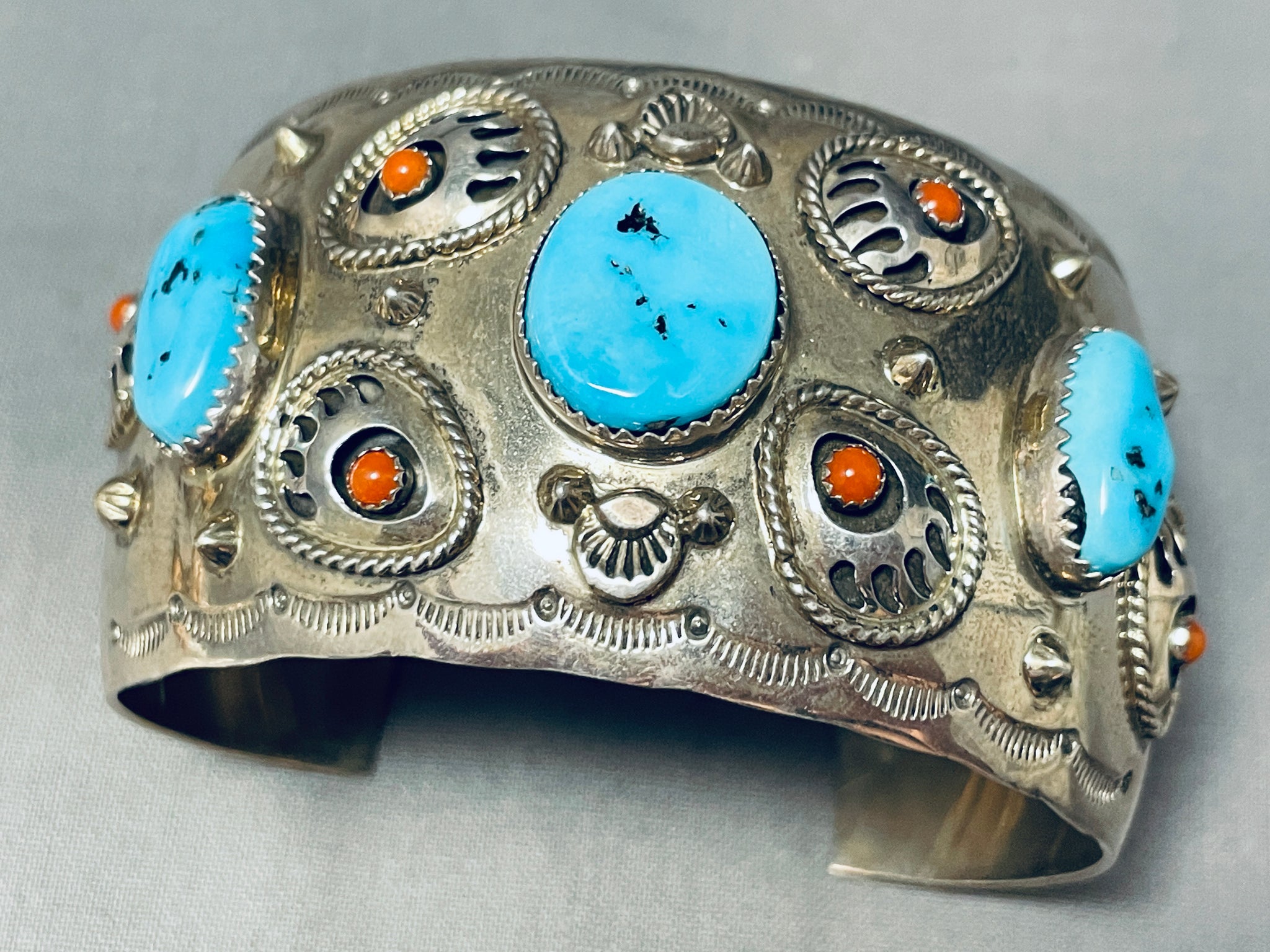 Bigbear Footprints Vintage Native American Navajo Turquoise Sterling Silver Bracelet