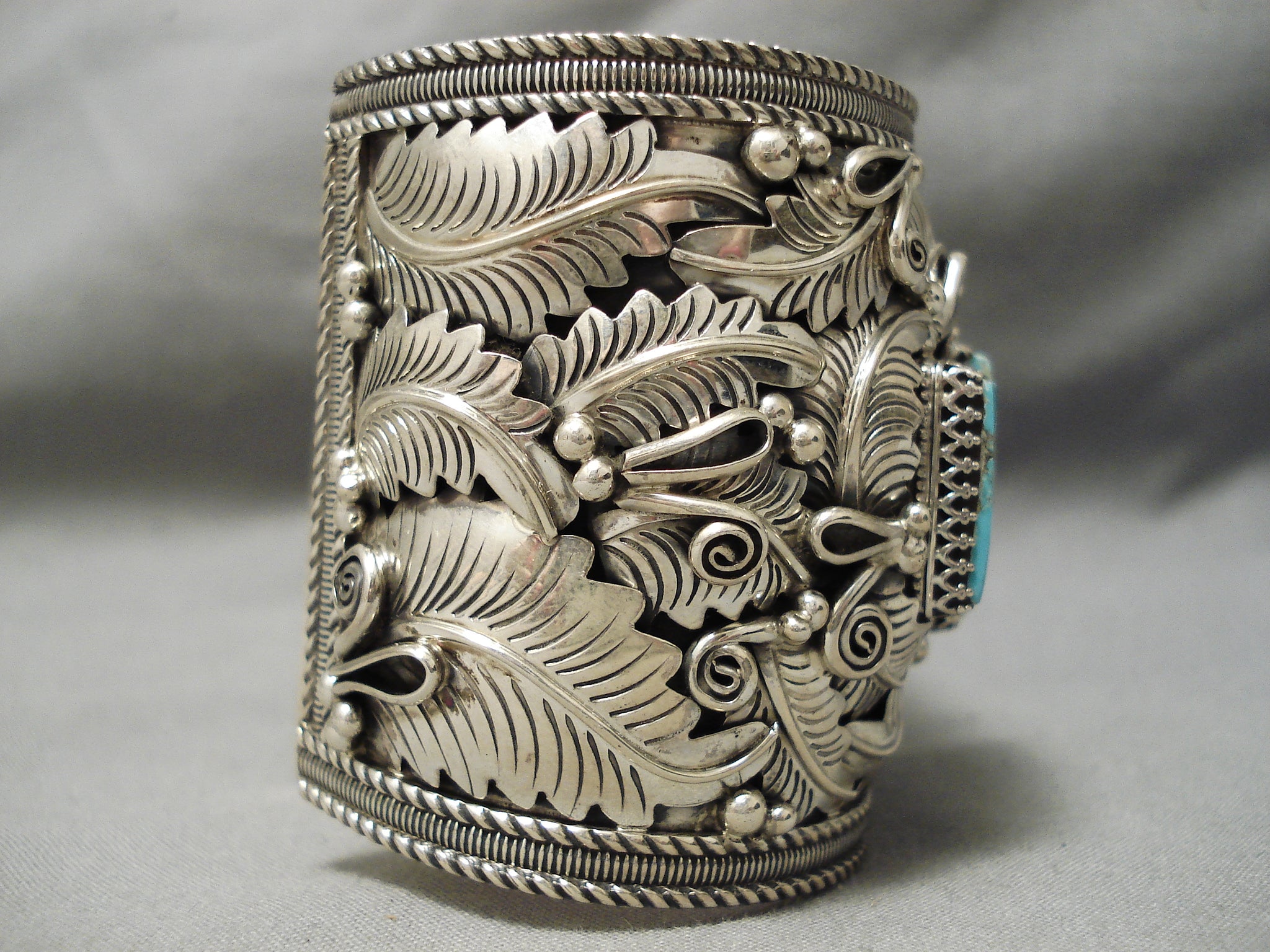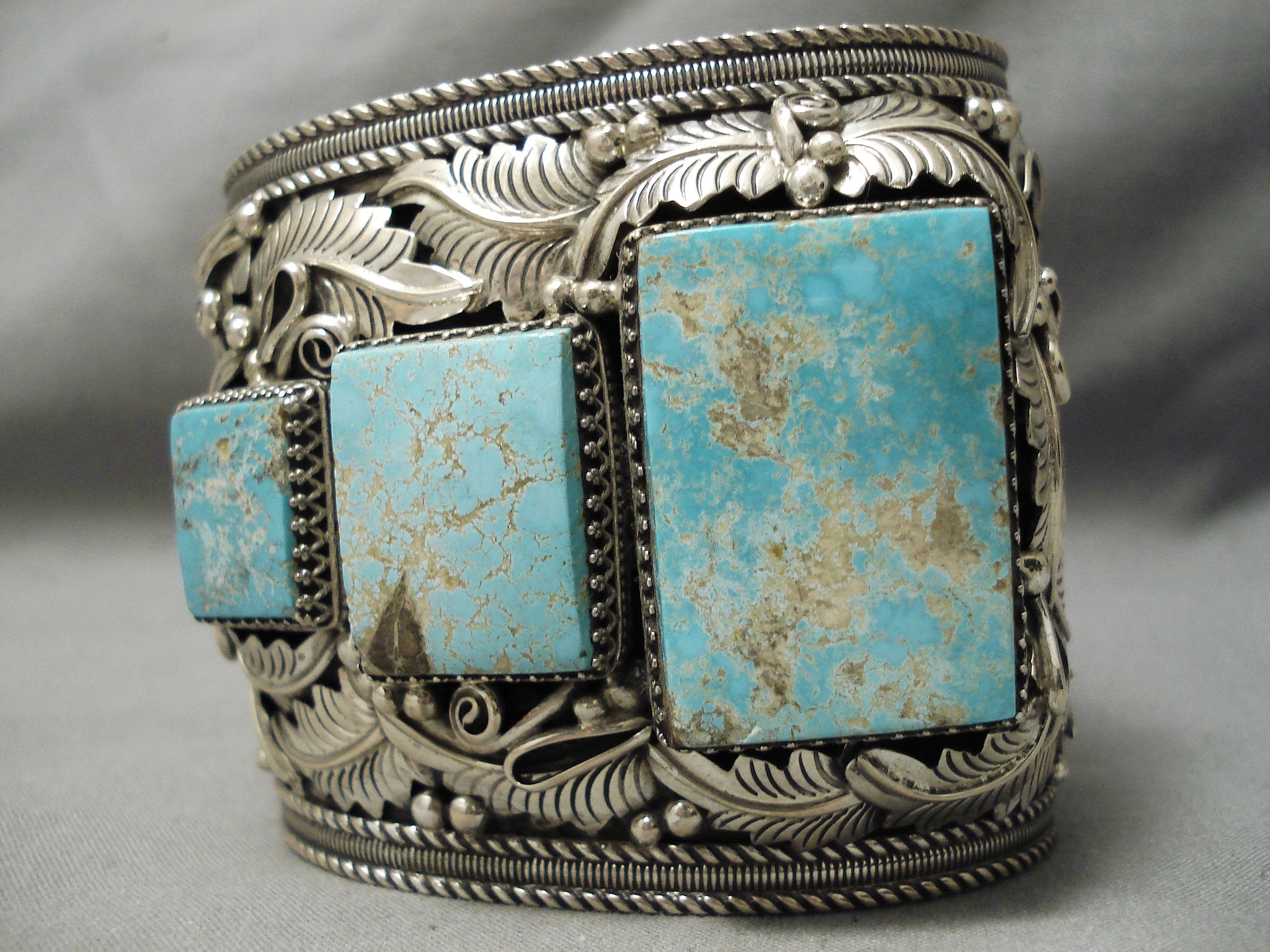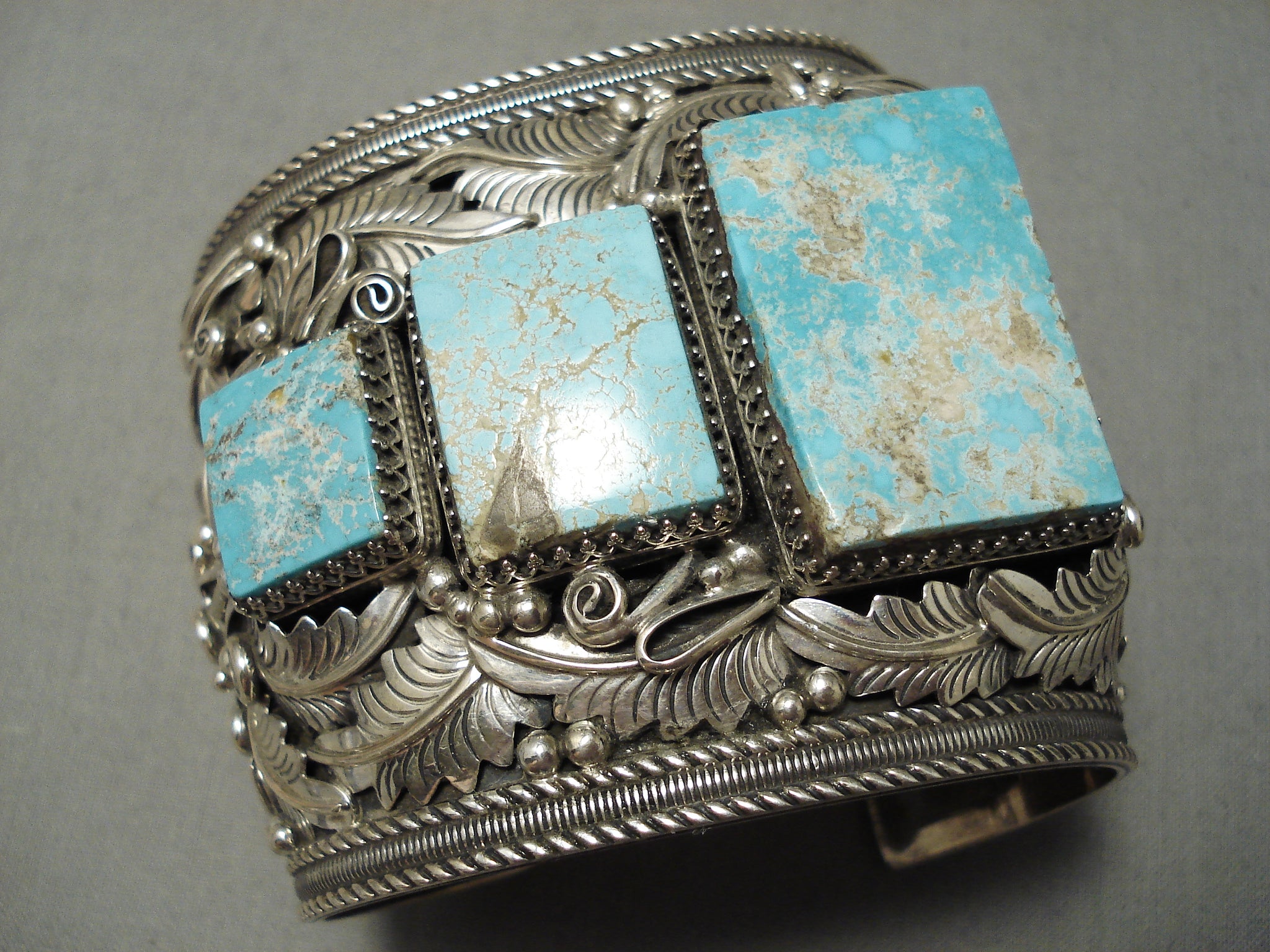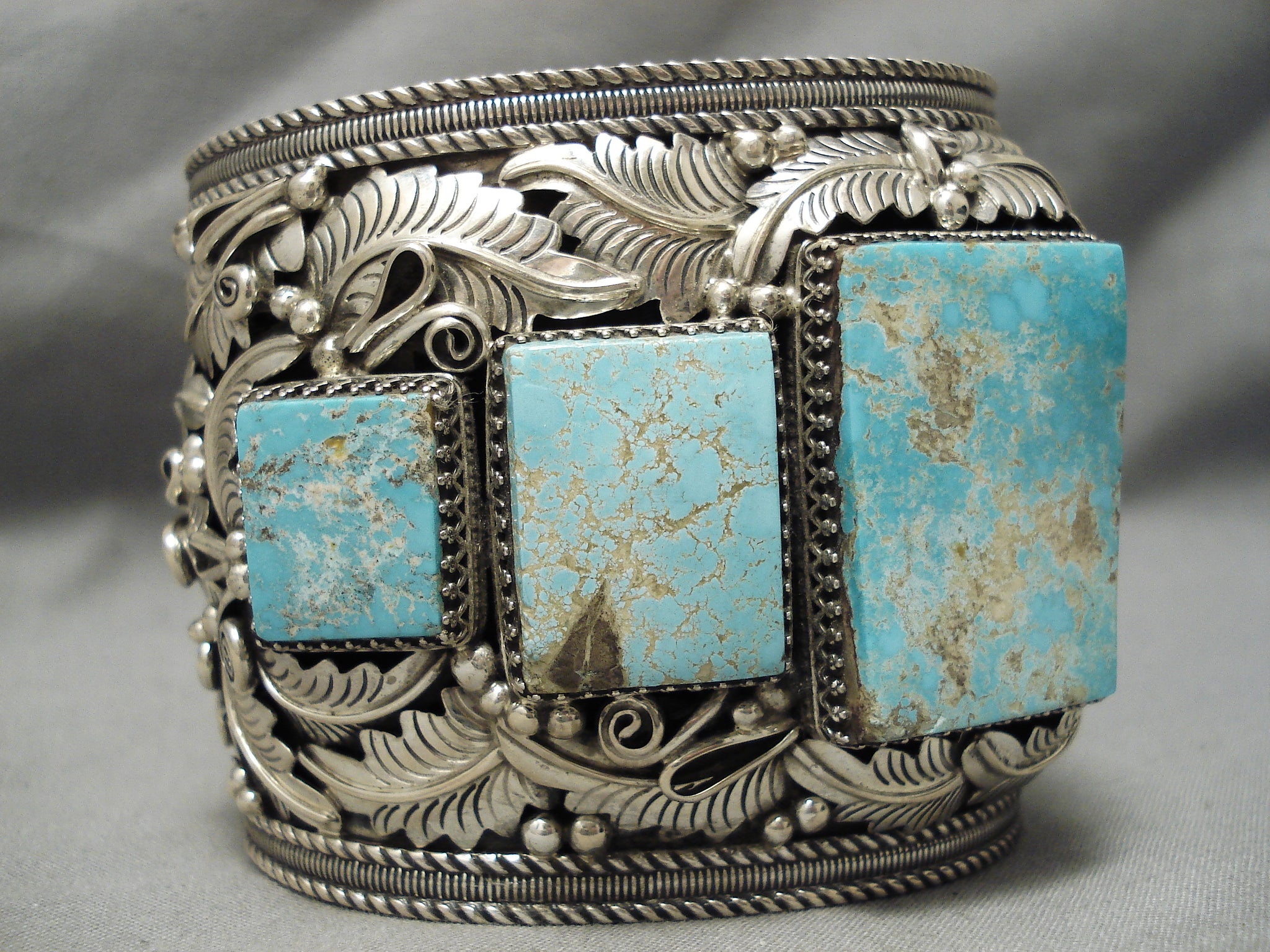 Biggest Best Vintage Native American Navajo #8 Turquoise Sterling Silver Bracelet