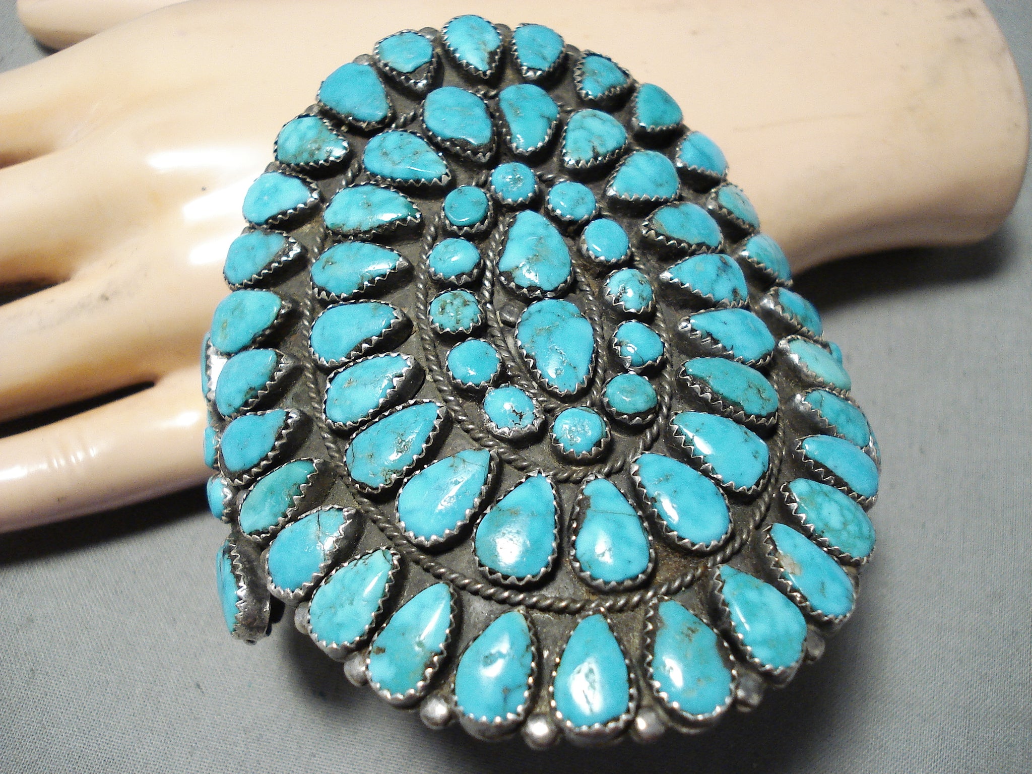 Biggest Best Vintage Native American Navajo Carico Lake Turquoise Sterling Silver Bracelet