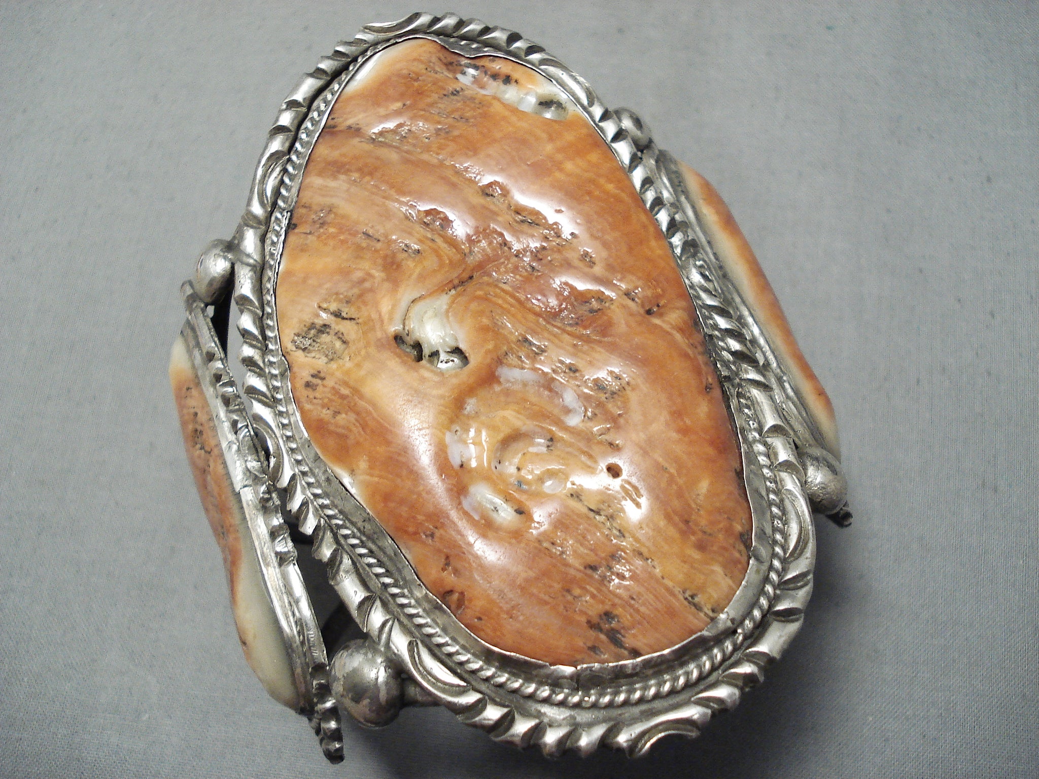 Biggest Best Vintage Native American Navajo Spiny Oyster Sterling Silver Bracelet Old