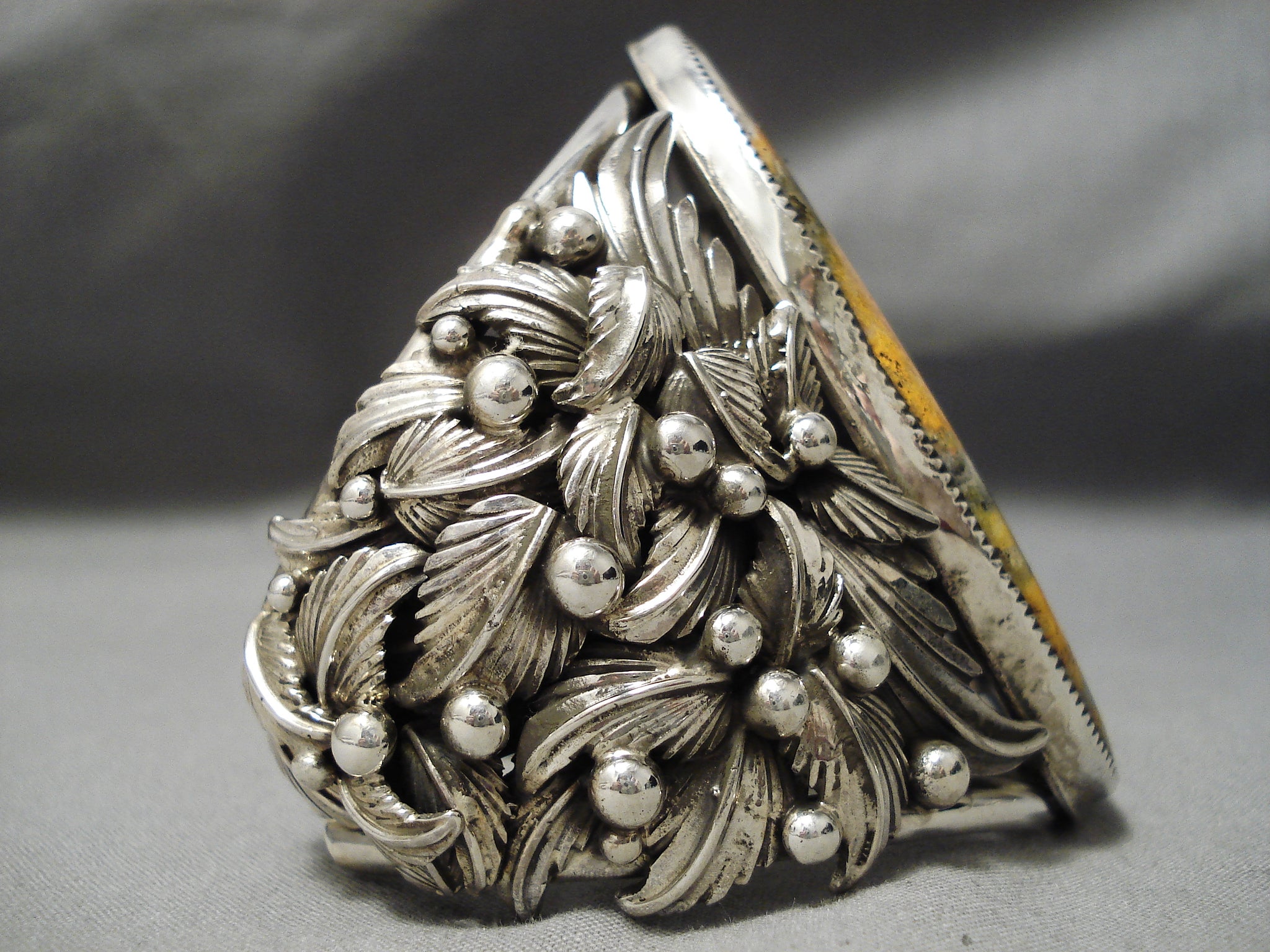 Biggest Best Yellowstone Native American Navajo Sterling Silver Leaves Bracelet