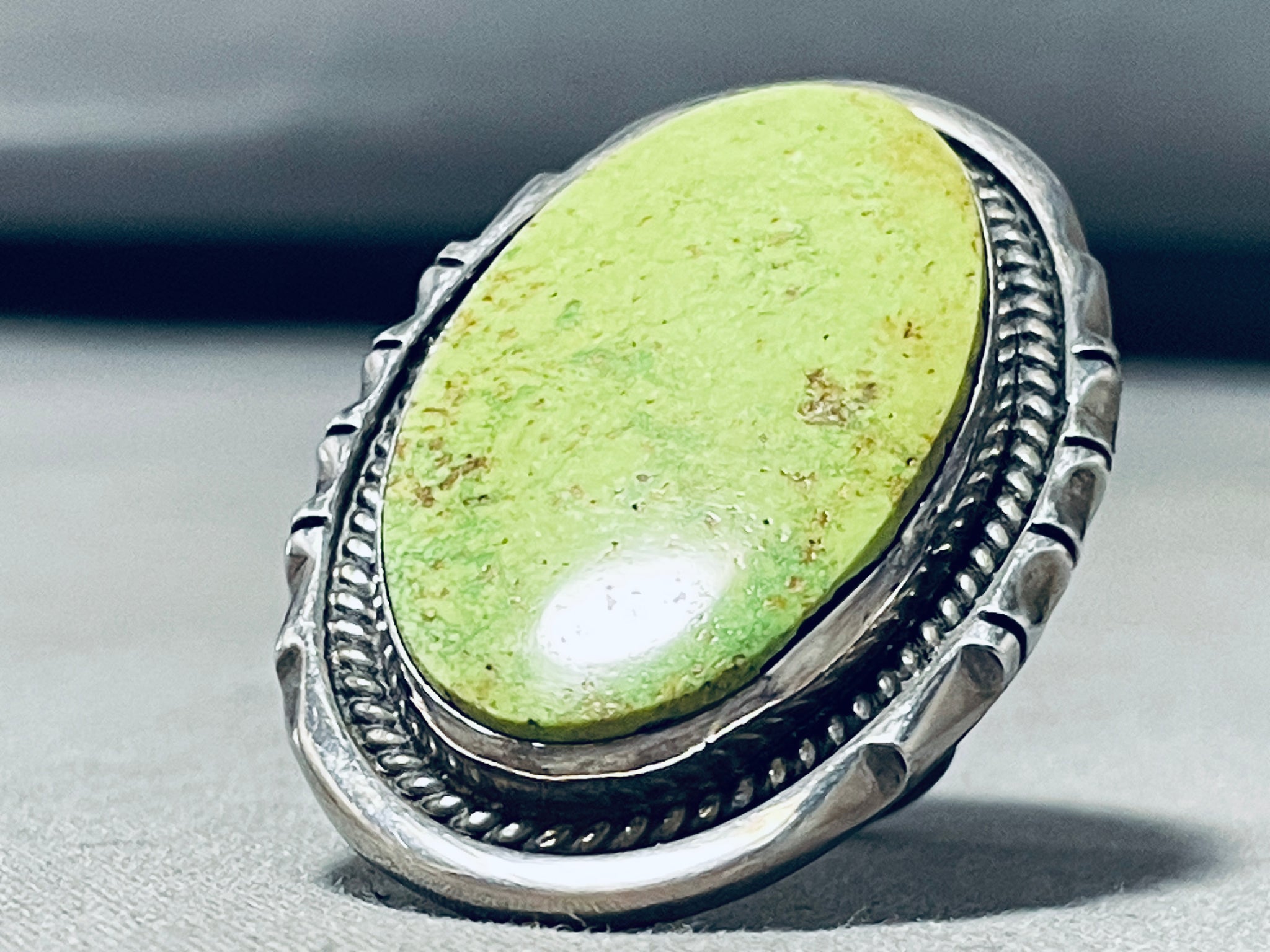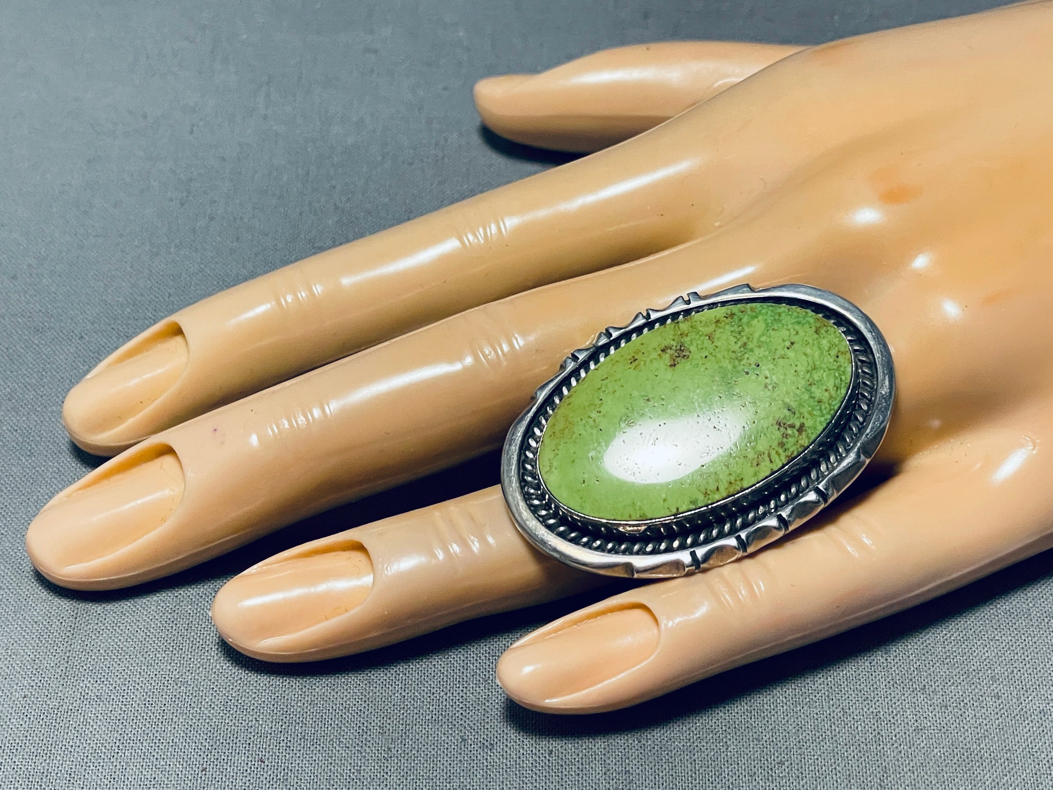 Bill Mex Colossal Vintage Native American Navajo Signed Gaspeite Sterling Silver Ring
