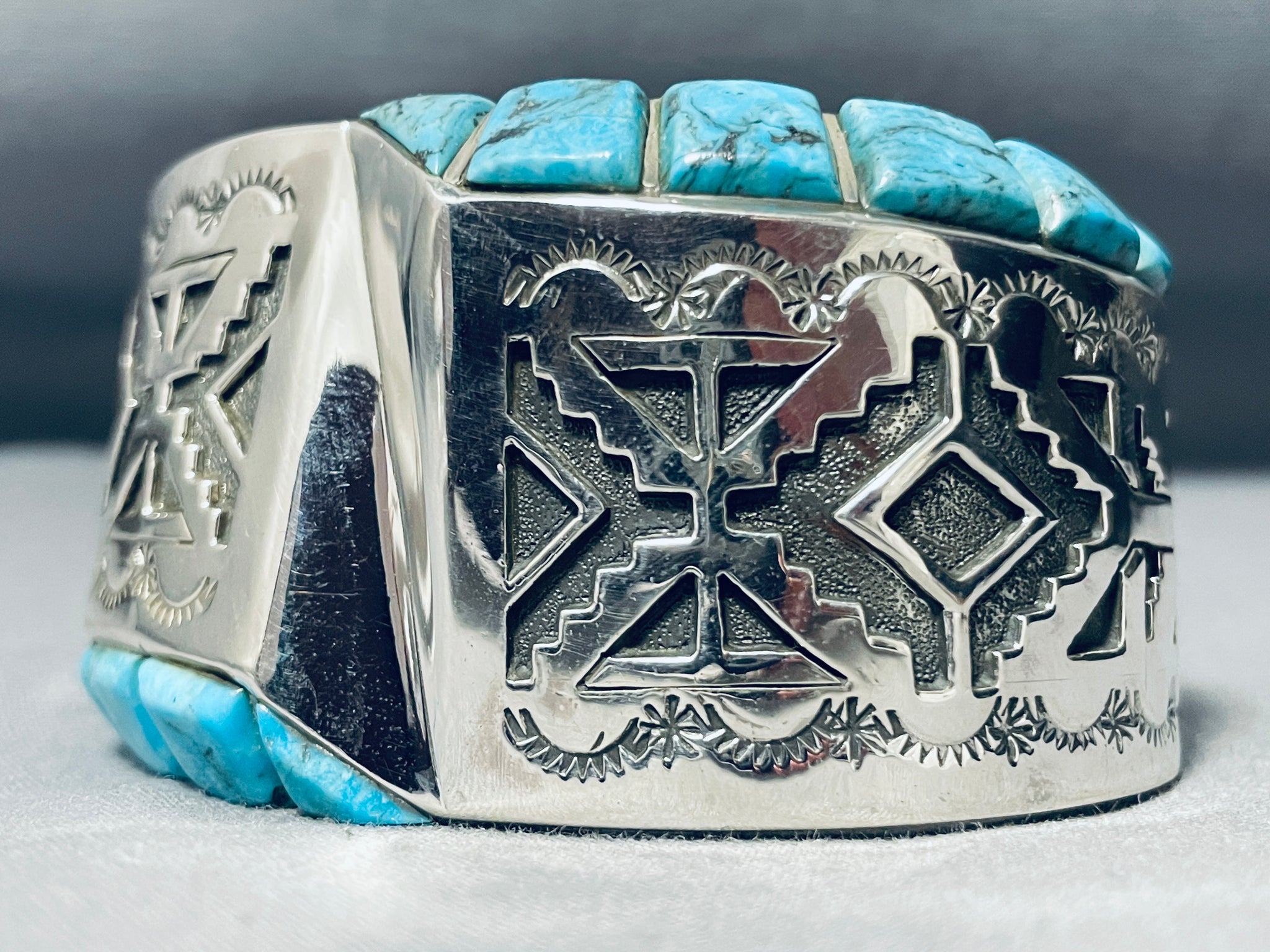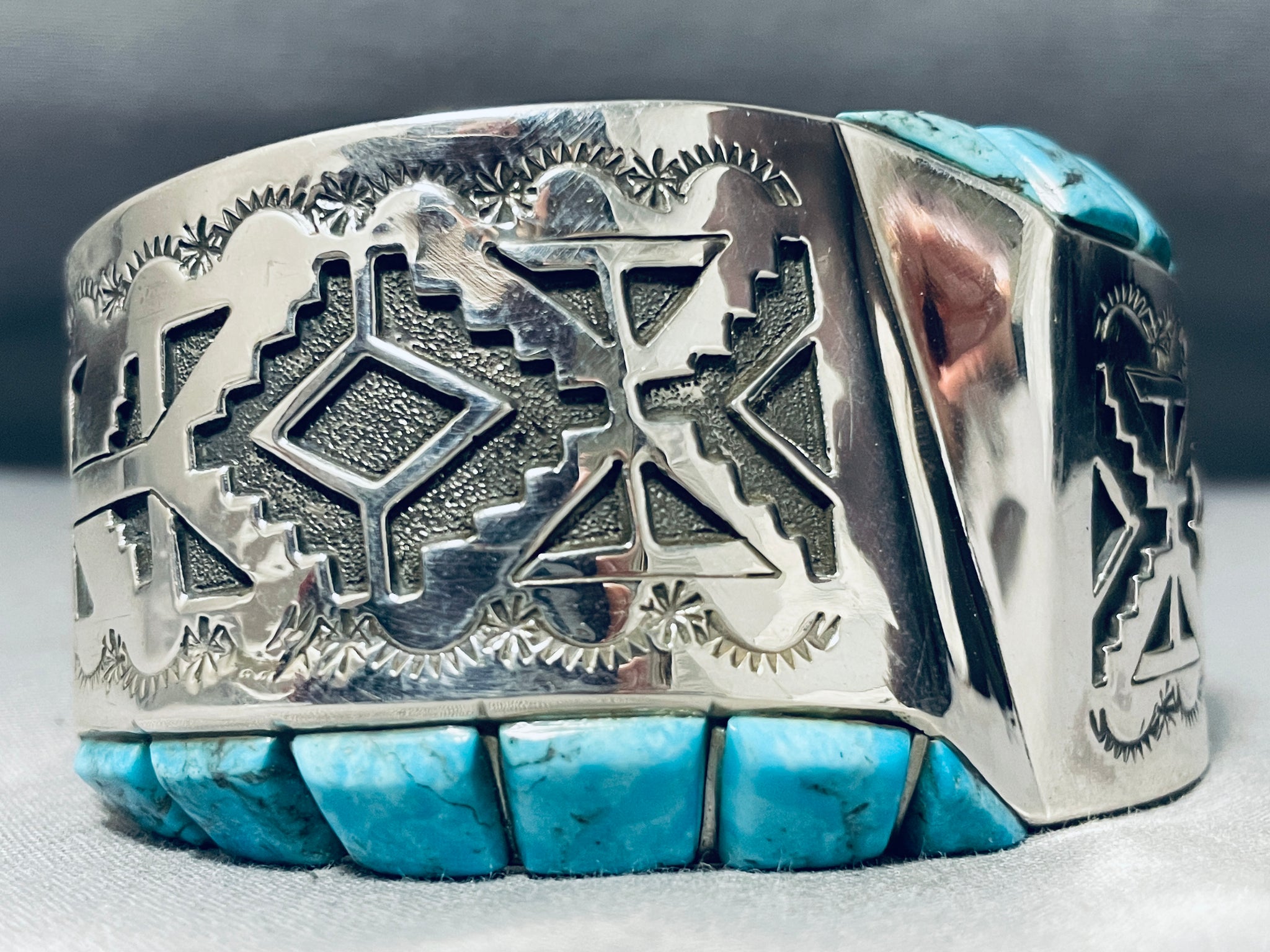 Birdseye Spiderweb Turquoise Native American Navajo Side Inlay Sterling Silver Bracelet