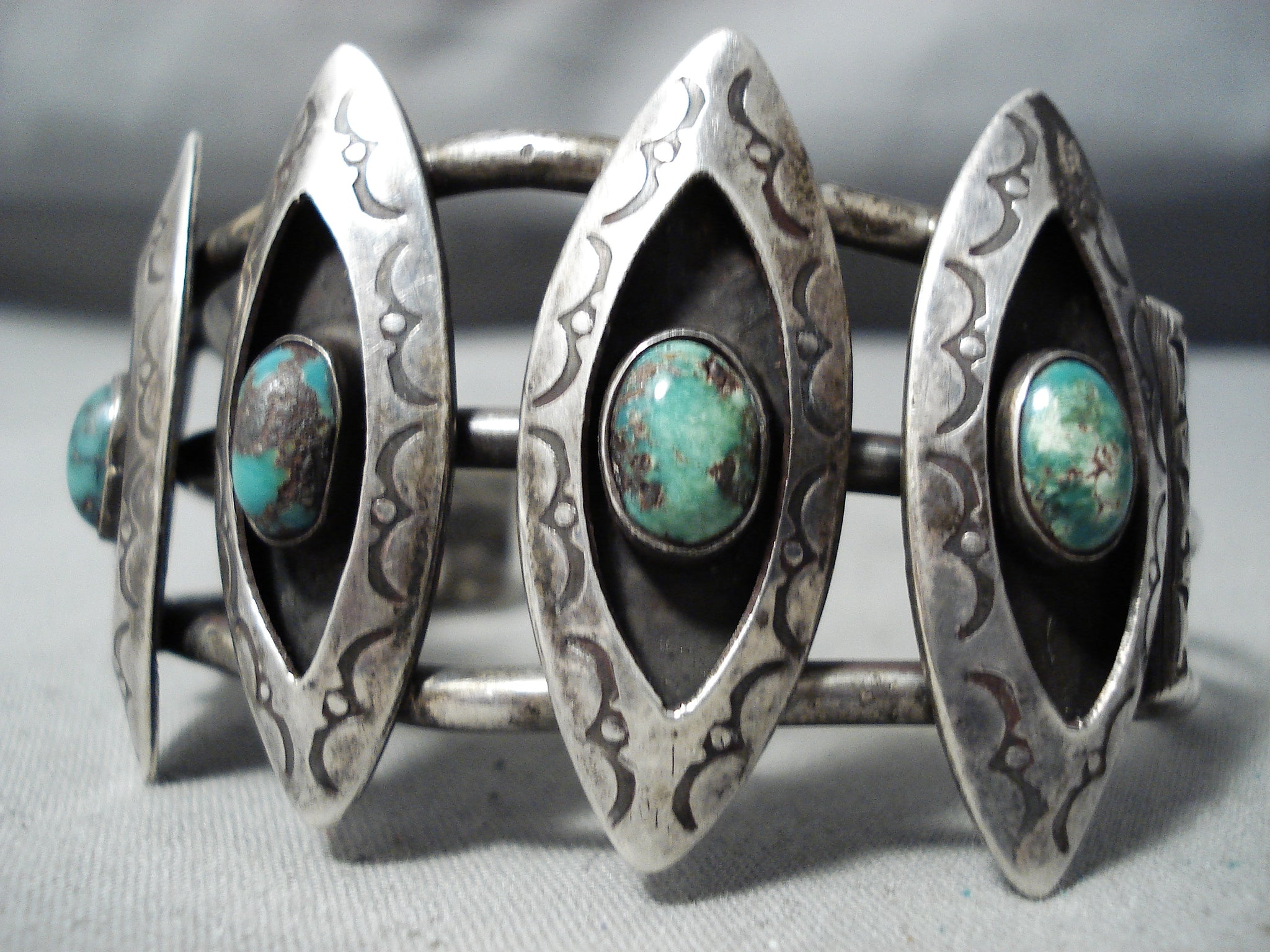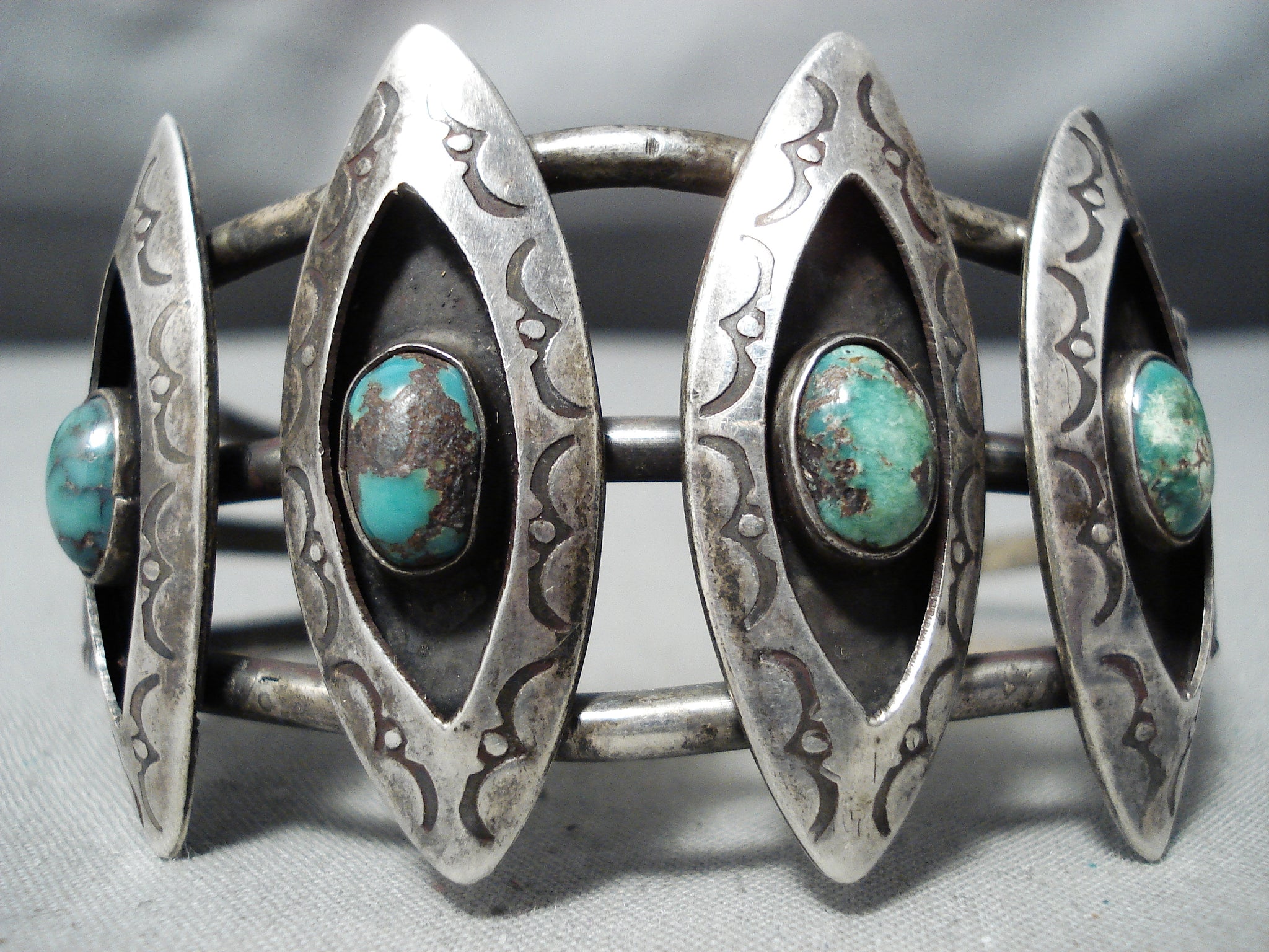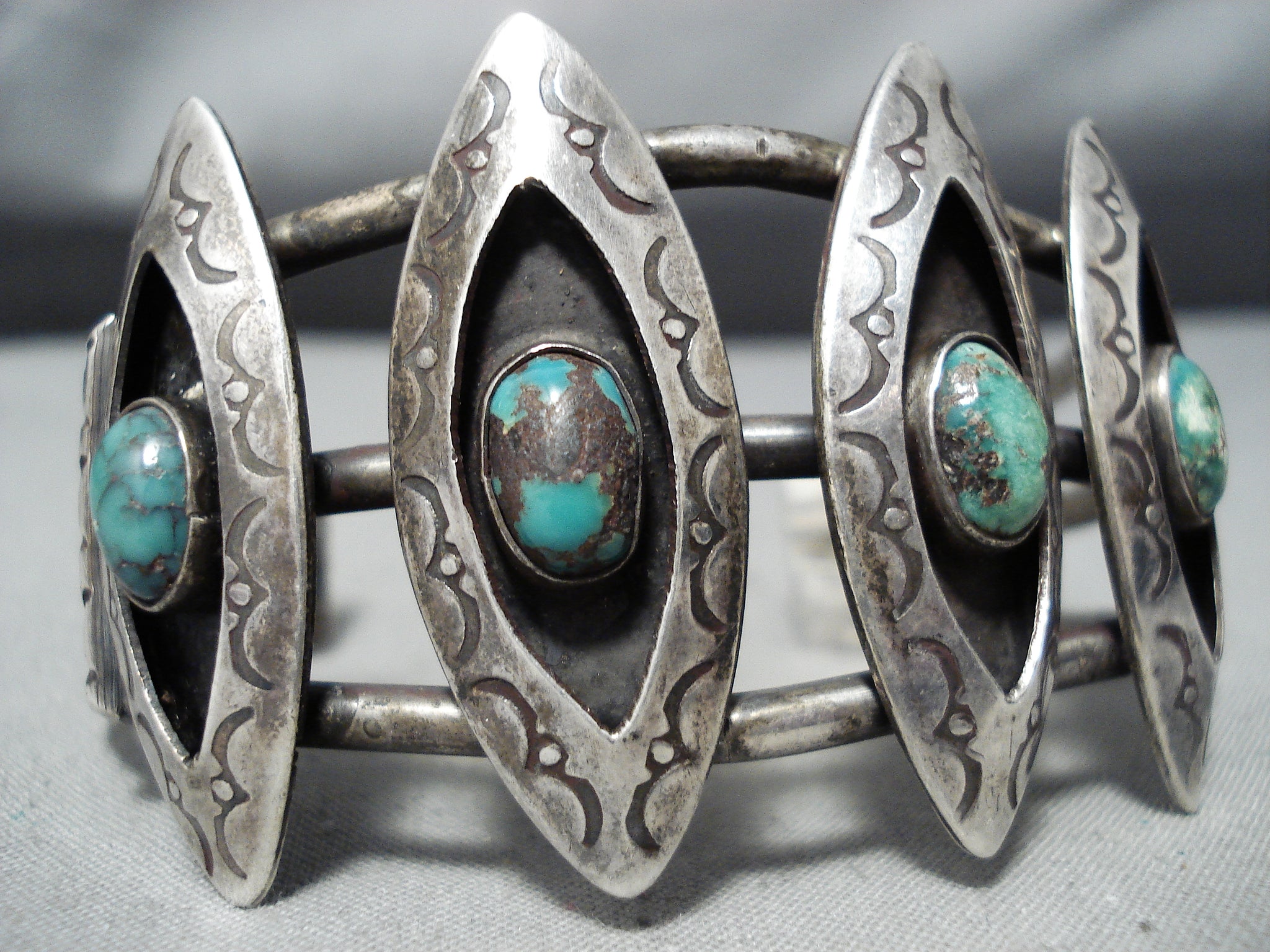 Bisbee Turquoise Vintage Native American Navajo Sterling Silver Bracelet Old