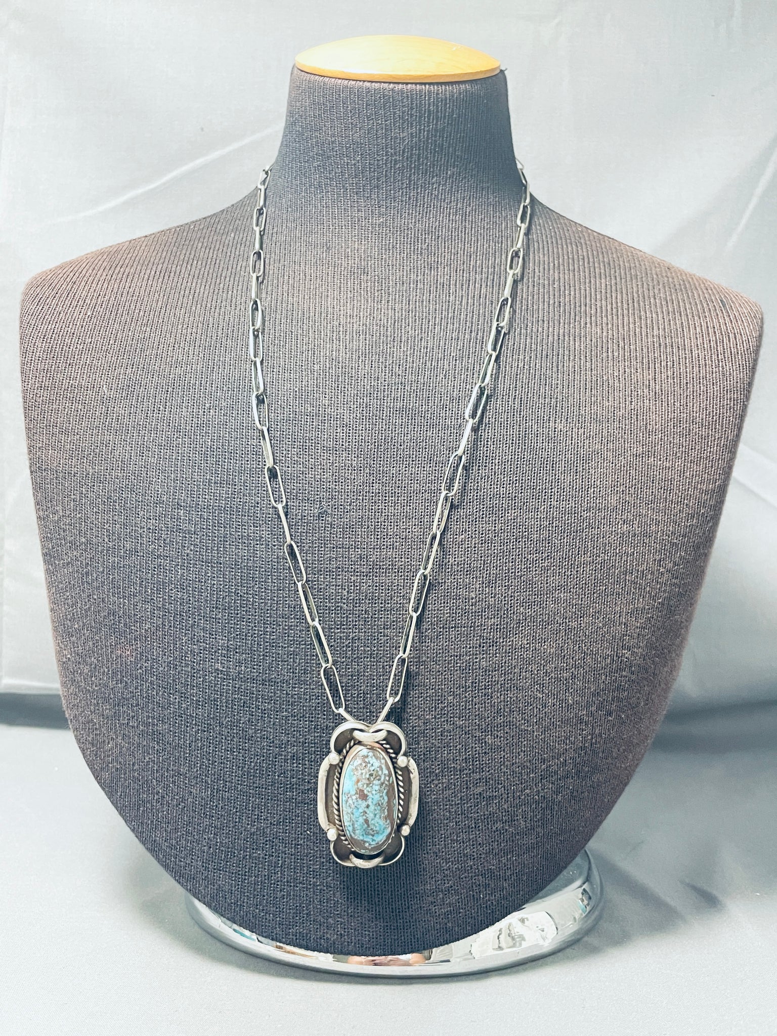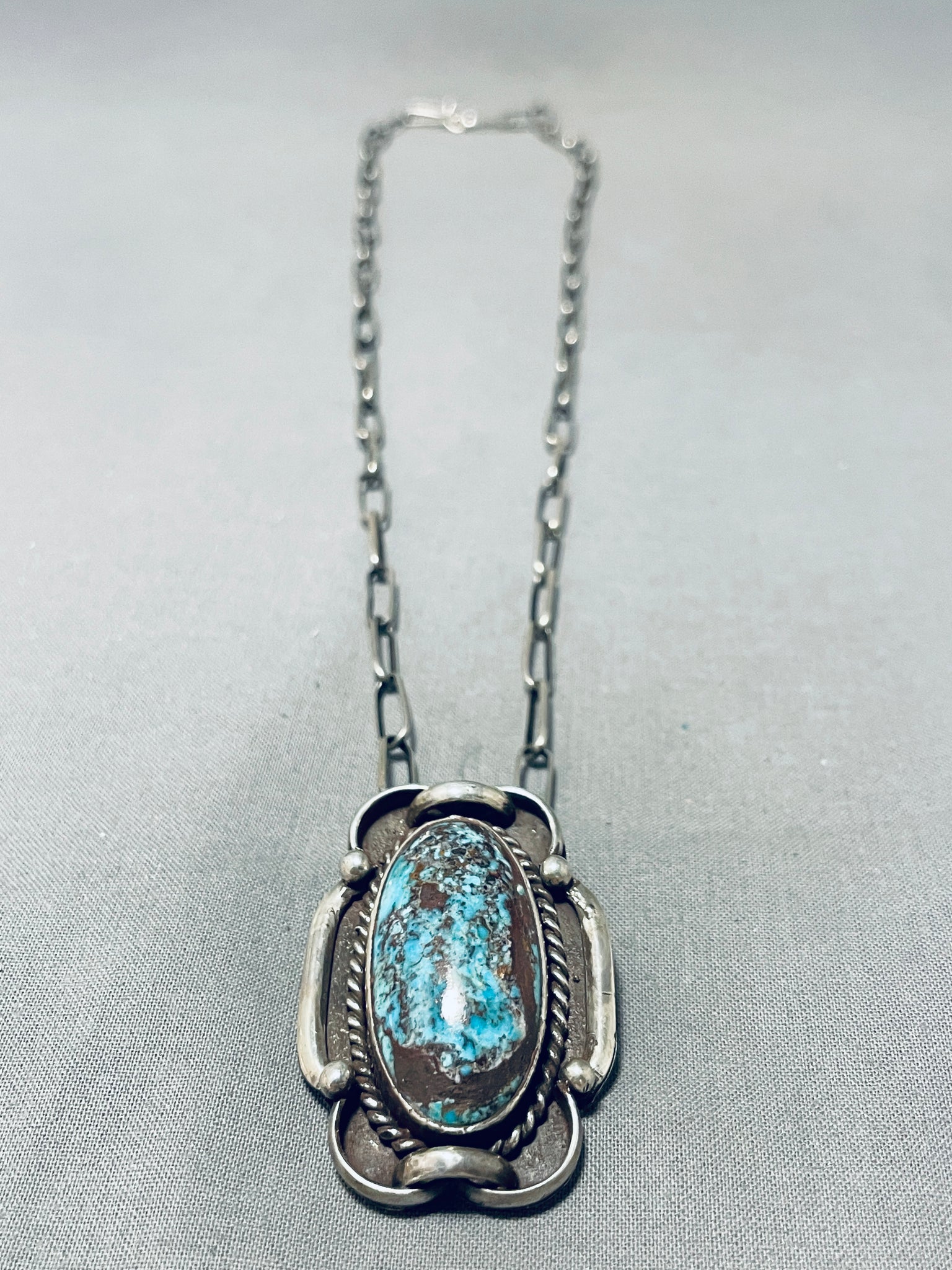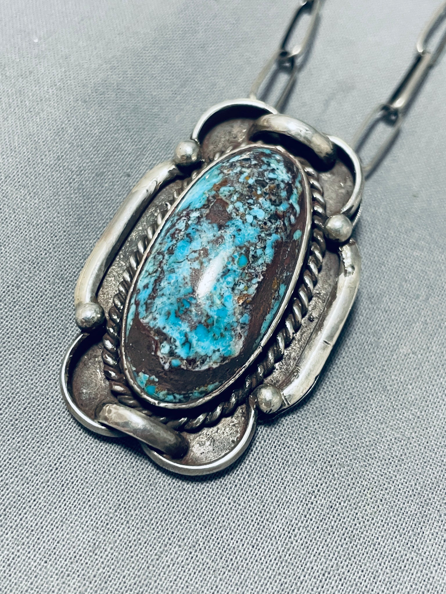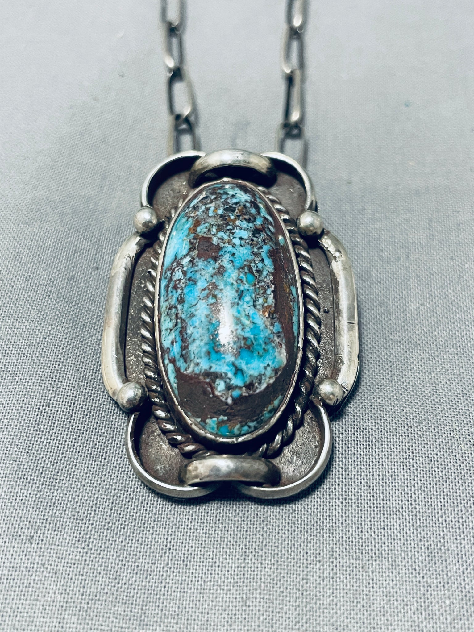 Bisbee Turquoise Vintage Native American Navajo Sterling Silver Necklace