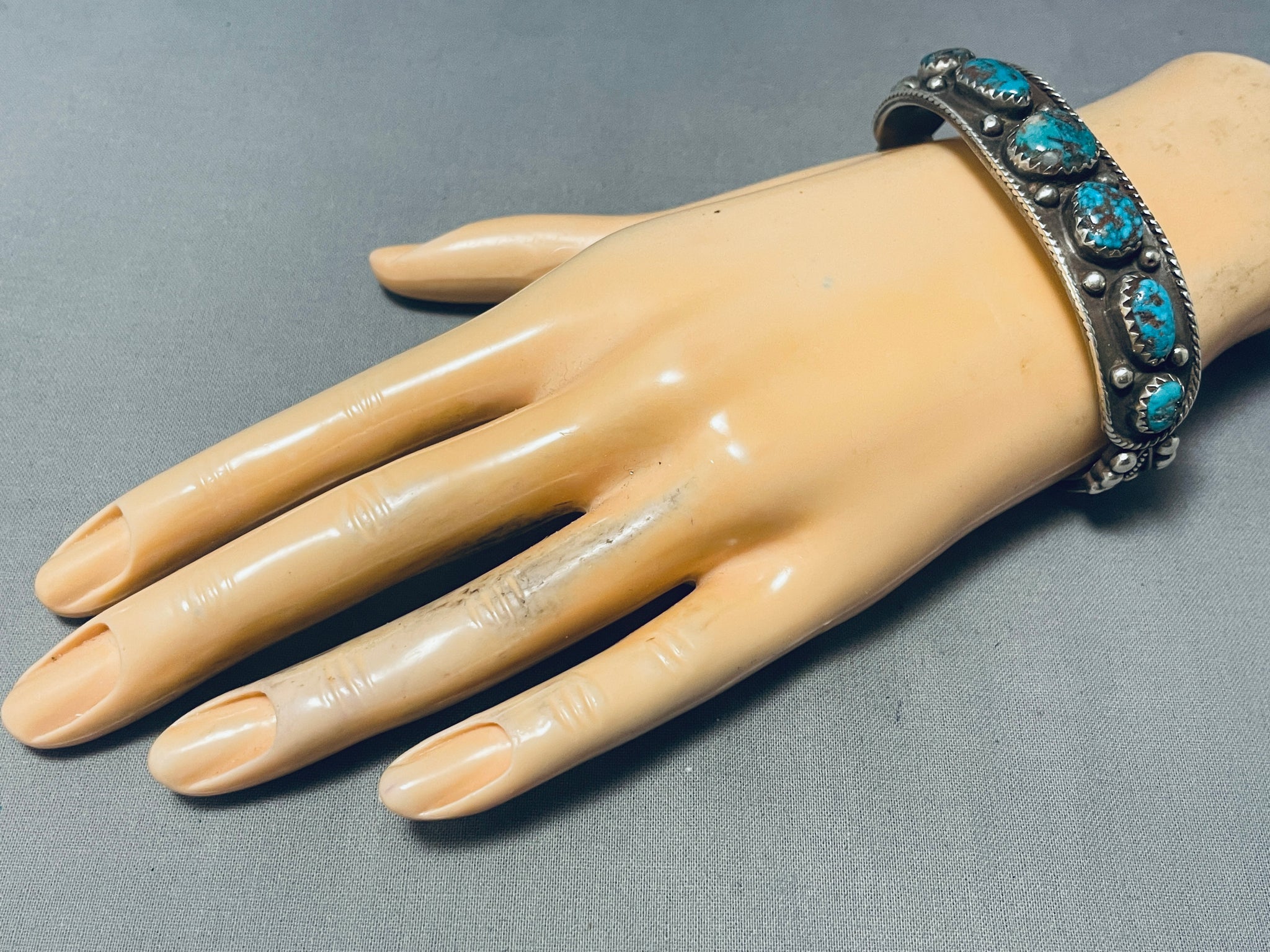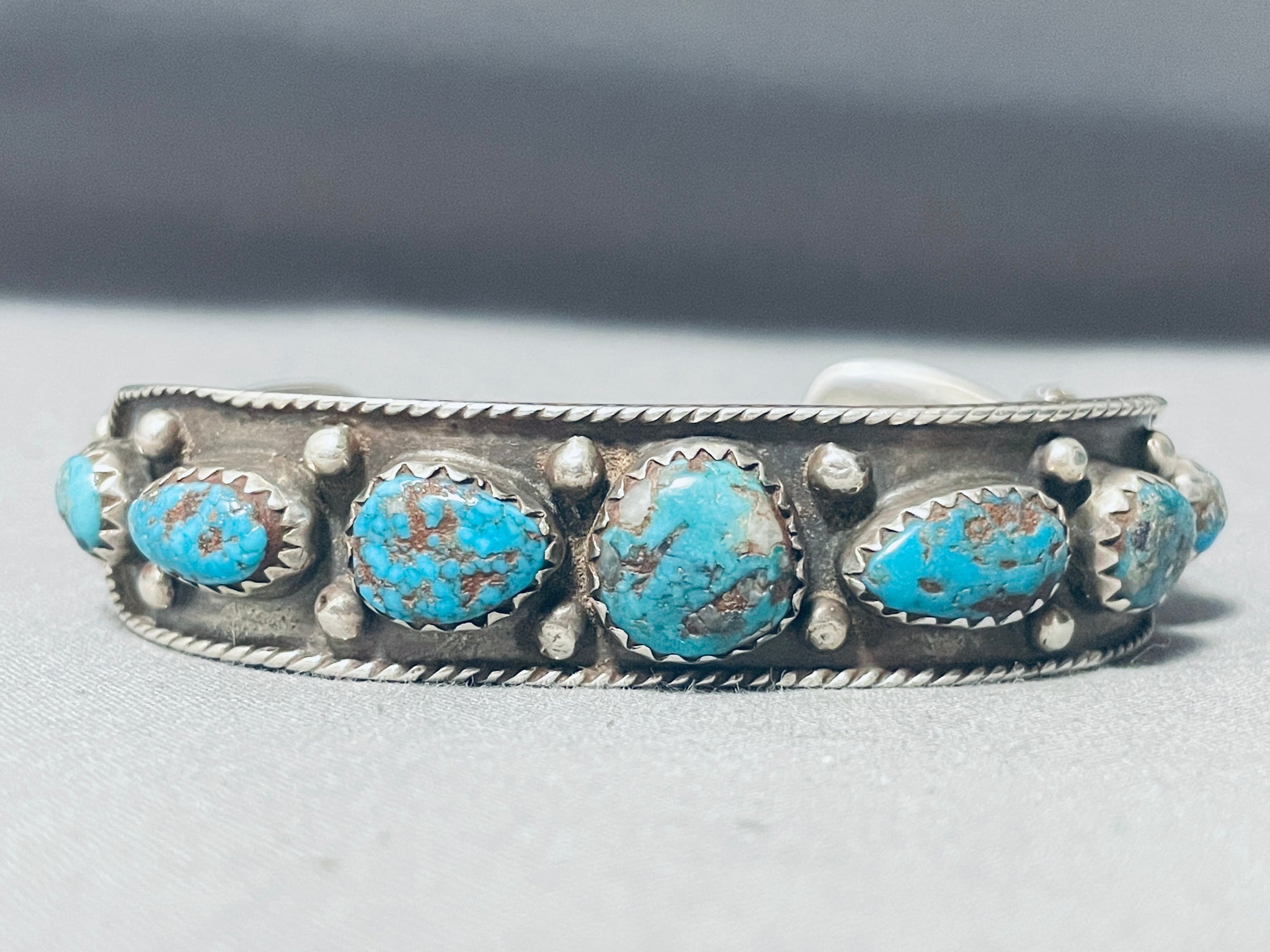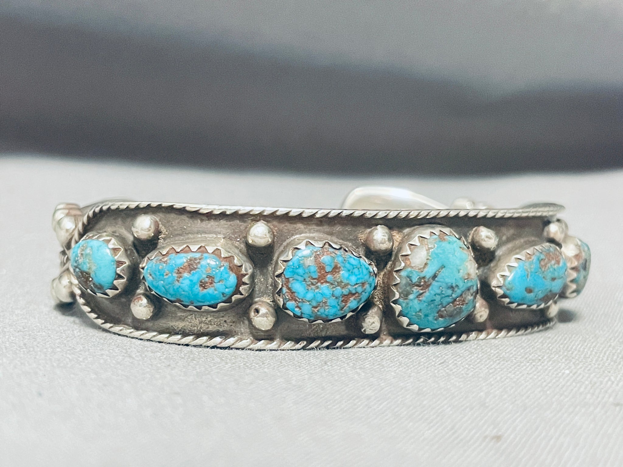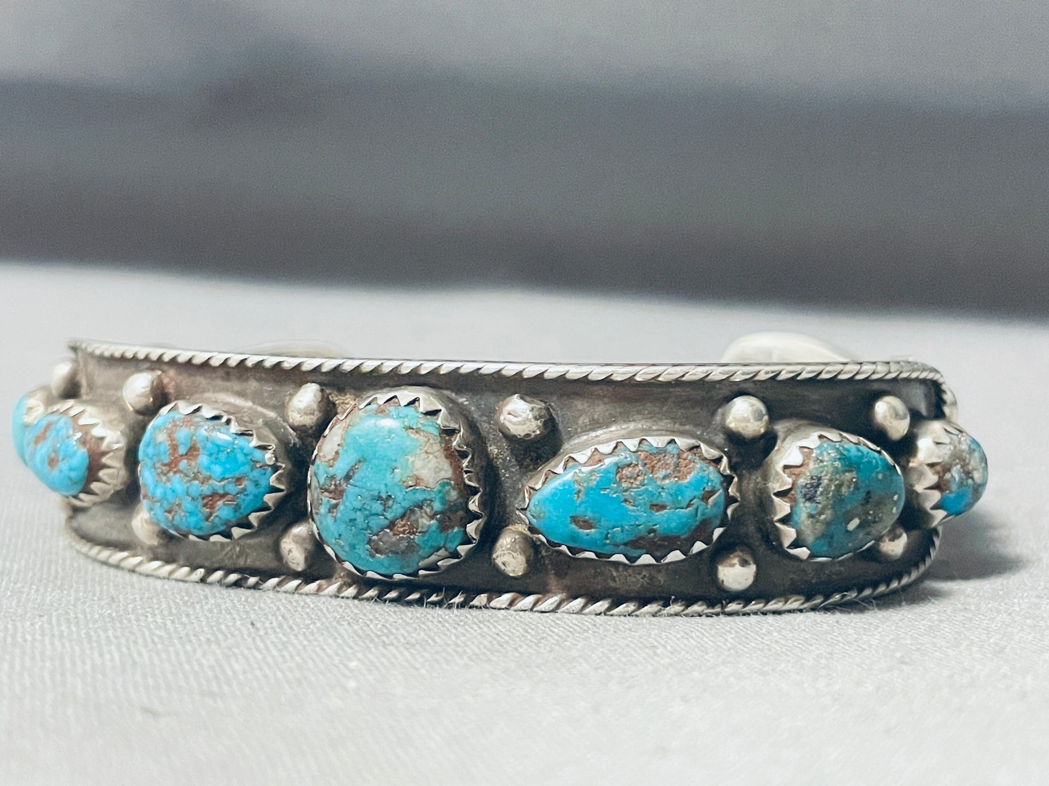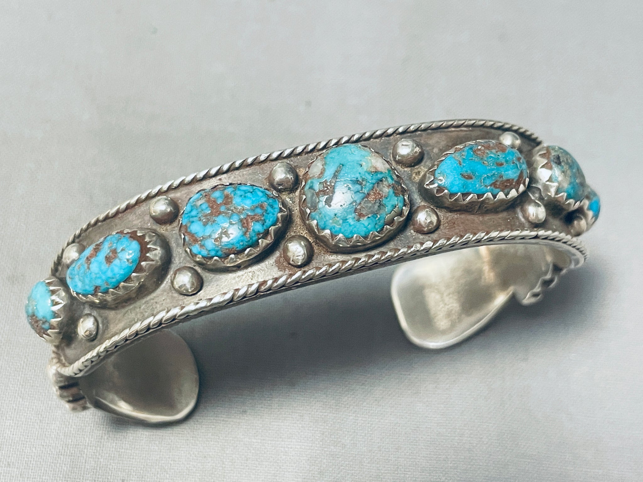 Bisbee Turquoise Vintage Native American Navajo Sterling Silver Rope Bracelet Old