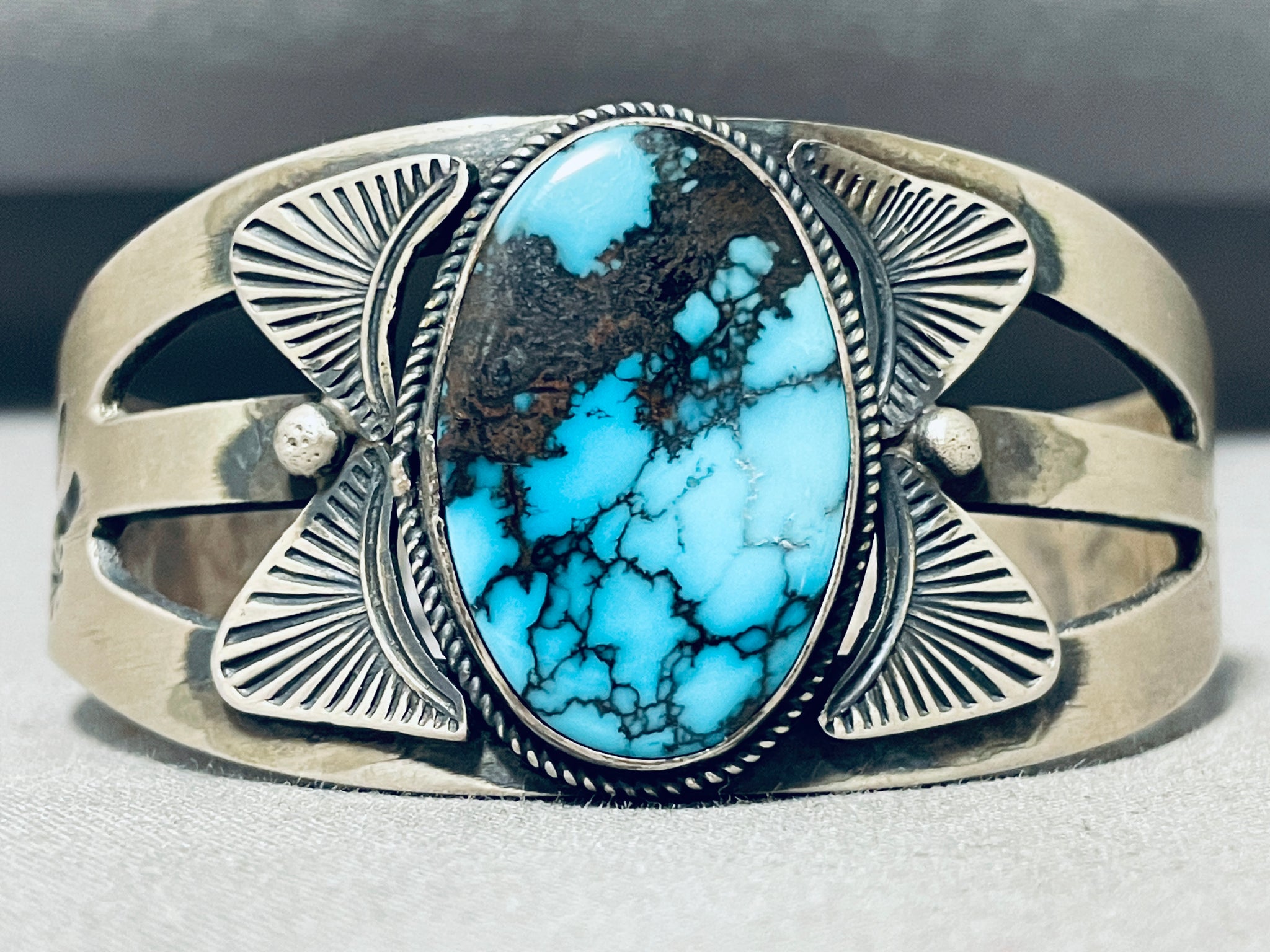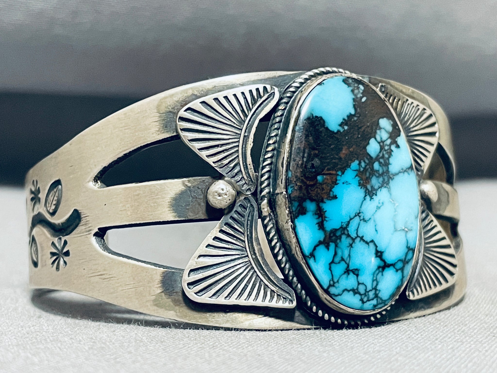 Blue Bird Mine Turquoise Vintage Native American Navajo Sterling Silver Bracelet
