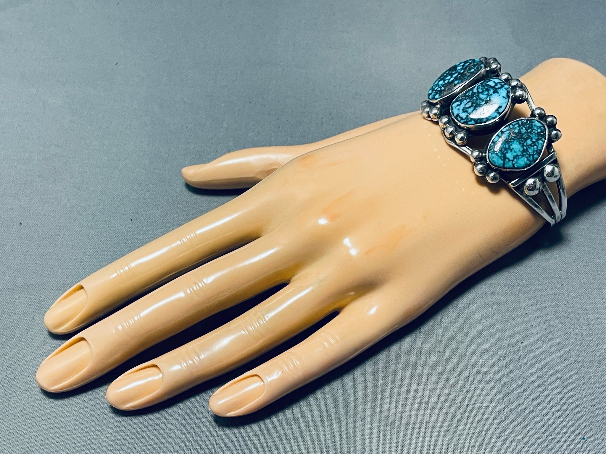 Blue Wind Turquoise!!!! Important Best Vintage Native American Navajo Sterling Silver Bracelet