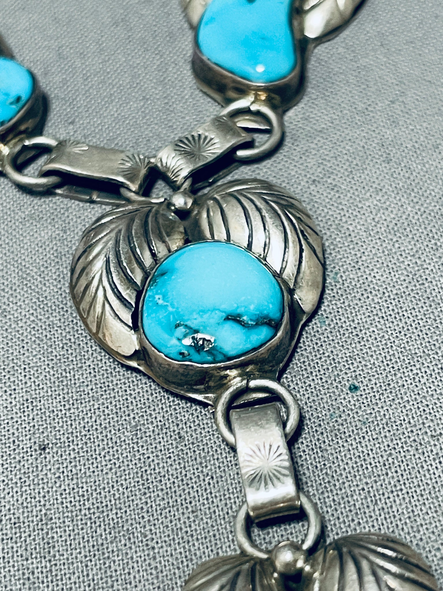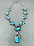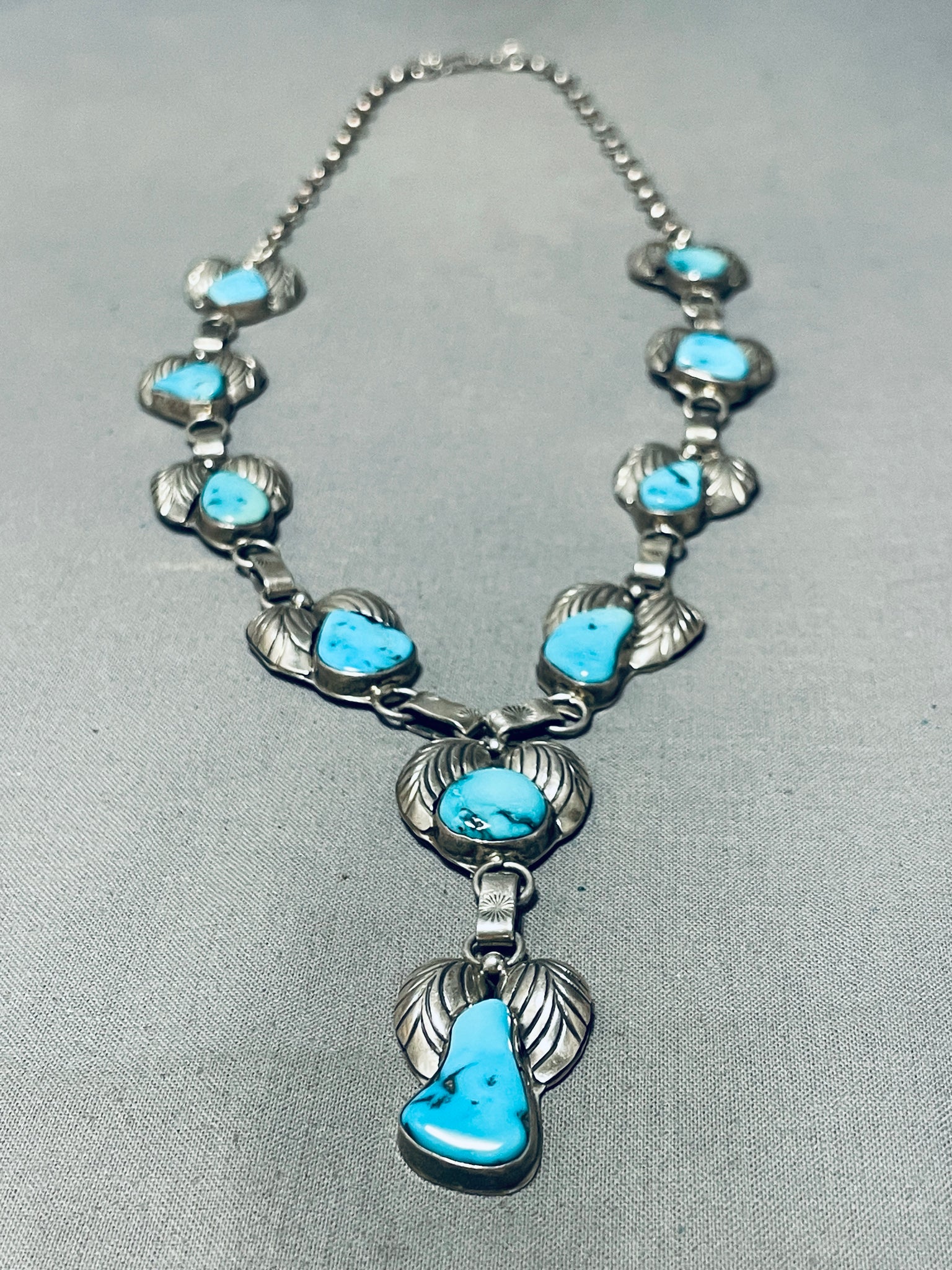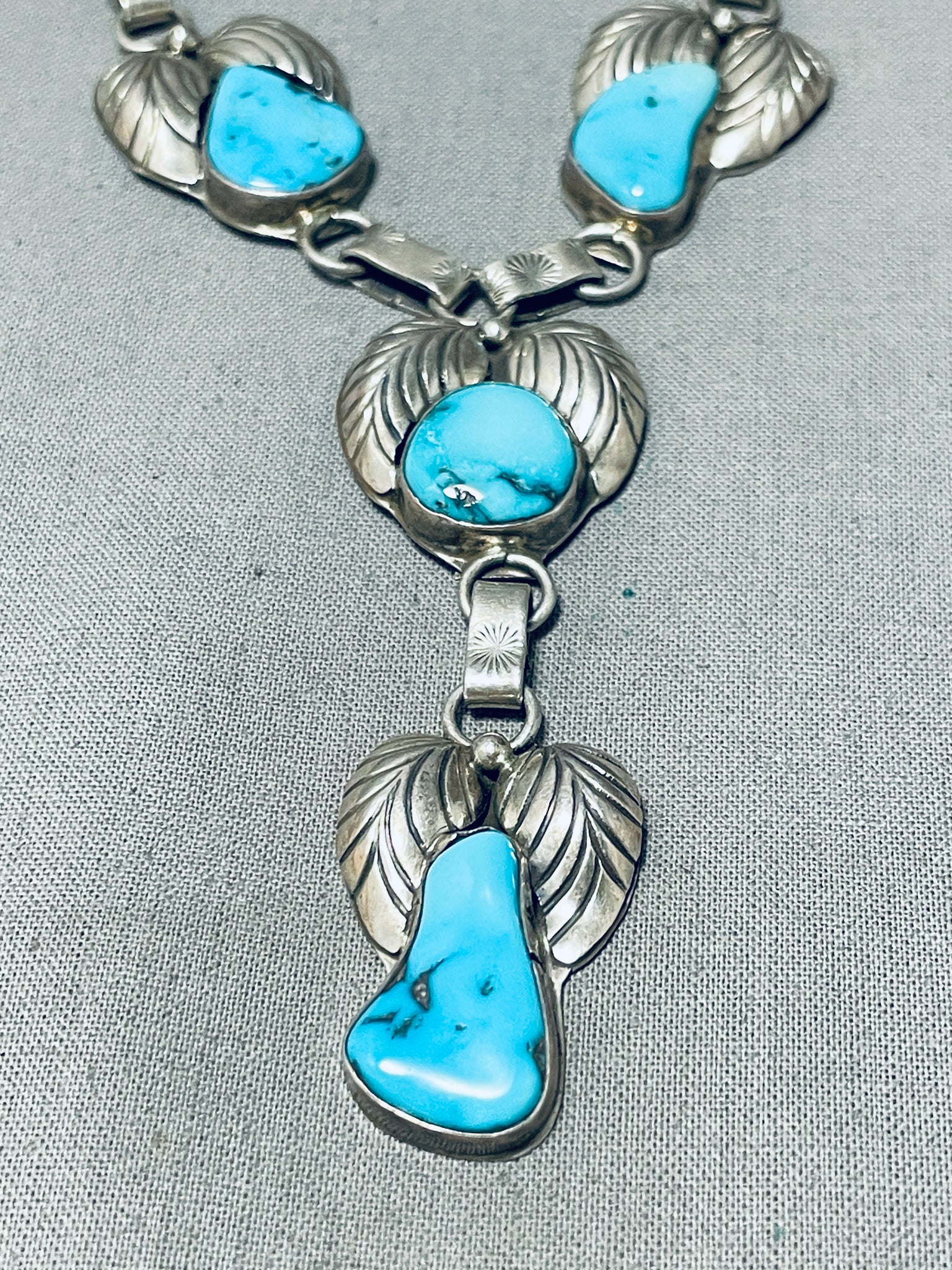 Blue Wind Turquoise!!! Vintage Native American Navajo Sterling Silver Fan Necklace