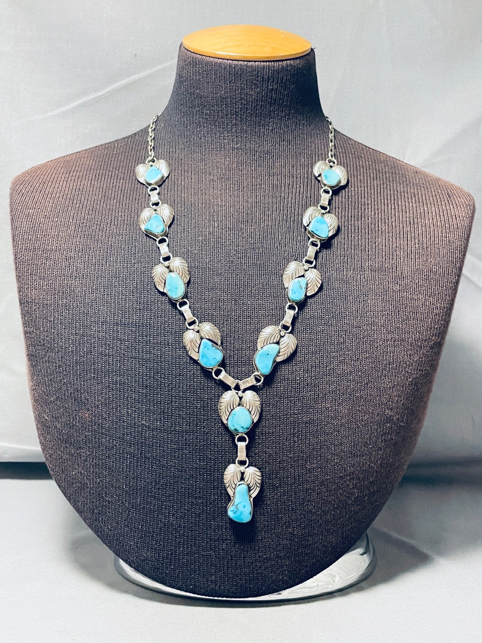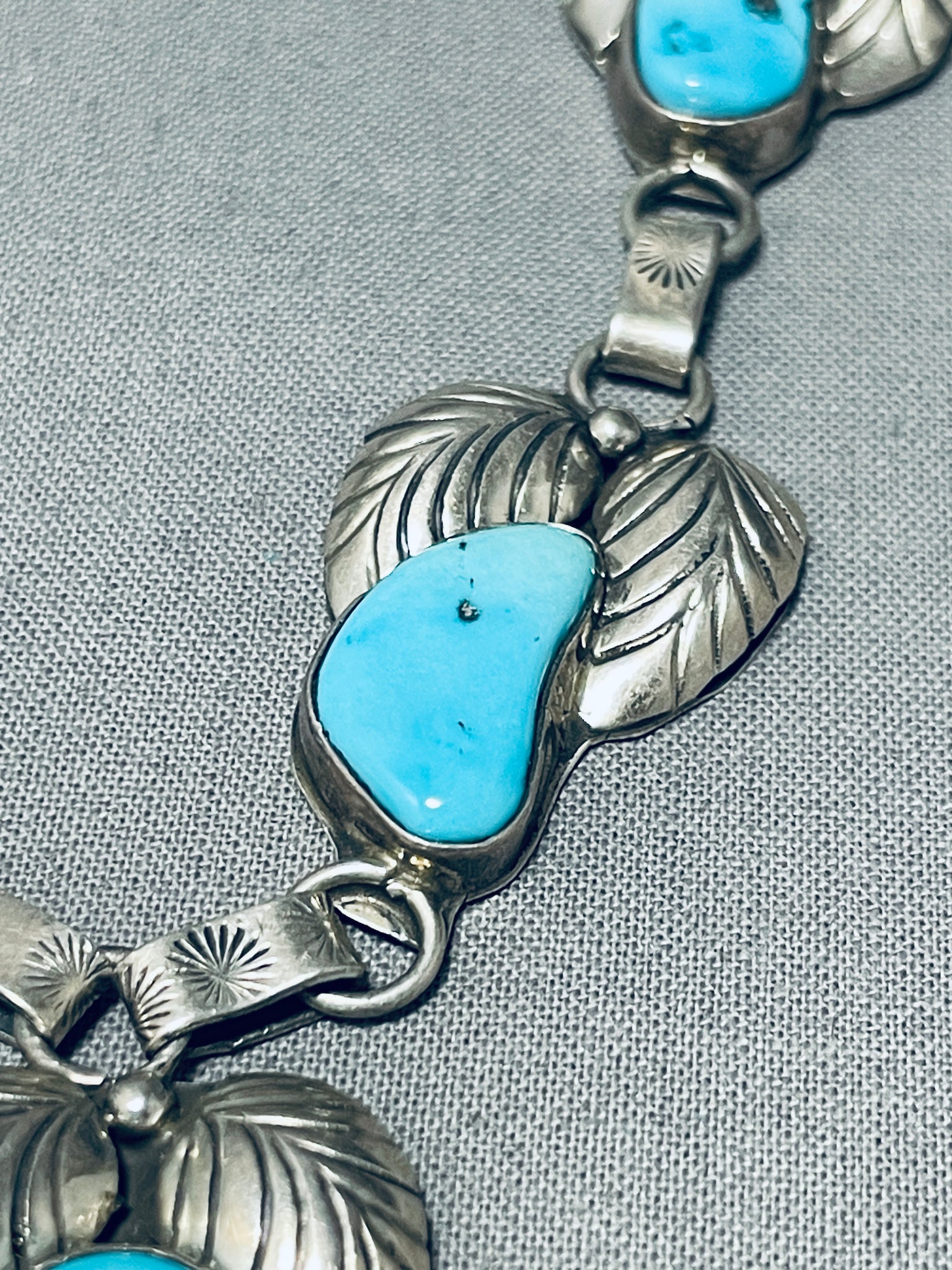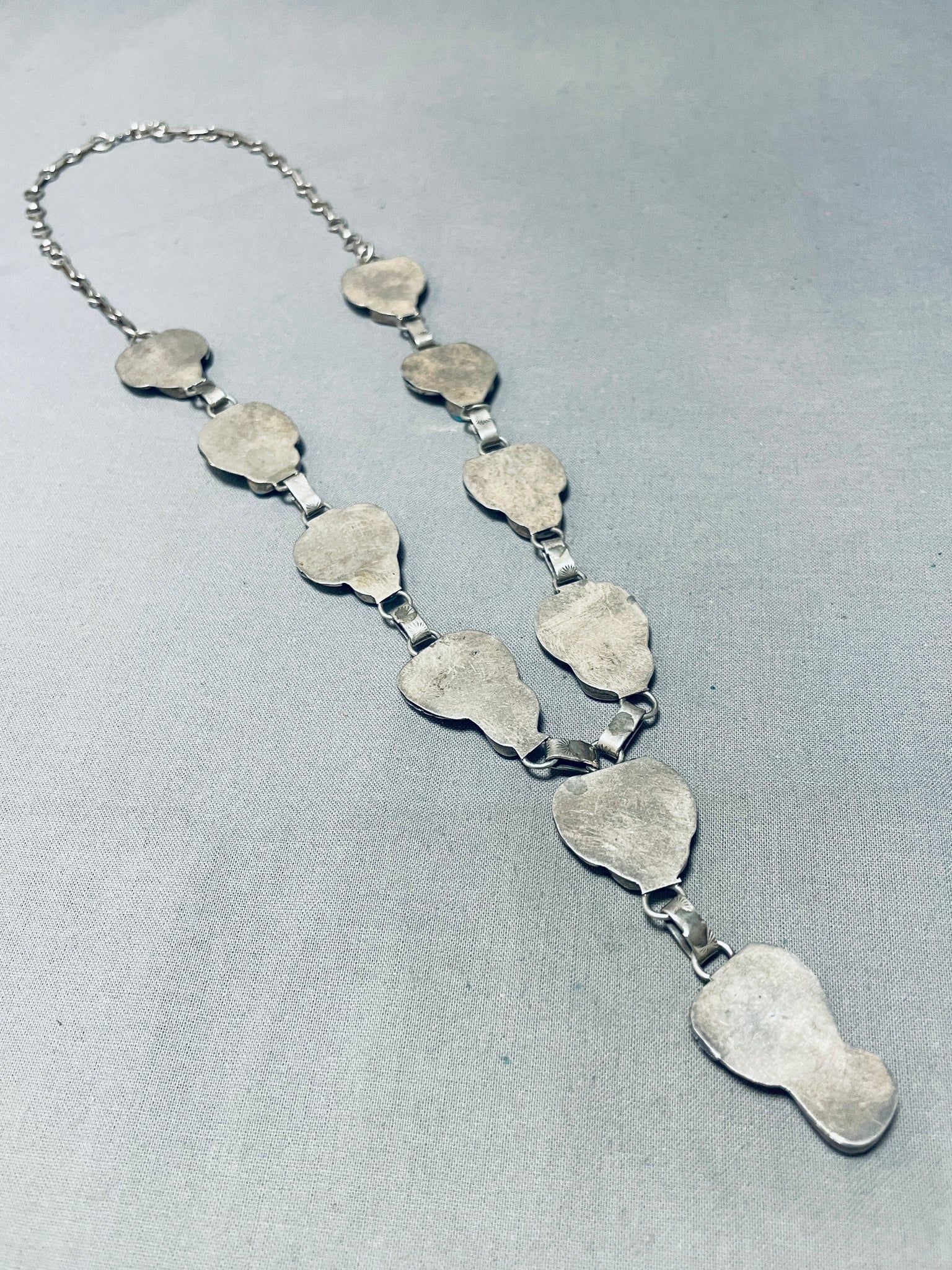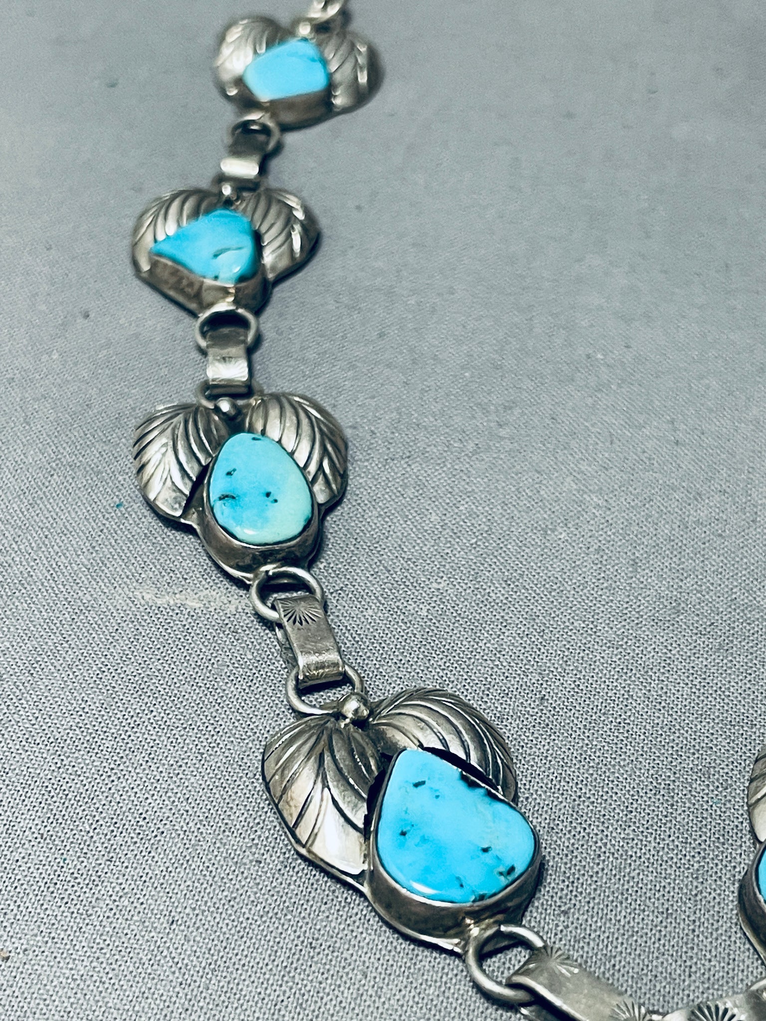 Blue Wind Turquoise!!! Vintage Native American Navajo Sterling Silver Fan Necklace