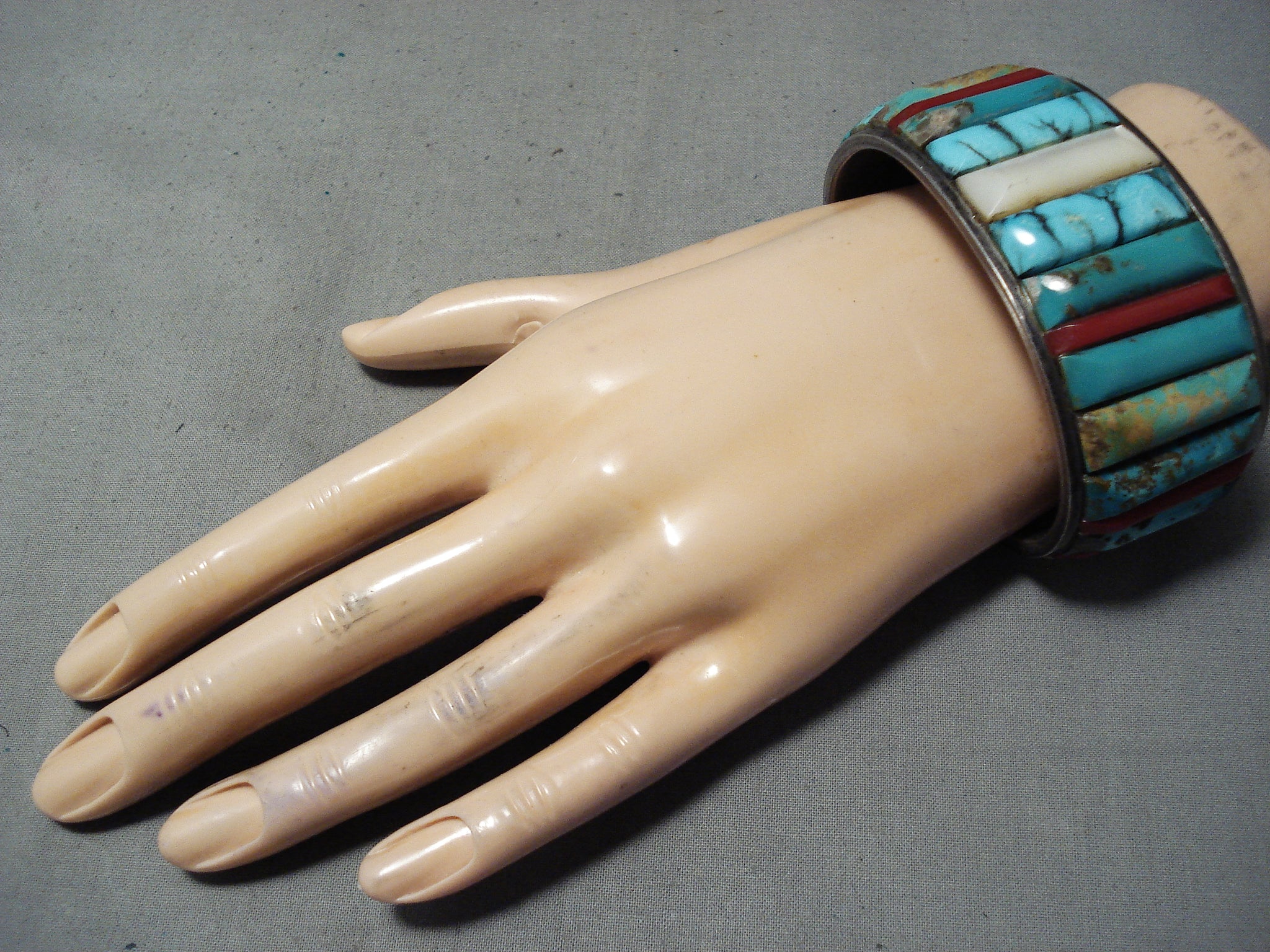 Bobby Begay 1975 Vintage Native American Navajo Turquoise Sterling Silver Inlay Bracelet Old