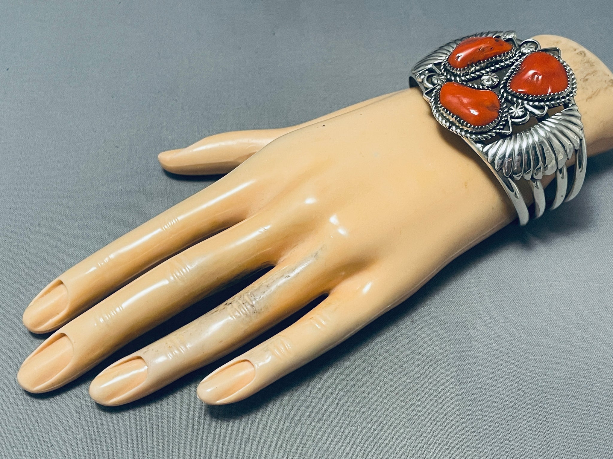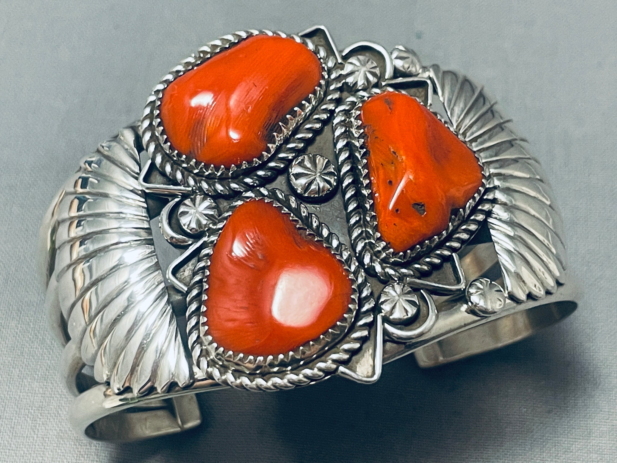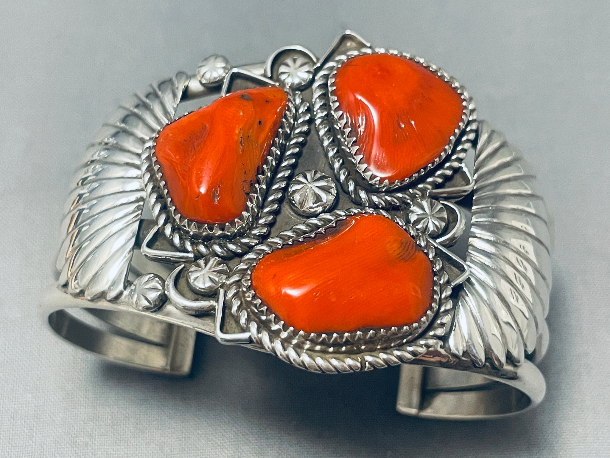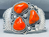 Boulders Of Coral! Native American Navajo Sterling Silver Flank Bracelet