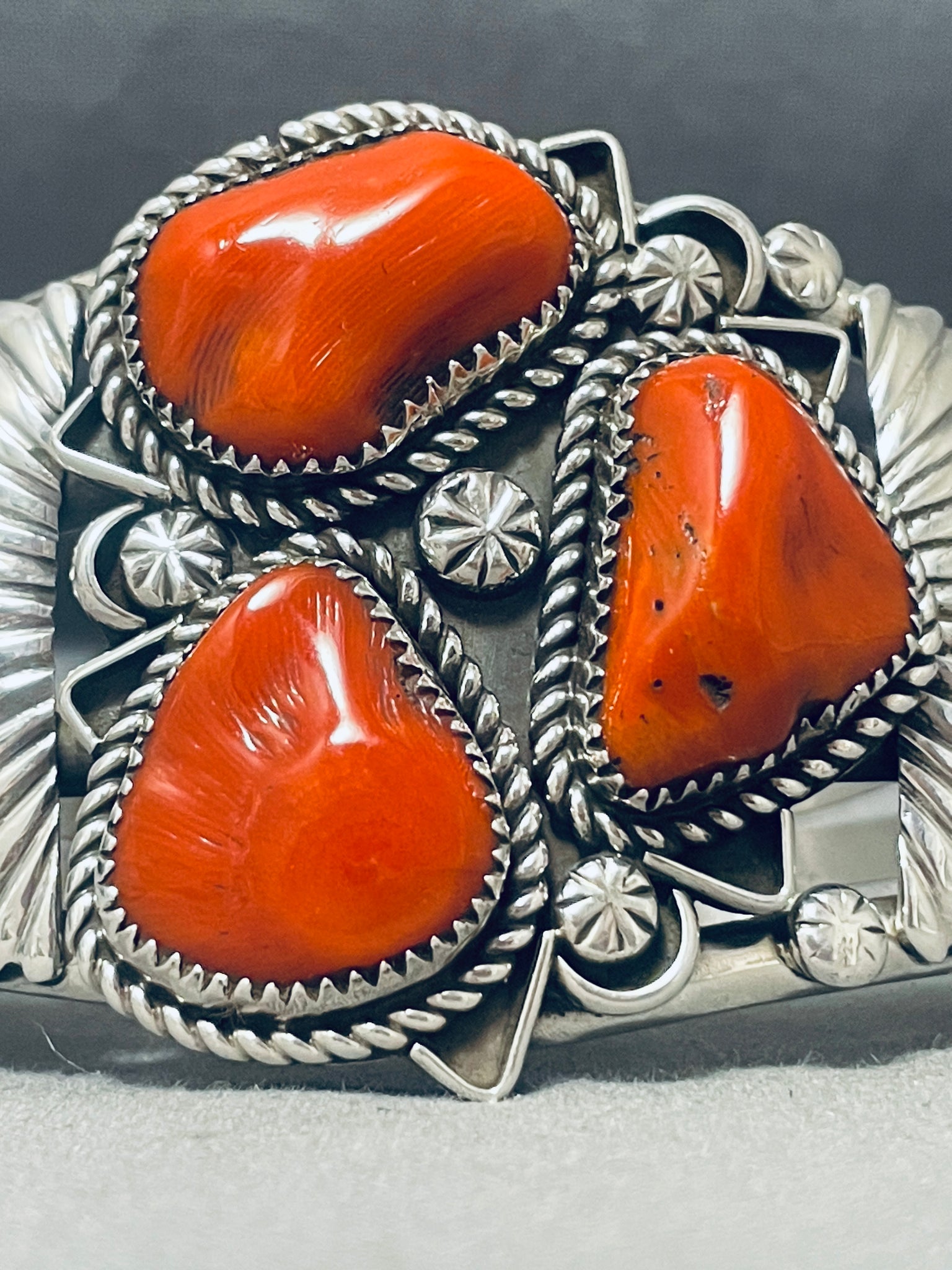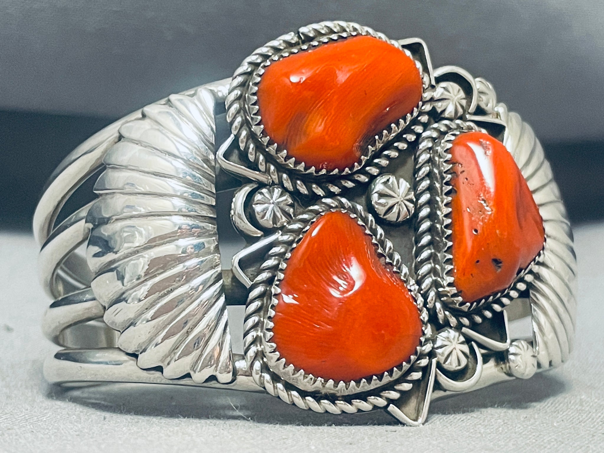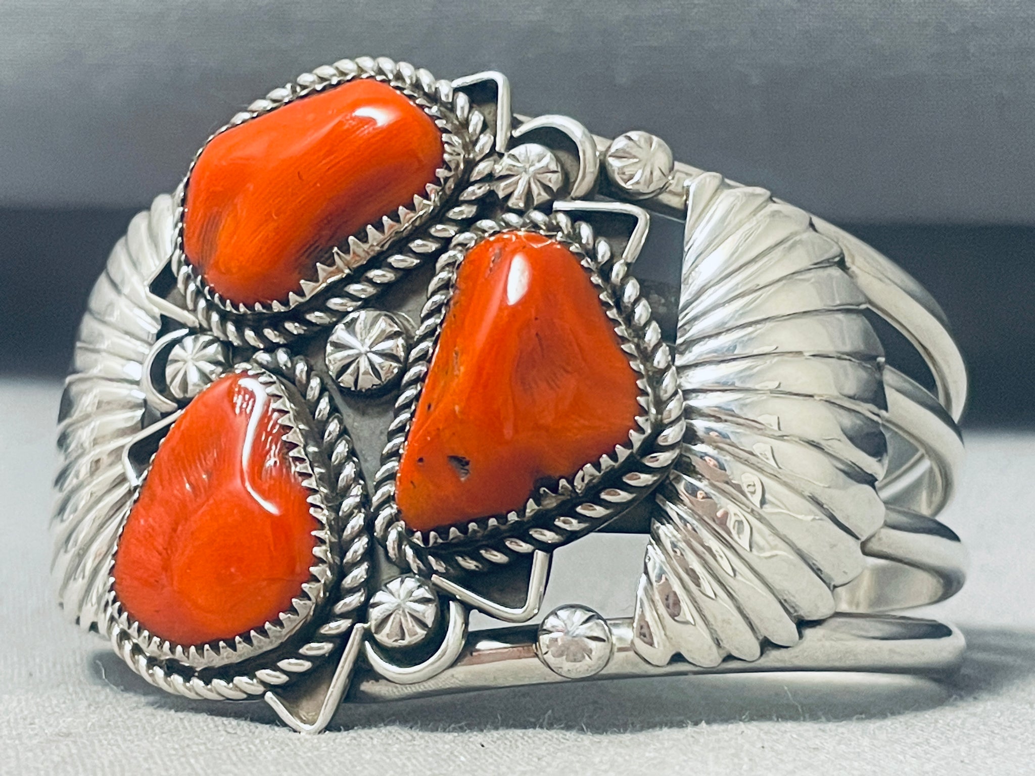 Boulders Of Coral! Native American Navajo Sterling Silver Flank Bracelet
