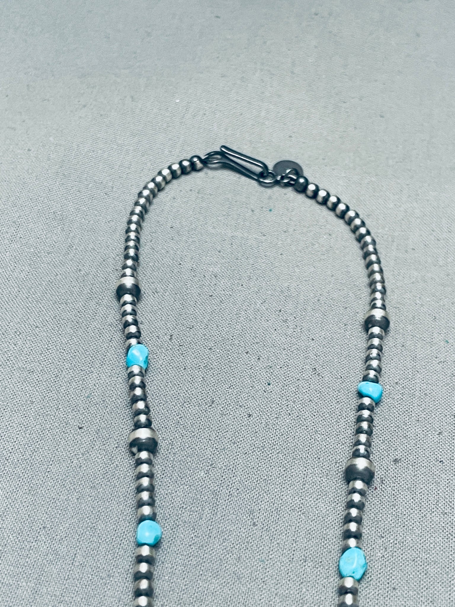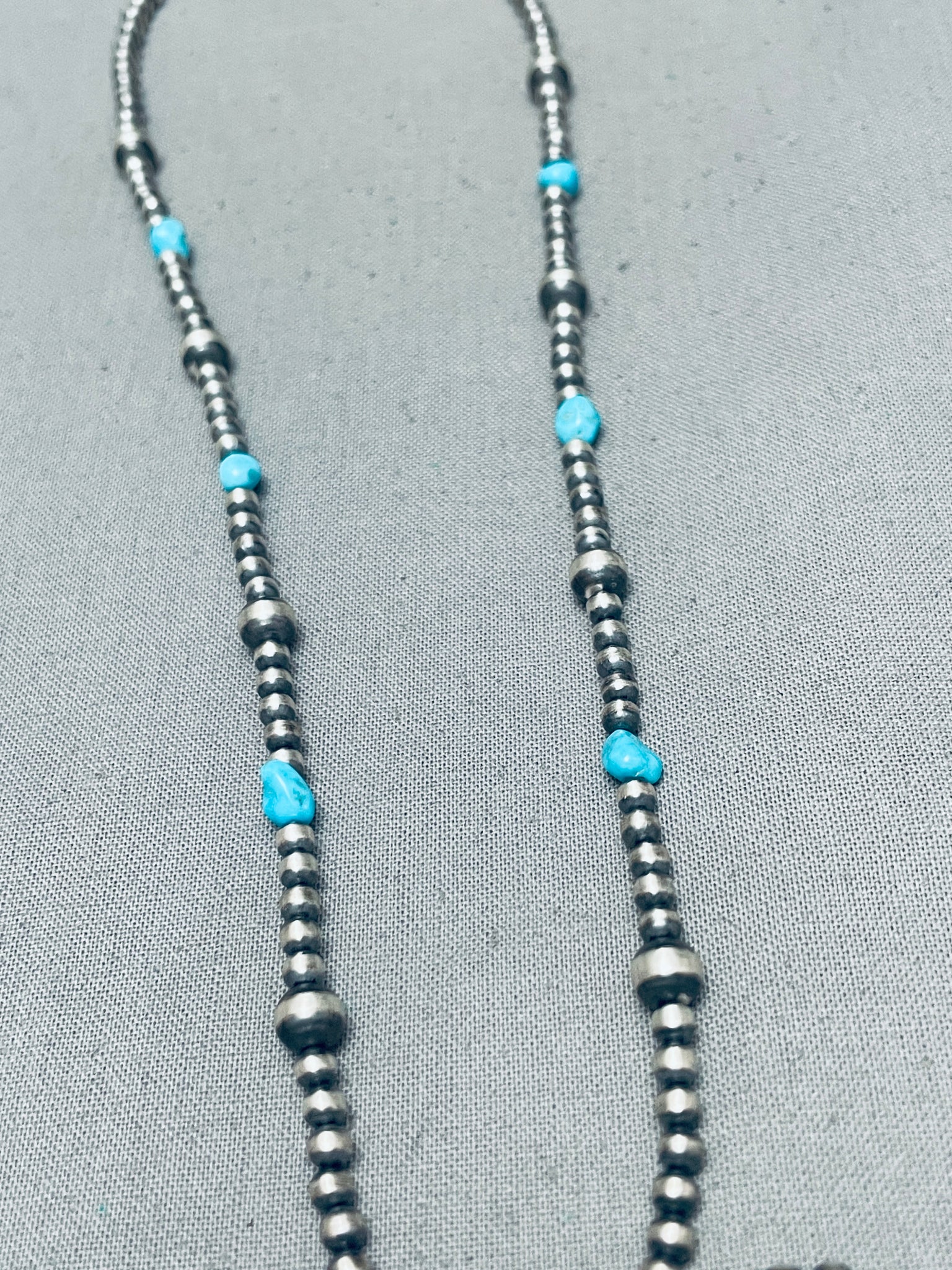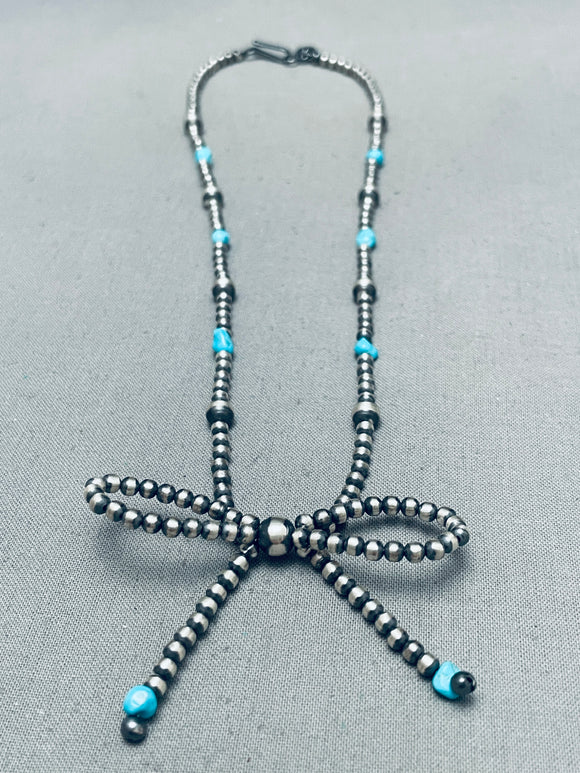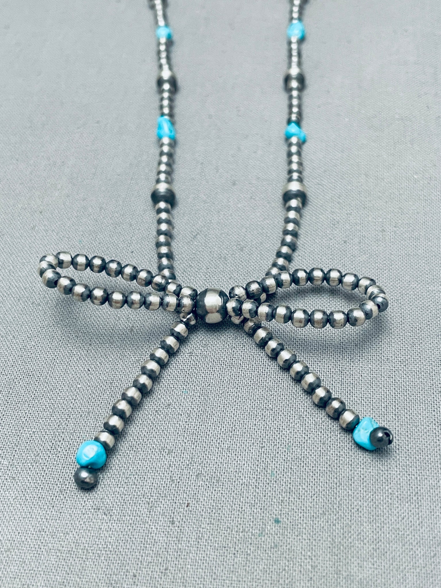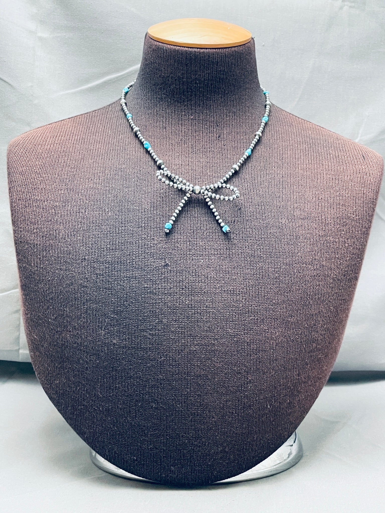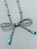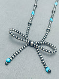 Bowtie Native American Navajo Turquoise Hand Tooled Sterling Silver Necklace Wow